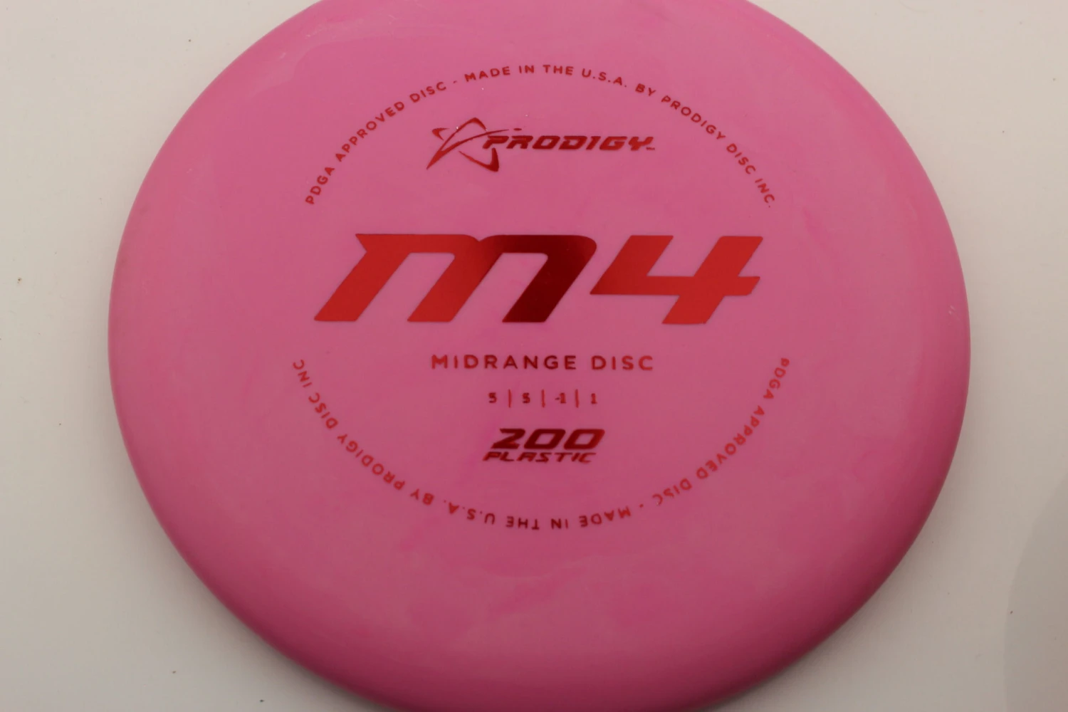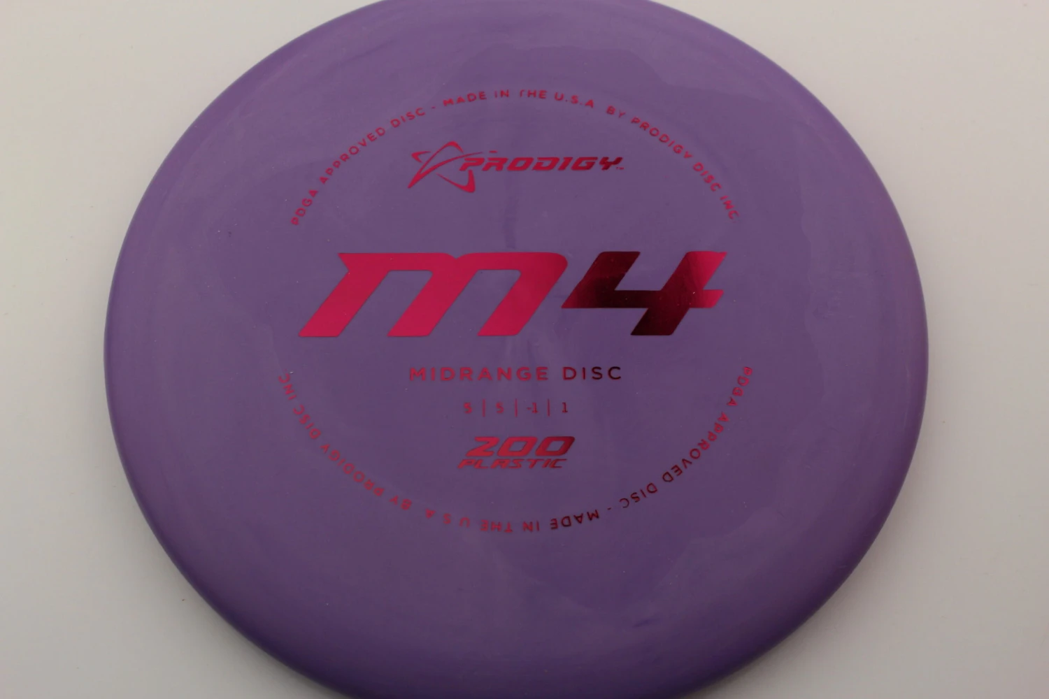 Prodigy says this about the mold: “The Prodigy Disc M4 is an extremely reliable understable midrange disc. It is designed for all players and flies extremely far for a midrange. The M4 will turn up when thrown hard and will then have an extra long glide and a soft straight finish.”
