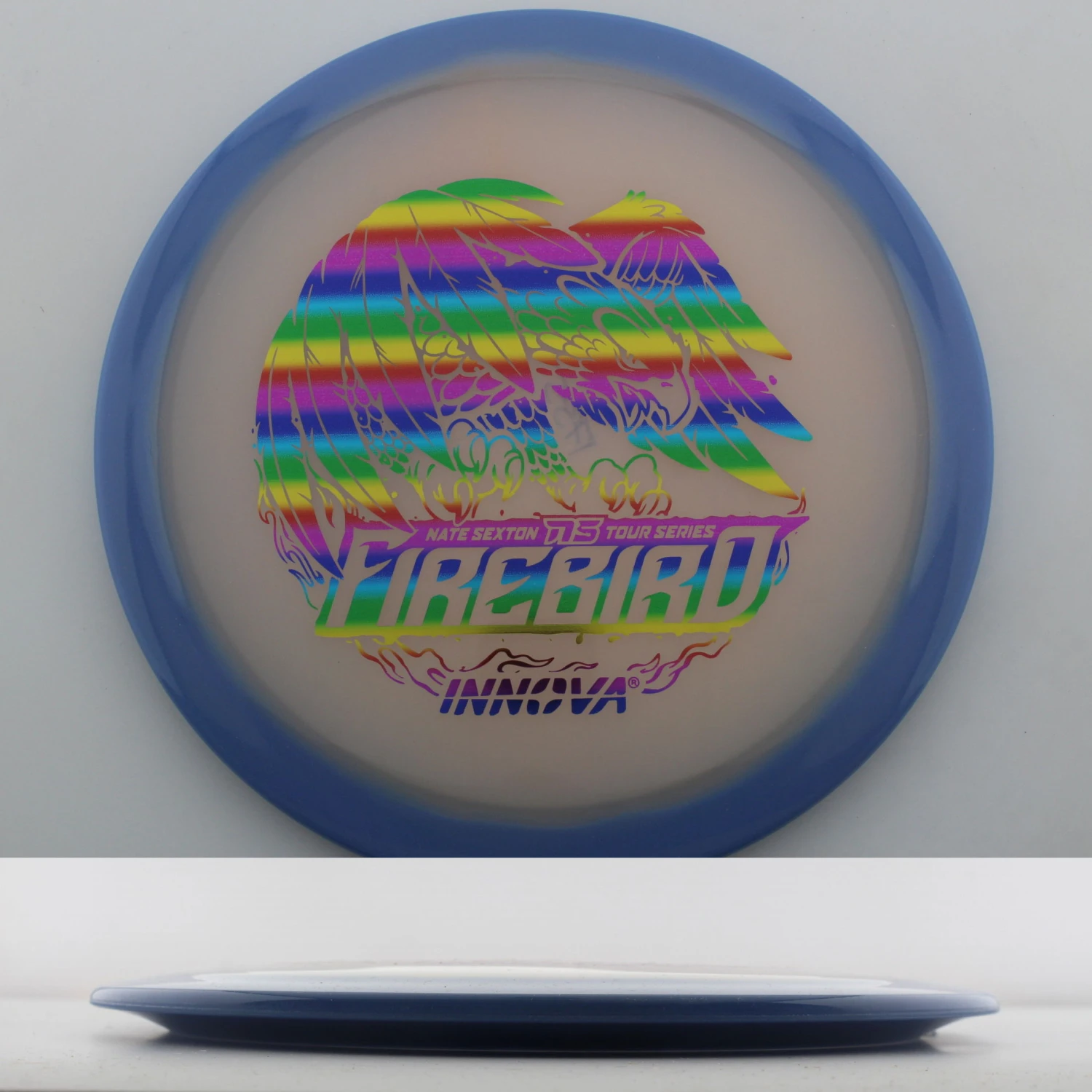Innova says this about the 2024 Nate Sexton Firebird: “The most anticipated release of the year…the 2024 Sexton Firebird! The Nate Sexton Tour Series Proto Glow Halo Champion Firebird returns, this time with a slightly mellower Halo feel and flight. These Proto Glow Sexybirds sport bright, contrasting Halo colors and keep glowing for a long, long time. Easy to see, day or night! Sexton Firebirds are fantastic backhand wind cutters and perfectly tuned for forehand players. Light up your bag with the 2024 Sexton Firebird!!