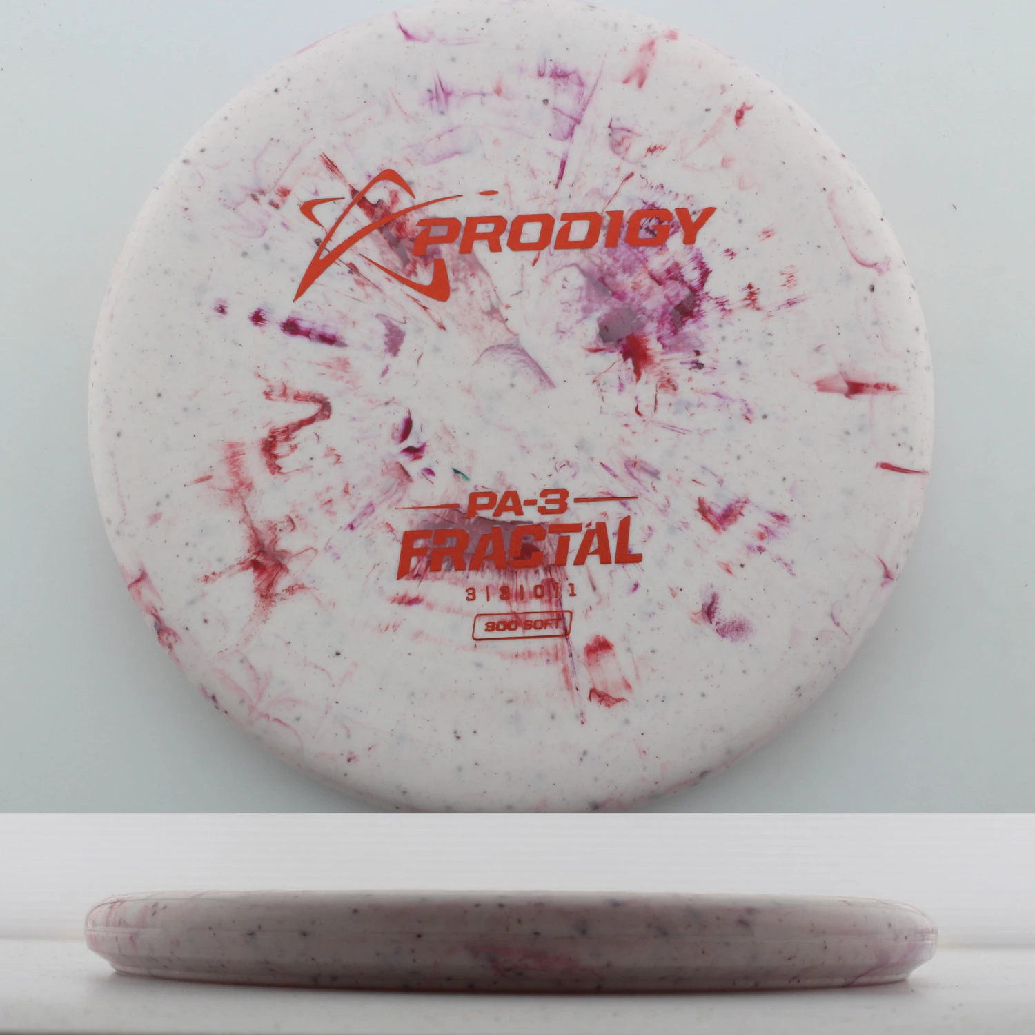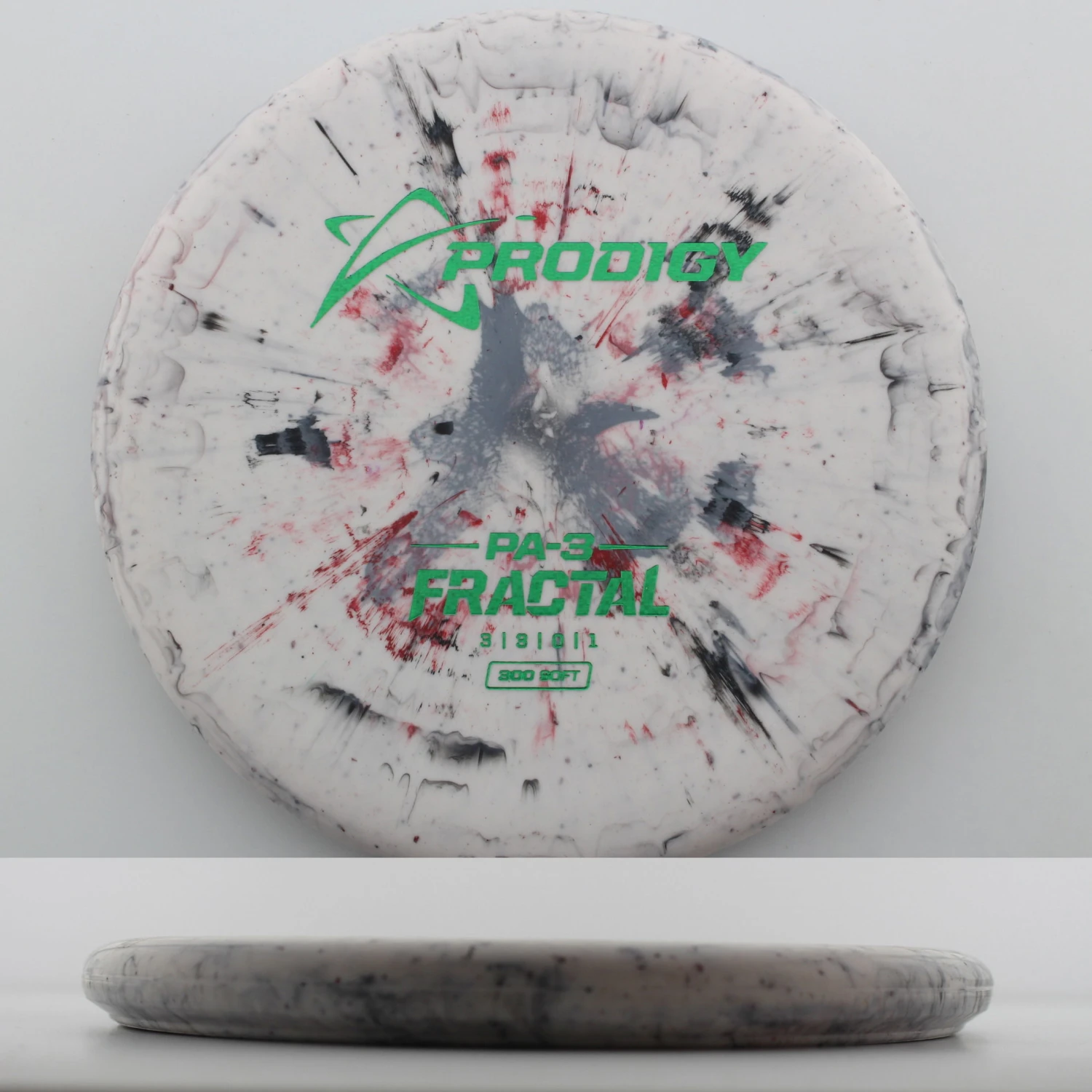 300 Soft Fractal Pa3 – The Pa3 is a staple in Prodigy players bags, with an extremely straight flight and a comfortable feel in the hand. The Pa3 is a great feeling mold that can be used for tons of shot shapes all over the course whether you are in the circle or off the tee. The 300 plastic is super grippy but still has plenty of durability to use off the tee. Off the tee it will have a straight to understable flight that has plenty of glide. Grab yourself a Prodigy Discs 300 Soft Fractal Pa3 today!