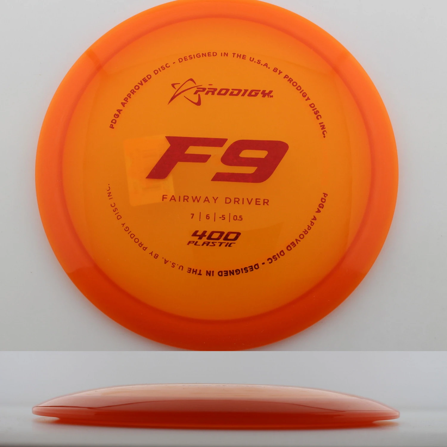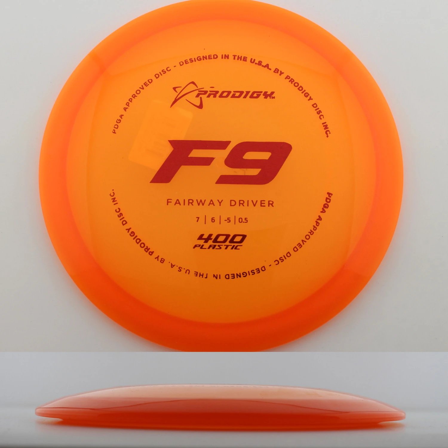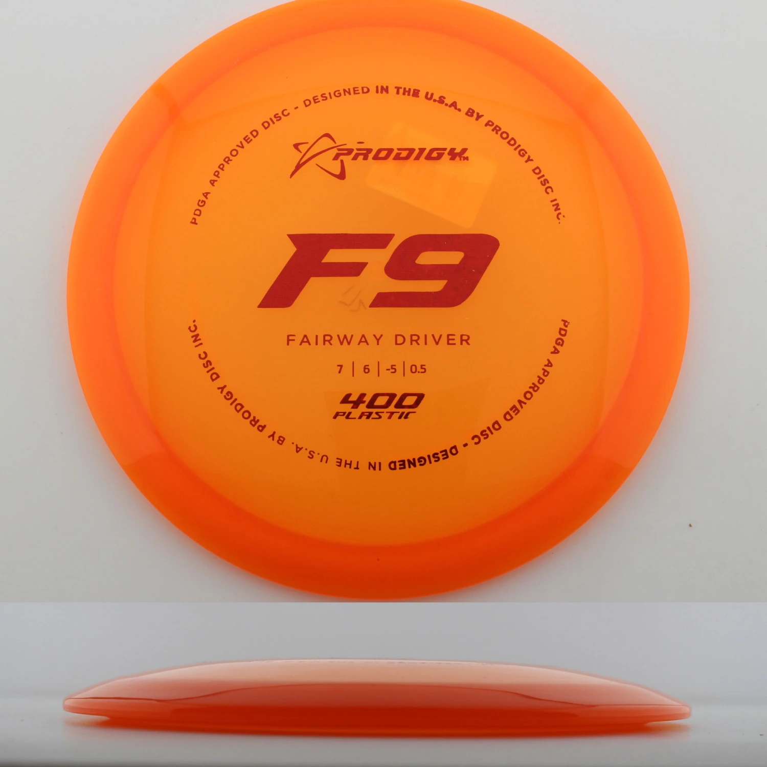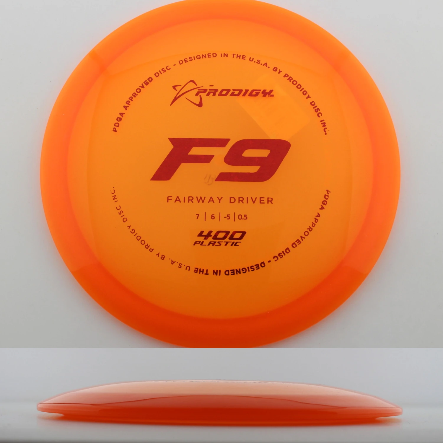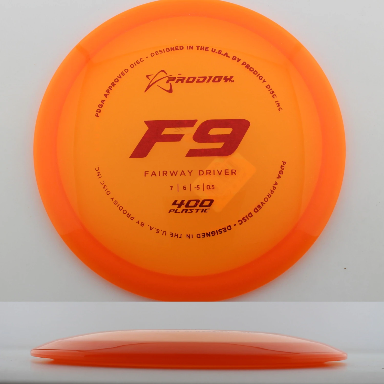 Prodigy mentions this about the mold: “The F9 is the most understable fairway driver available from Prodigy Disc. Designed for beginners or players with lower arm speed to be able to get a disc to hyzerflip or have very little low-speed fade, this fairway driver is also a great disc for players learning how to throw a roller. The F9 has a smaller rim width which helps players with smaller hands grip the disc better. For children and beginners, the F9 can be a maximum distance driver that produces a full-flex S-curve flight at a low speed. More experienced players can also throw low-effort turnover shots to easily bend the disc around a corner “