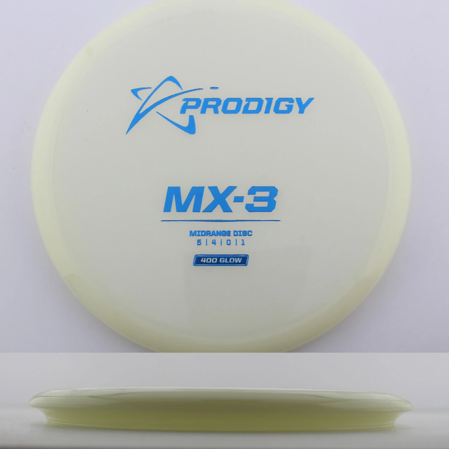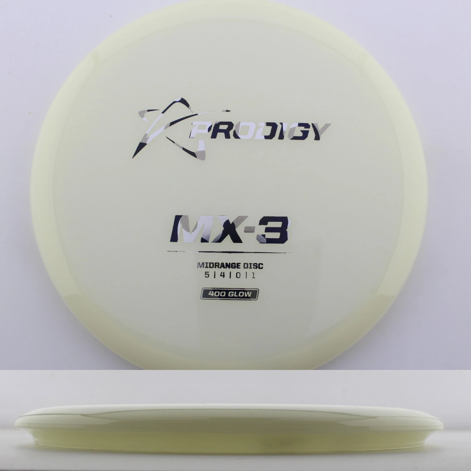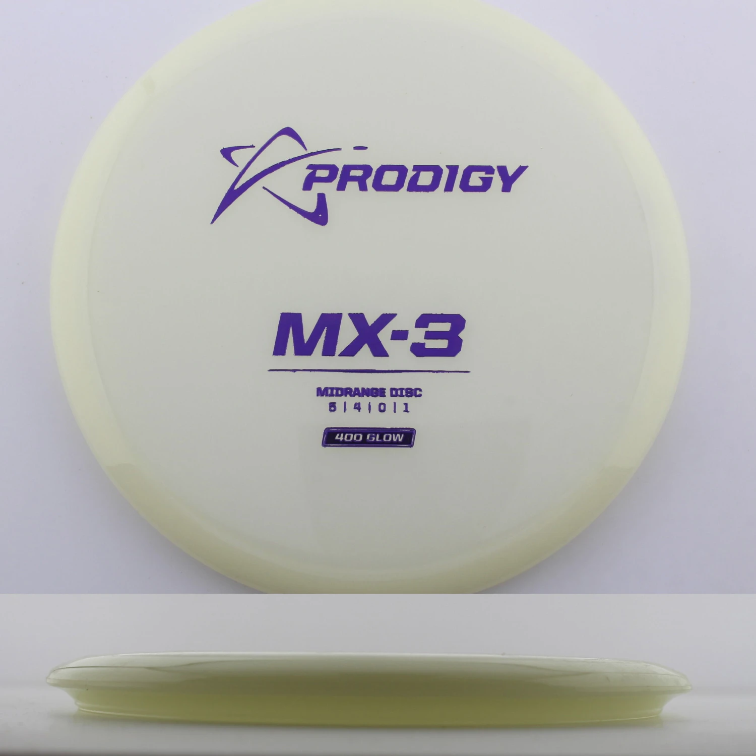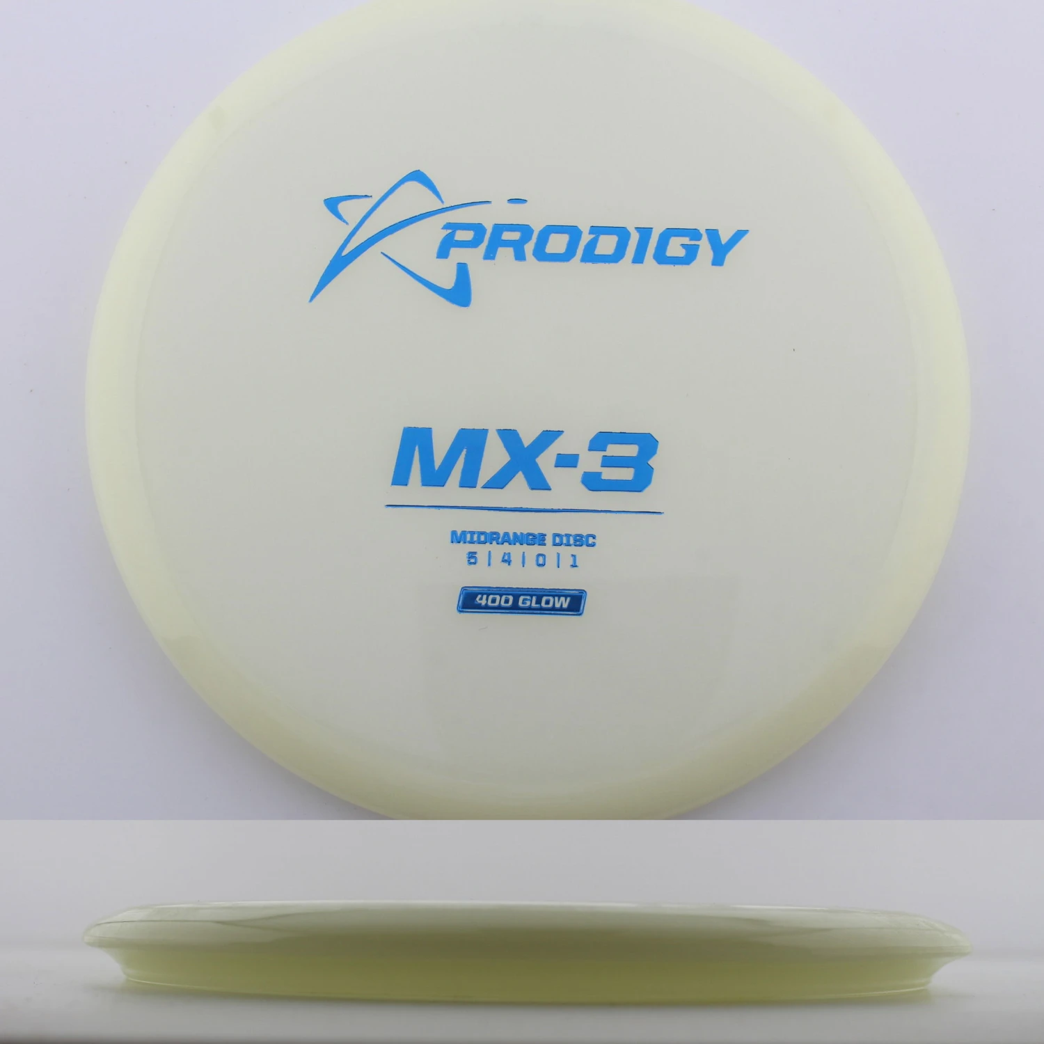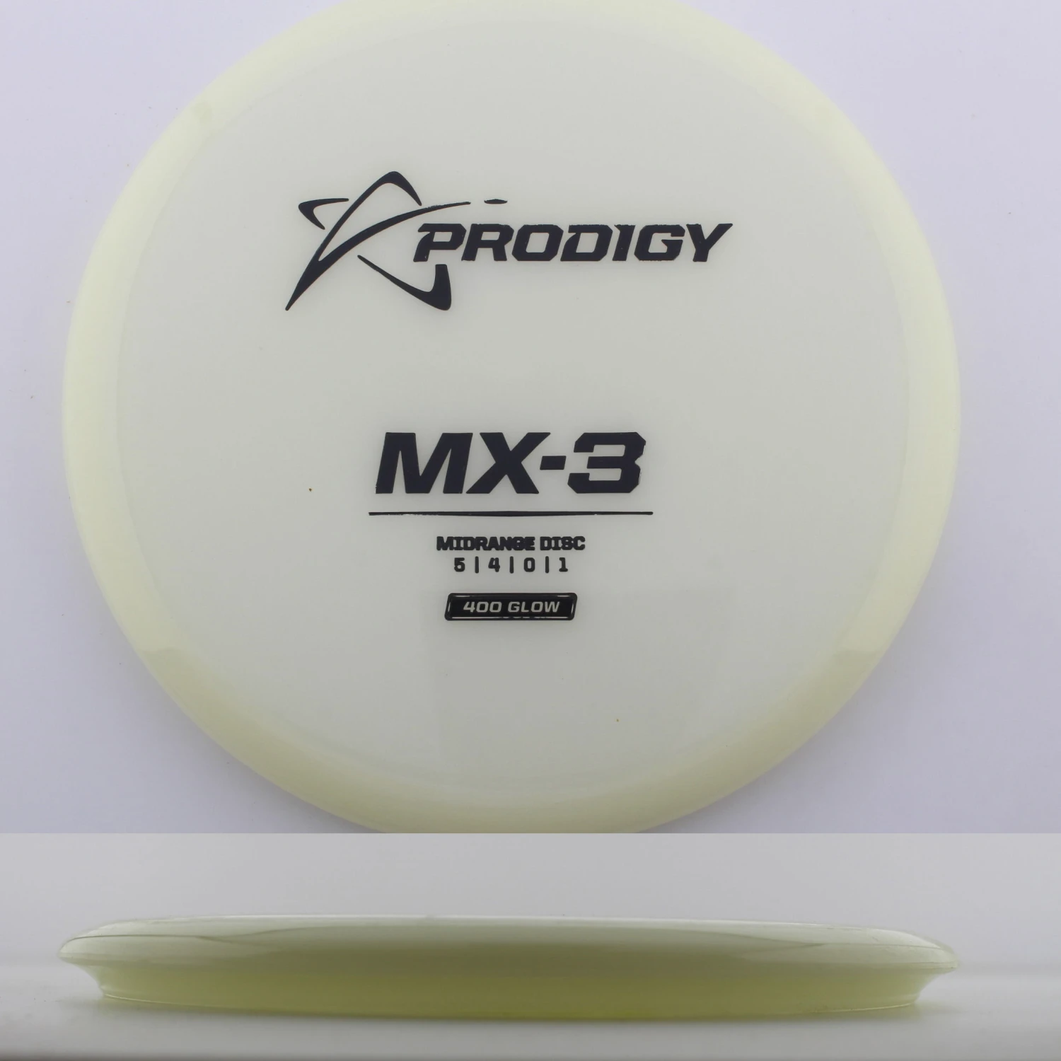 400 Glow MX-3 – The newest disc in the Prodigy lineup, the MX series is a new series of midranges helping to expand the lineup. The MX-3 is extremely torque resistant allowing it to be thrown hard and without the disc flipping. prodigy compares it to an M2 in stability but with more glide and more forward carry. The 400 Glow plastic has a lot of grip and plenty of durability, plus it glows great! If you are looking for a glidey stable midrange to throw, try out the 400 Glow MX-3 from Prodigy.