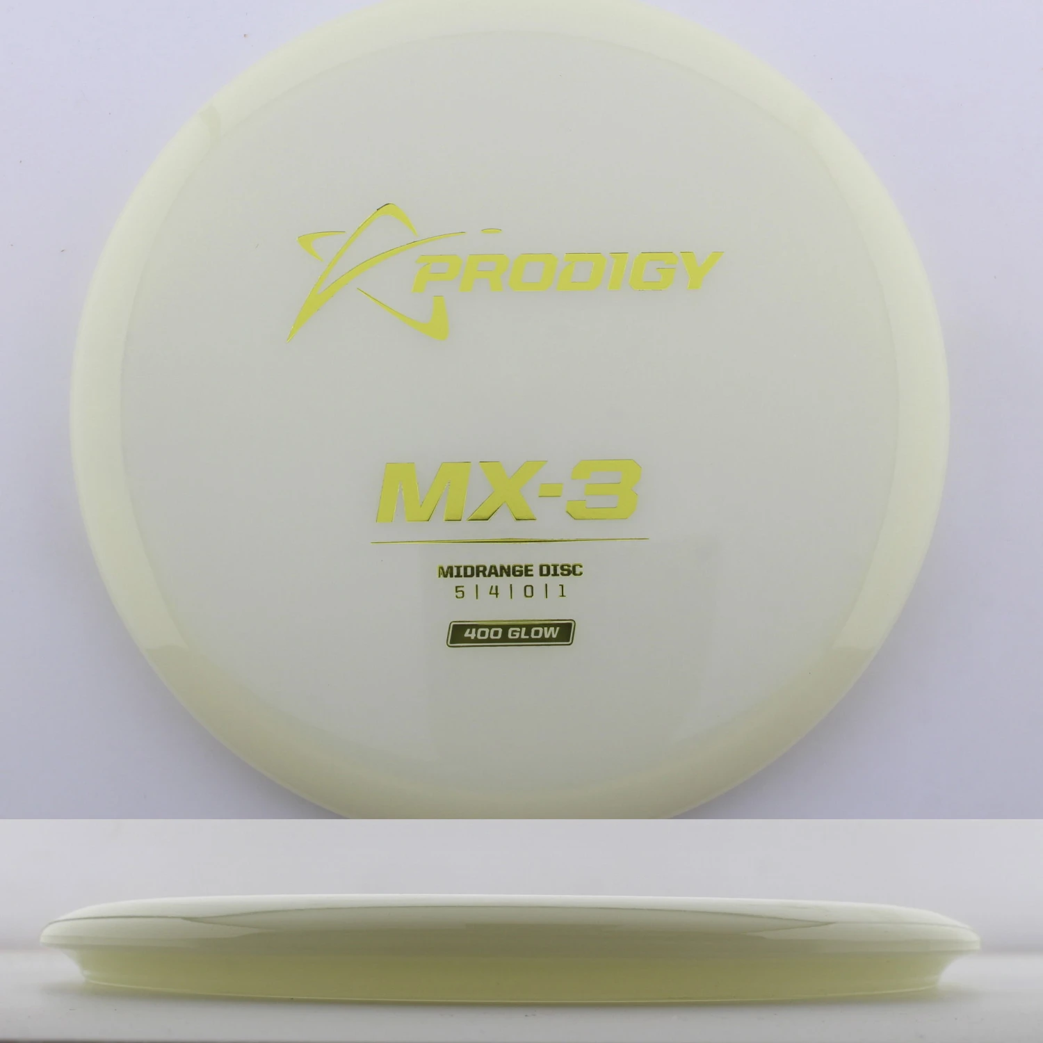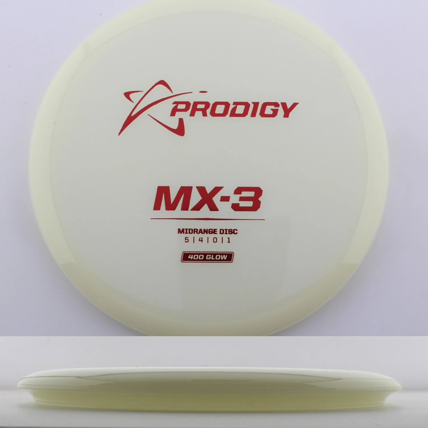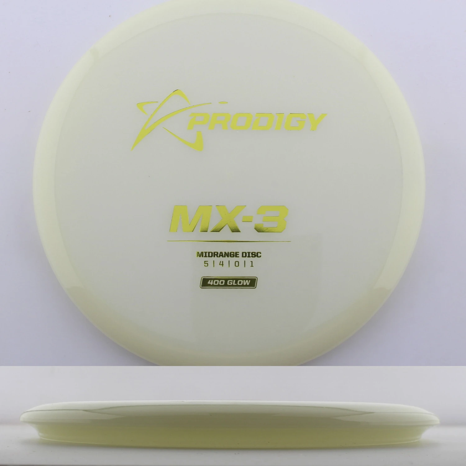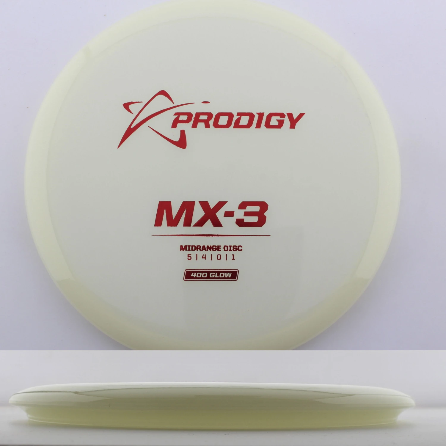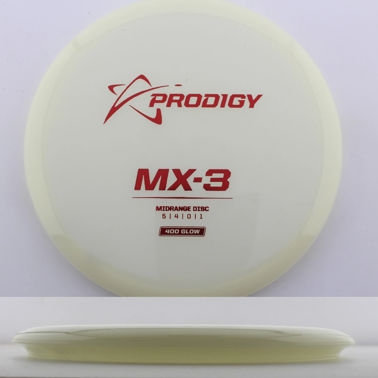 400 Glow MX-3 – The newest disc in the Prodigy lineup, the MX series is a new series of midranges helping to expand the lineup. The MX-3 is extremely torque resistant allowing it to be thrown hard and without the disc flipping. prodigy compares it to an M2 in stability but with more glide and more forward carry. The 400 Glow plastic has a lot of grip and plenty of durability, plus it glows great! If you are looking for a glidey stable midrange to throw, try out the 400 Glow MX-3 from Prodigy.