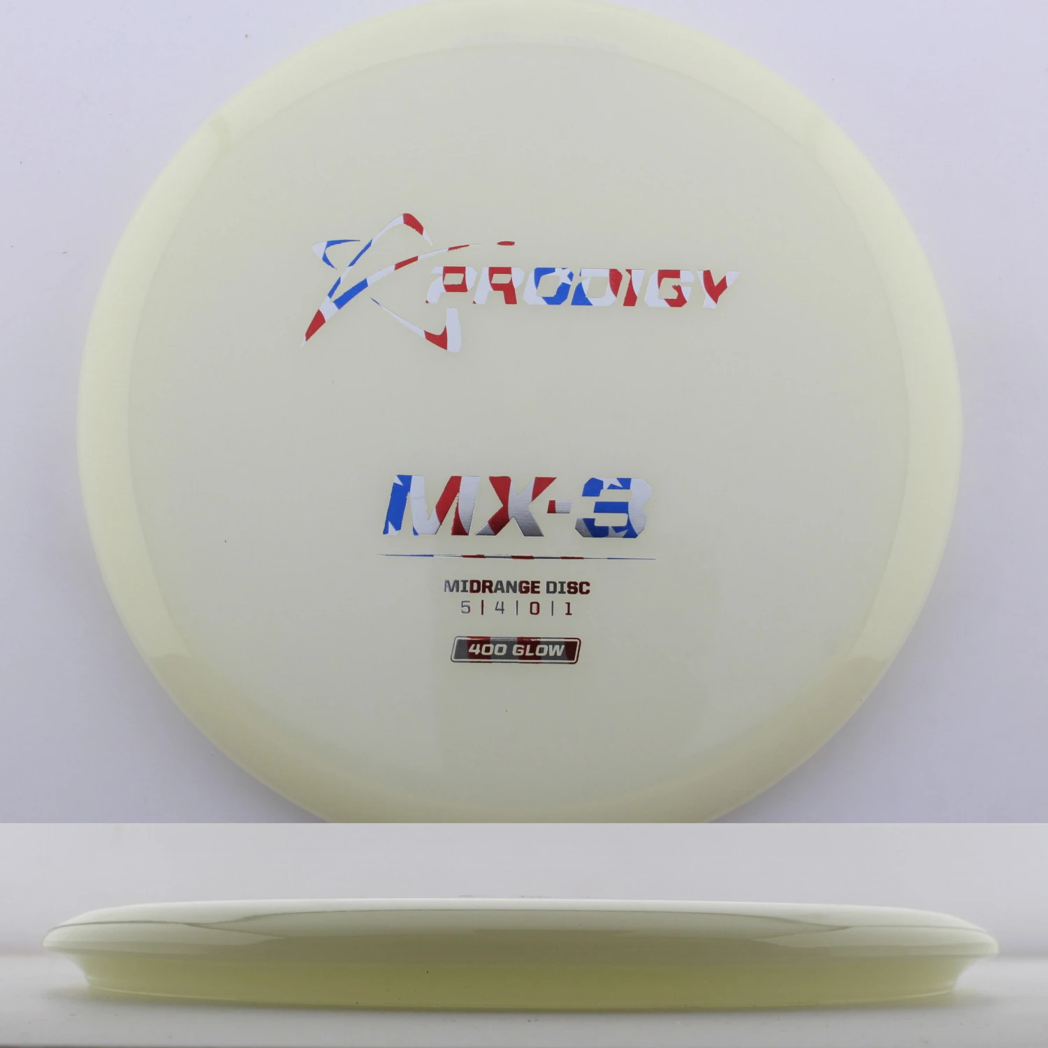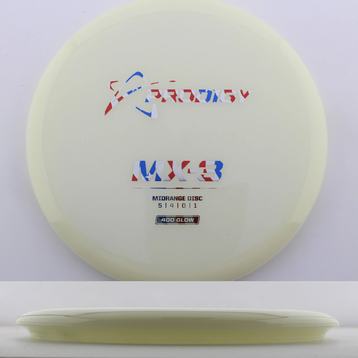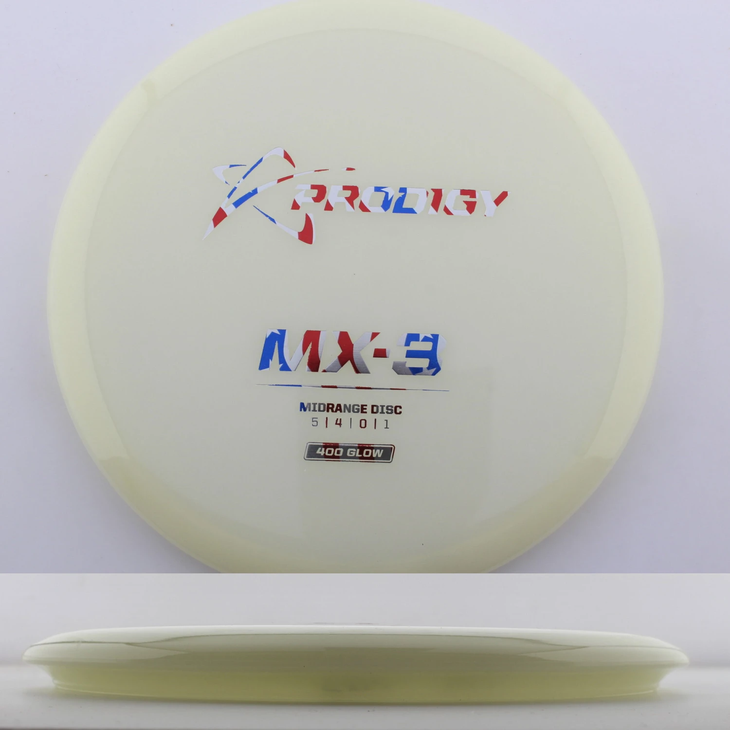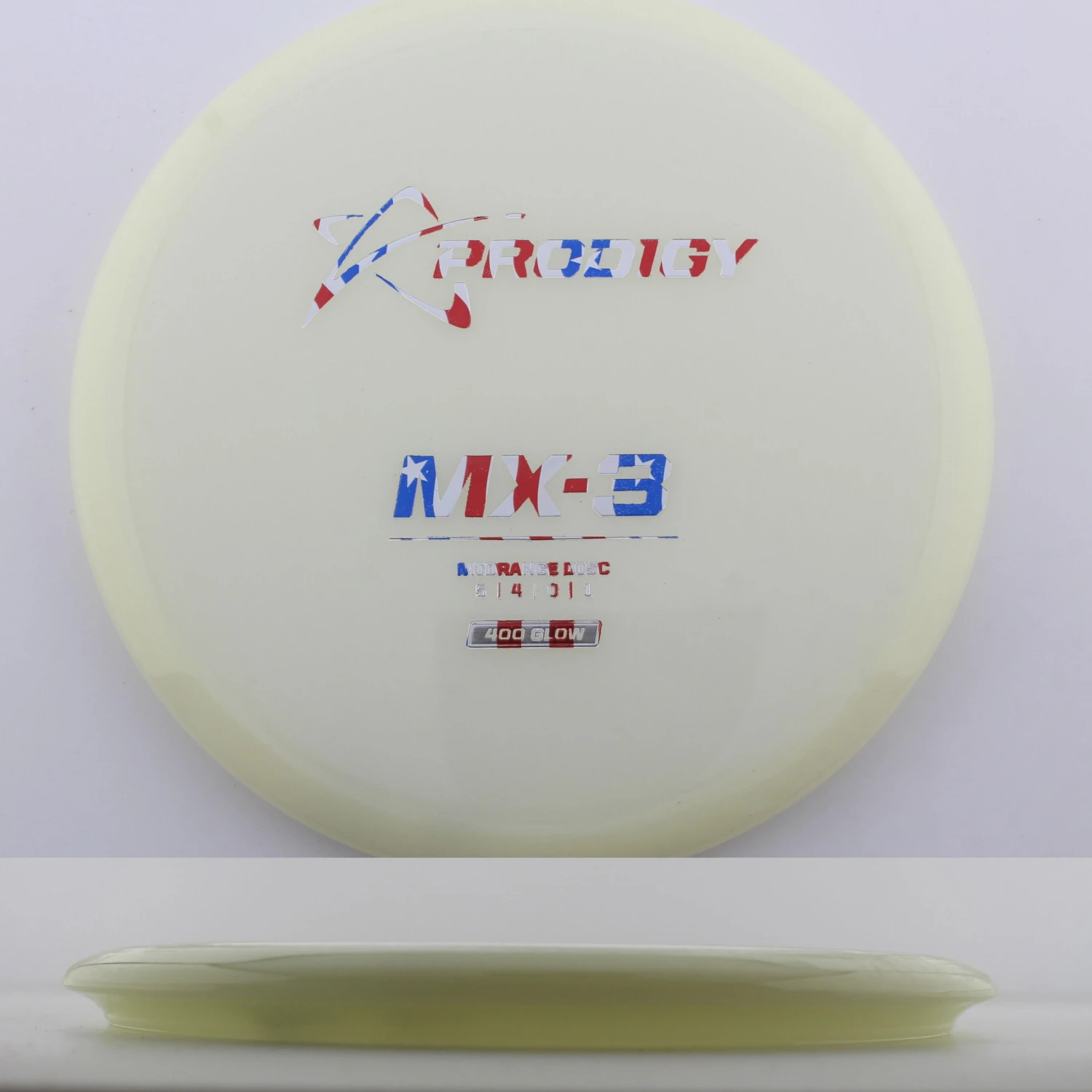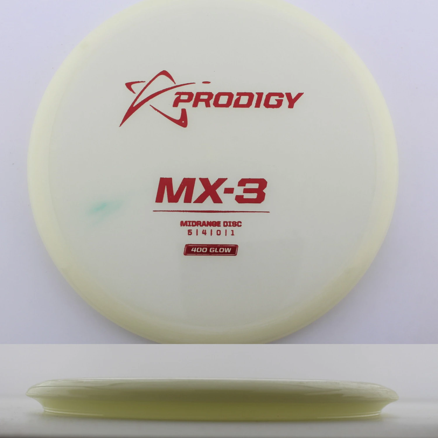 400 Glow MX-3 – The newest disc in the Prodigy lineup, the MX series is a new series of midranges helping to expand the lineup. The MX-3 is extremely torque resistant allowing it to be thrown hard and without the disc flipping. prodigy compares it to an M2 in stability but with more glide and more forward carry. The 400 Glow plastic has a lot of grip and plenty of durability, plus it glows great! If you are looking for a glidey stable midrange to throw, try out the 400 Glow MX-3 from Prodigy.