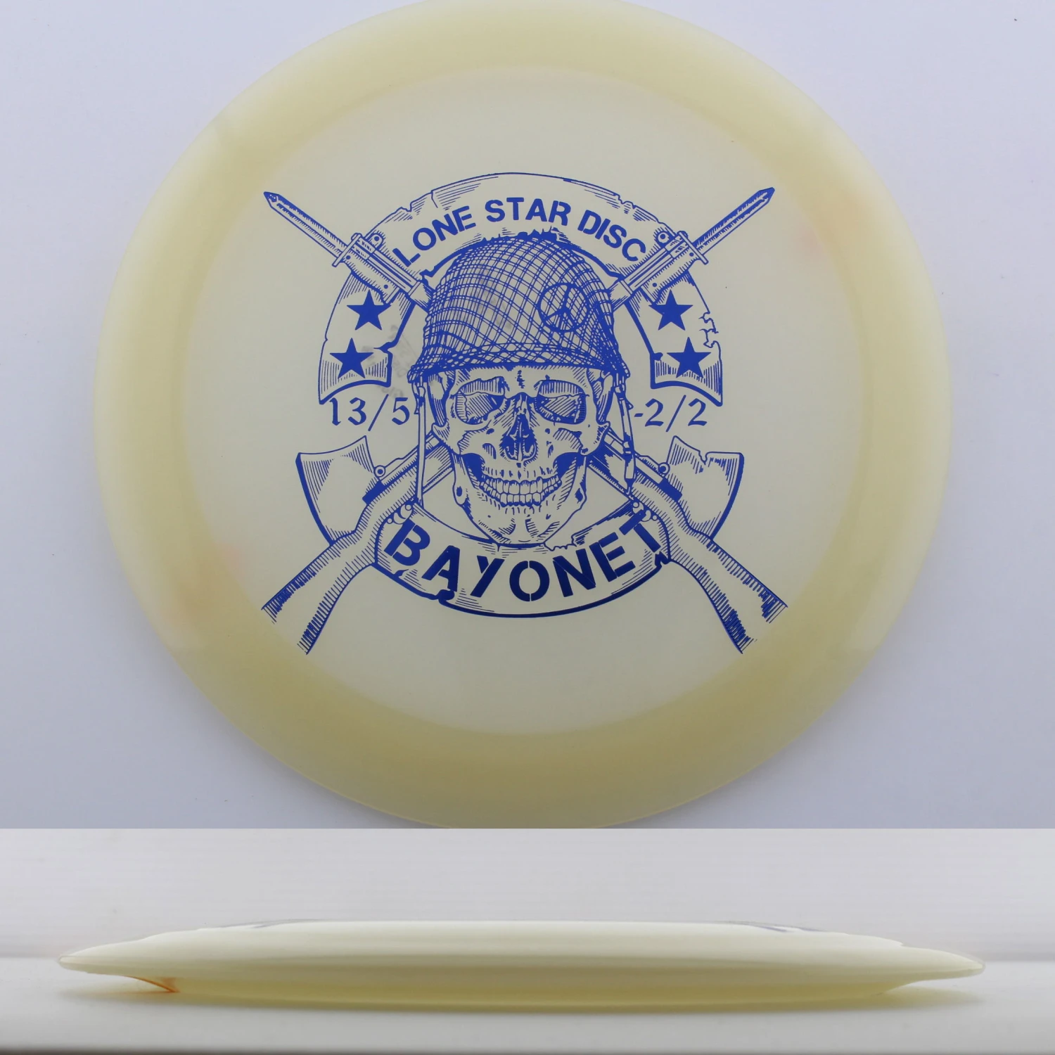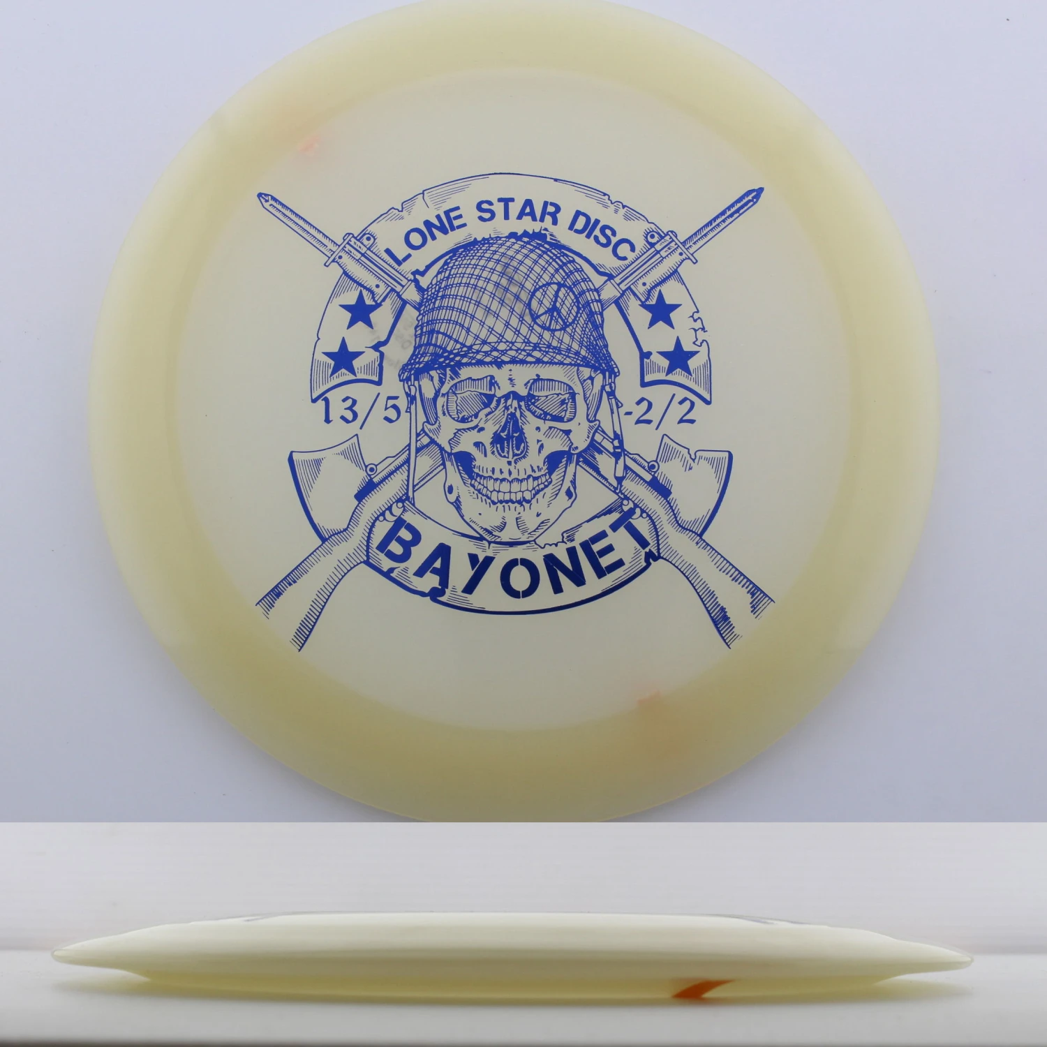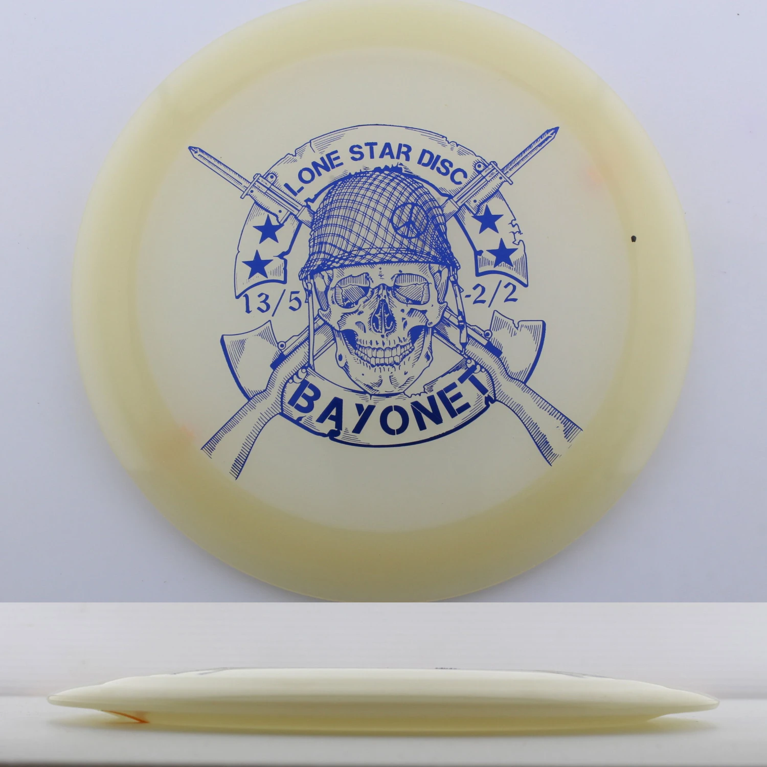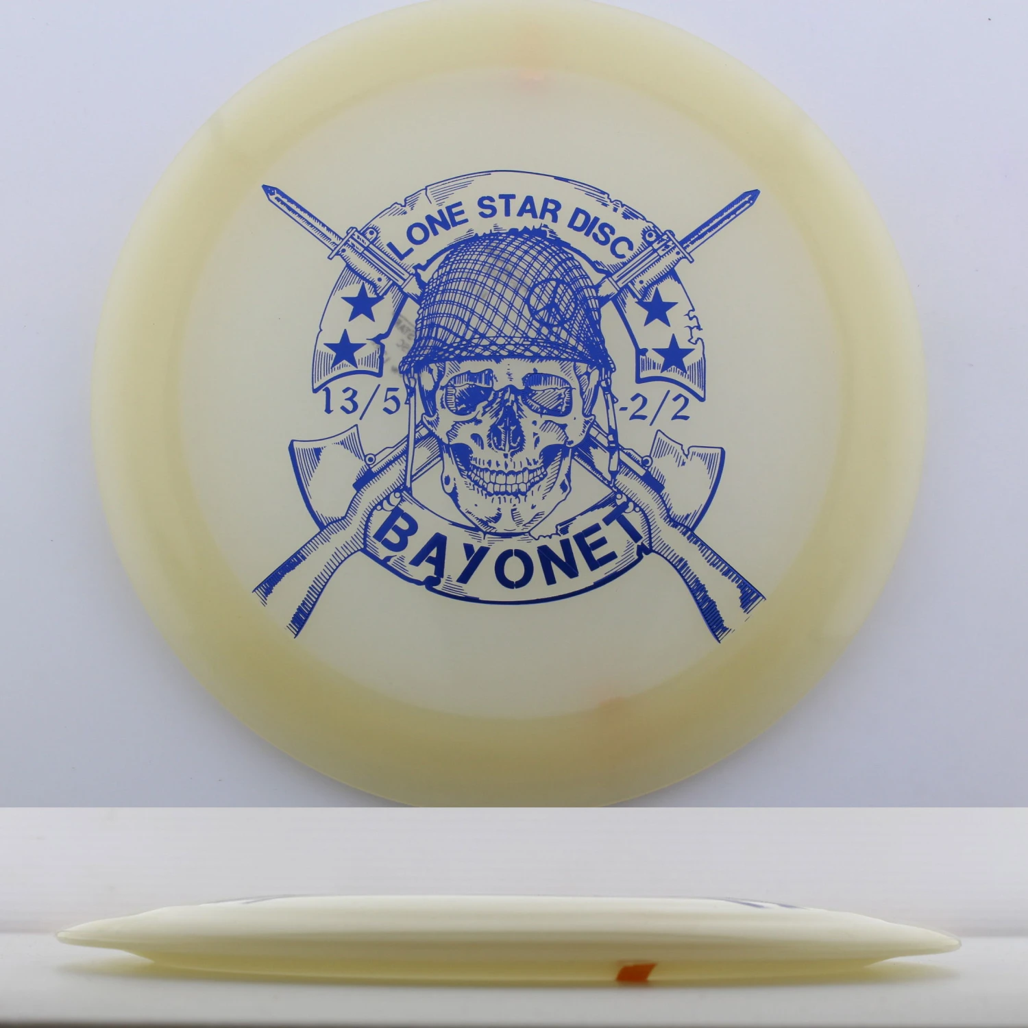 Glow Bayonet – If you are looking for distance, look no further! This mold is a certified bomber offering enough turn to really carry down the fairway and enough fade to trust with power. Big arms will find this to be a great tailwind disc or a perfect disc for big rollers, while slower arm speeds will find themselves with a go-to distance driver. Make sure you grab a Lone Star Discs Glow Bayonet today!