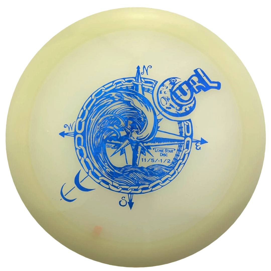 Lone Star says this about the mold: “The Curl is long on glide with a neutral stability and just enough fade to accomplish extraordinary distance with accuracy. This distance driver works well for forehands or backhands, and in all conditions. Players of all skill levels can achieve good distance with the Curl.”