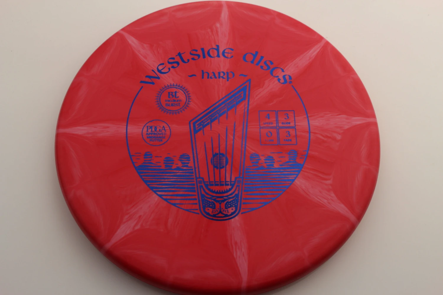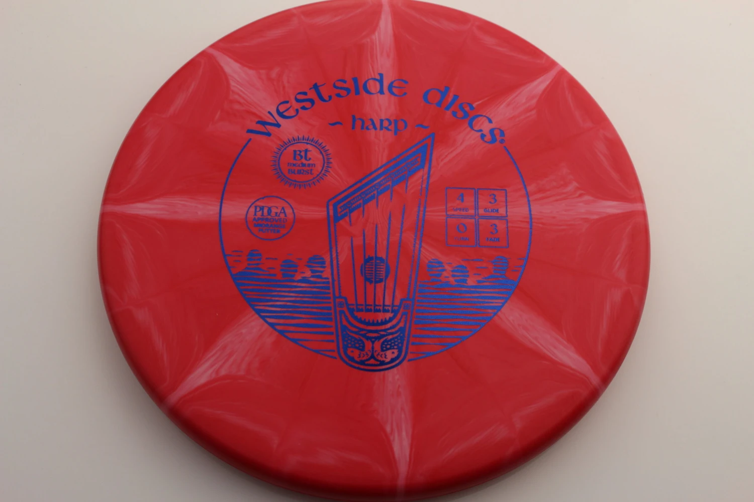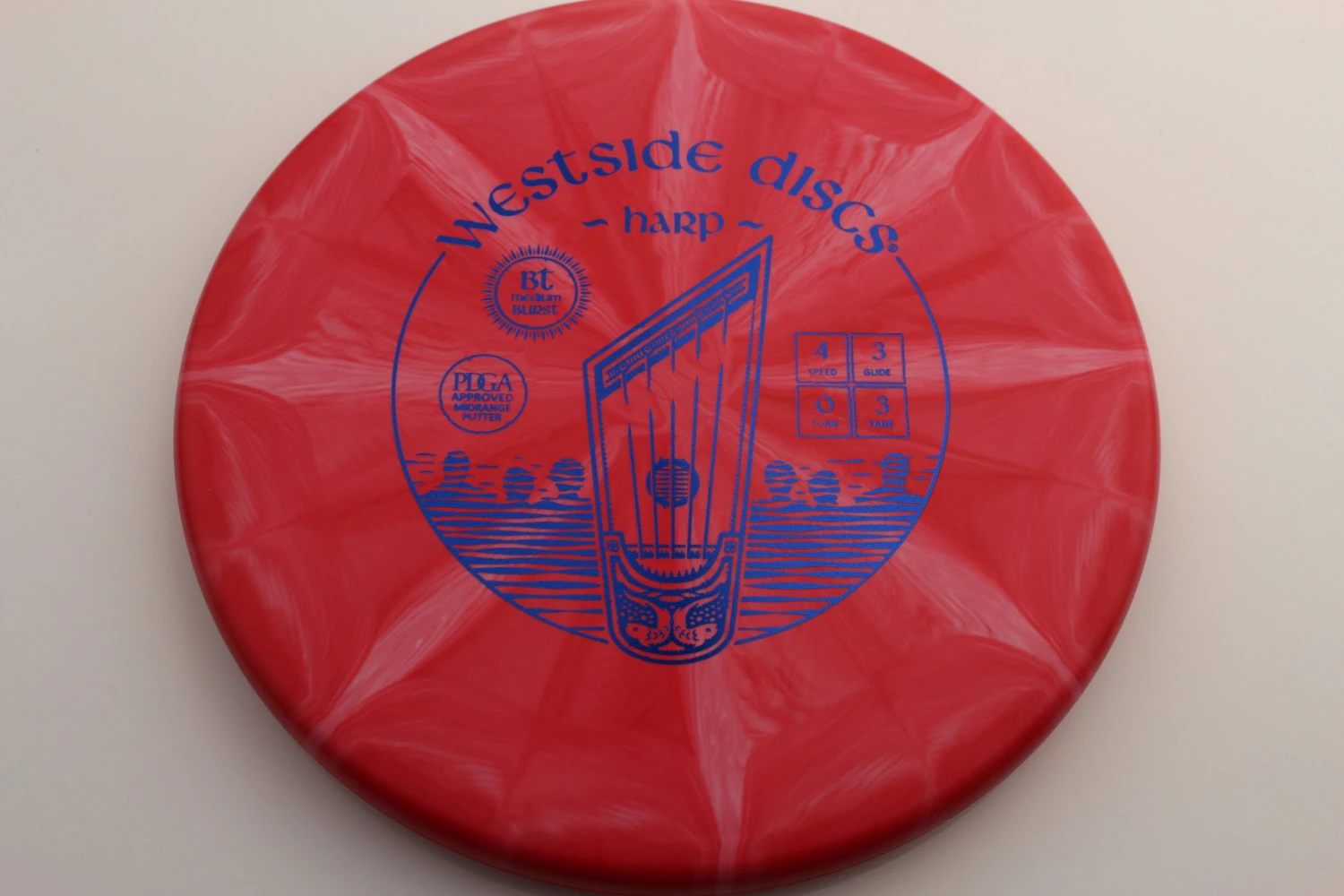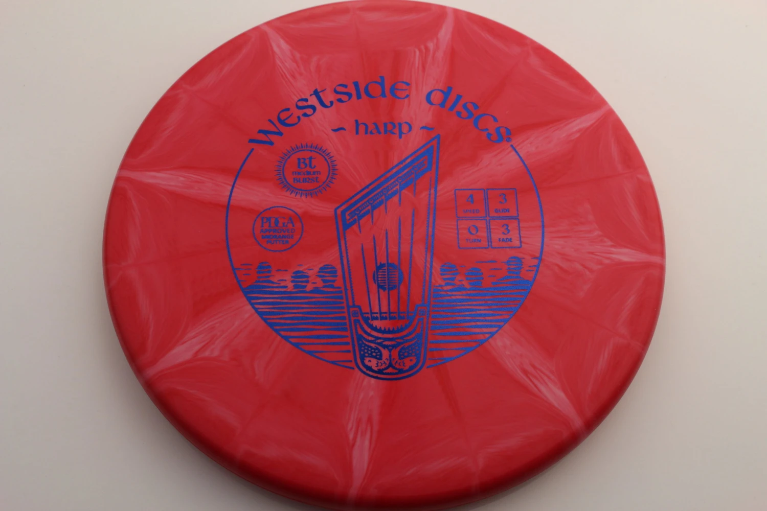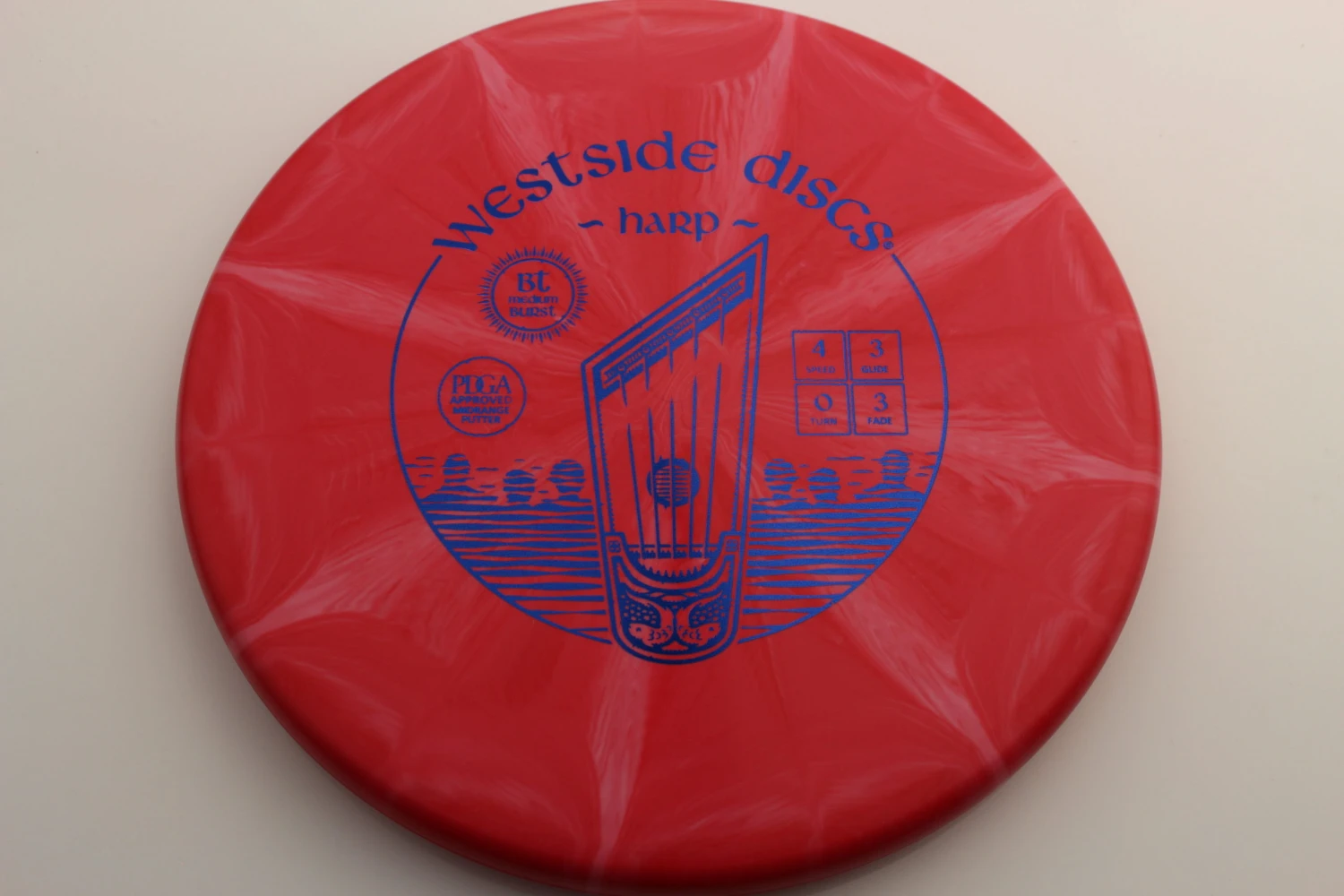 Westside says this about the mold: “The Harp is our most reliable approach disc. Designed to withstand any type of condition. It will hold in the wind. For professional players, this could be their only approach disc they will need to carry as it can hold anyone’s arm speed and still hyzer. For slower arm speeds, it will be your most overstable approach disc.”