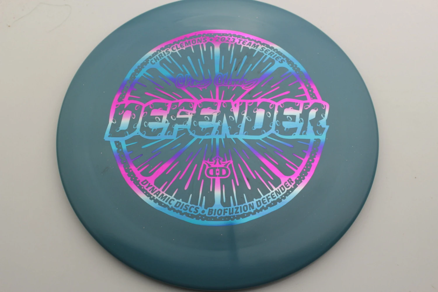 Chris Clemons BioFuzion Defender – The BioFuzion Defender from Dynamic Discs, is a 12 speed distance driver that is made for intermediate to pro level players. It is reliable as it goes straight when thrown, with a good amount of overstability at the end of its flight. With a slightly overstable flight this is a disc that can be trusted at full power. It has BioFuzion plastic which is recycled plastic which makes this disc more durable and environmentally-friendly. The BioFuzion plastic has plenty of durability but will beat in a little quicker than the standard Fuzion plastic. Make sure you grab a Chris Clemons BioFuzion Defender today!