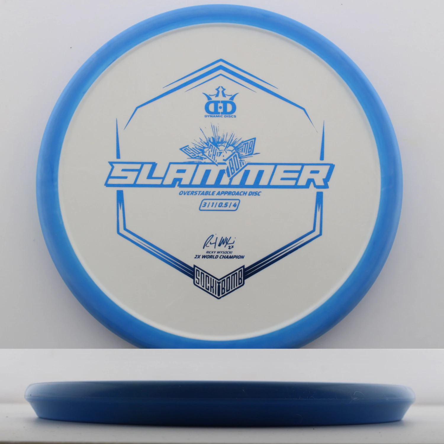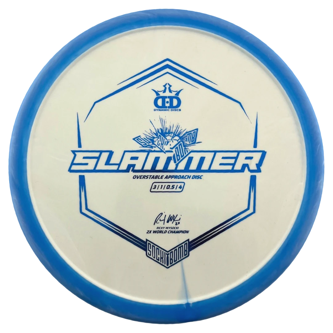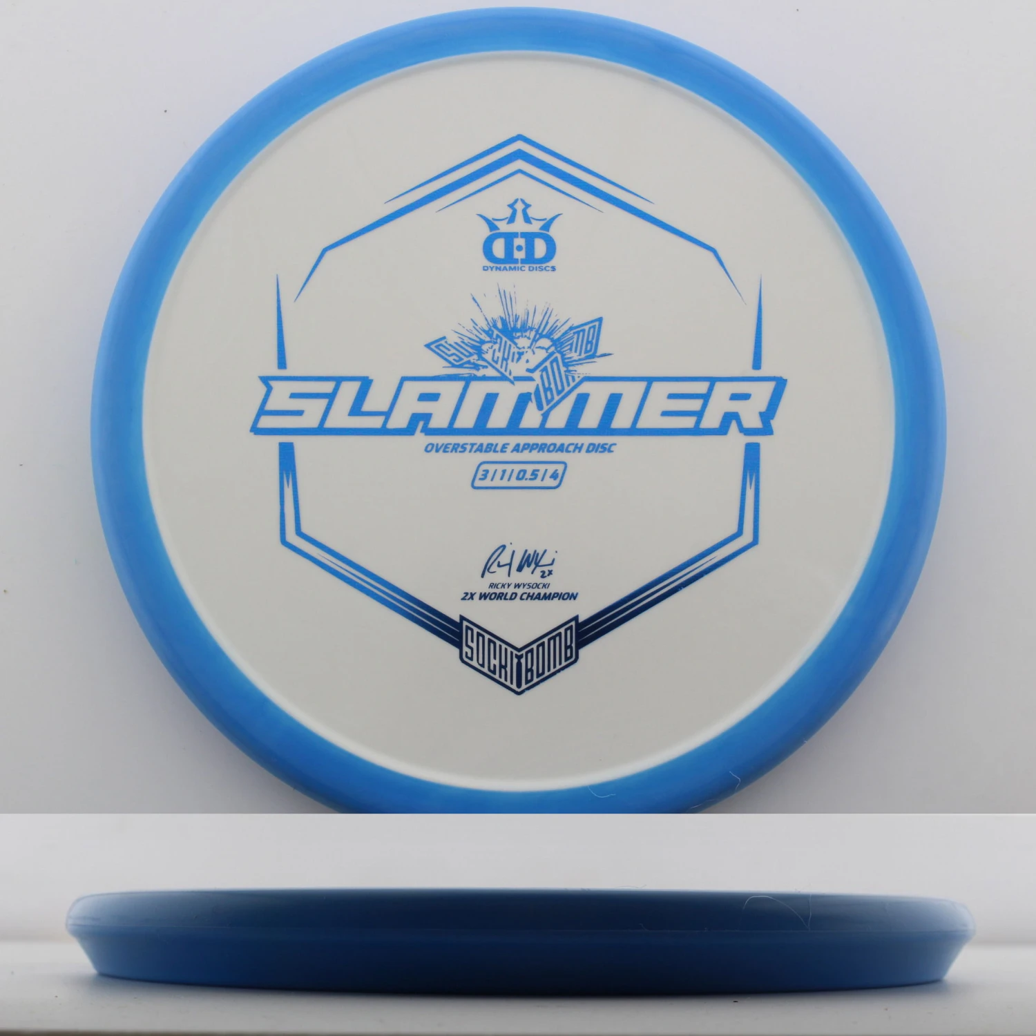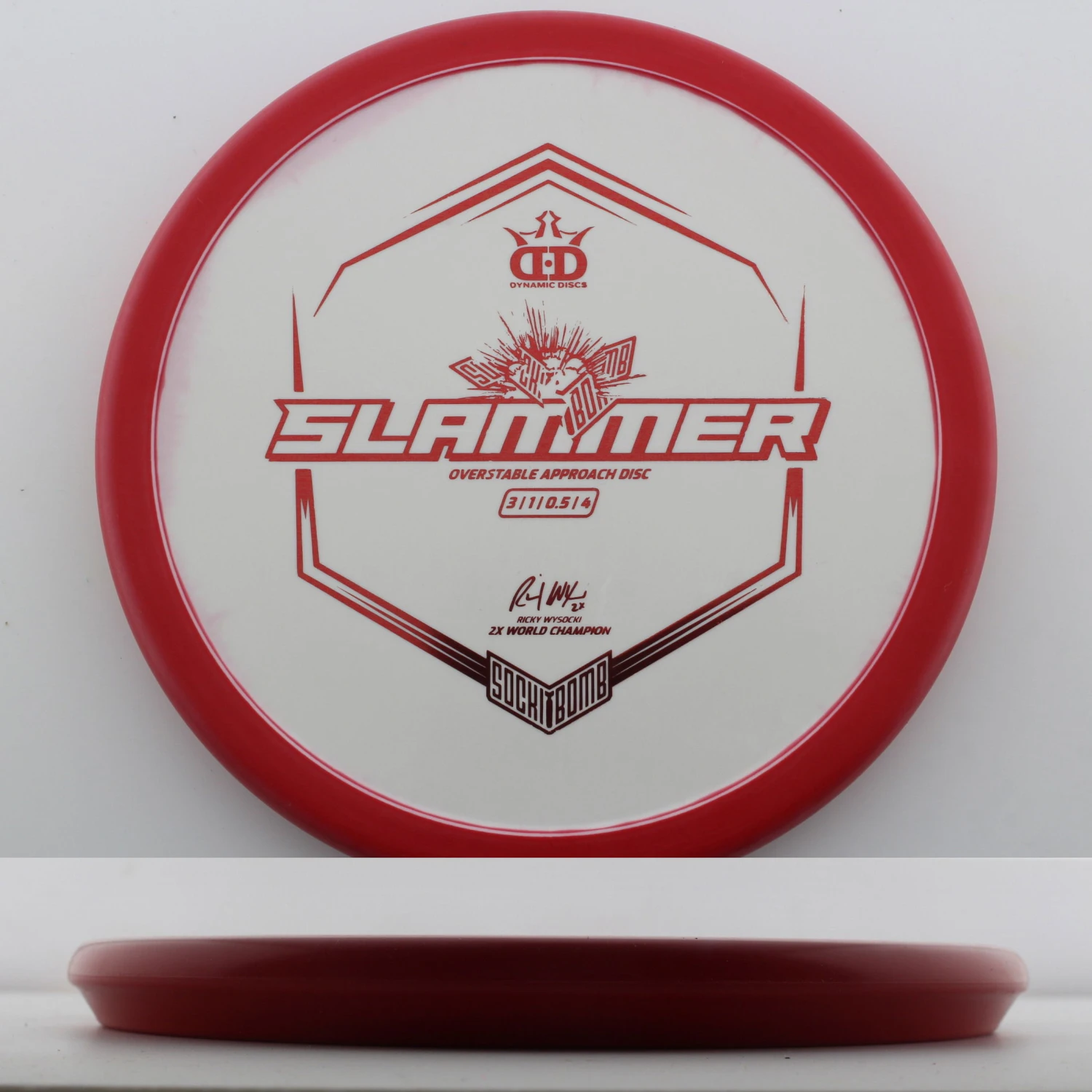 Dynamic says this about the mold: “Get ready, collectors! The Classic Supreme Orbit Sockibomb Slammer Ignite Stamp is not just any ordinary disc, it’s the first in a series of 4 different versions, each with its own unique stamp design. It’s the must-have for all disc golf enthusiasts. The Sockibomb Slammer is the first new mold in 2x Ricky Wysocki’s Sockibomb lineup and it’s packed with performance. With the combination of the grip from the Dynamic Discs Slammer and the consistency from the Westside Discs Harp, it’s the perfect addition to your disc golf bag. Don’t miss out on the opportunity to own a piece of history and enhance your approach game with the dependable Sockibomb Slammer.”