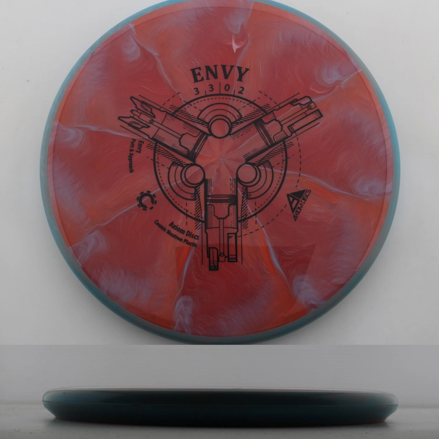 From Axiom Discs – “The Envy has a smooth modern feel that fits in the hand perfectly, lending confidence for both putt and approach duties. The Envy exhibits reliable high-speed stability and a minimal fade. With a slightly lower profile and cruising speed than the Ion and Anode class, the Envy is a uniquely “lid-like” stable putter.”