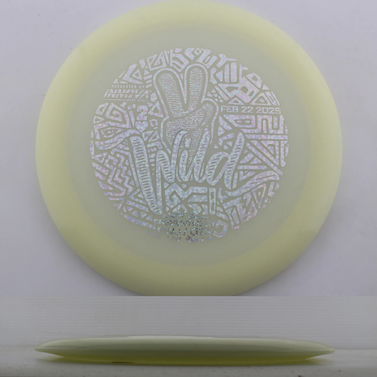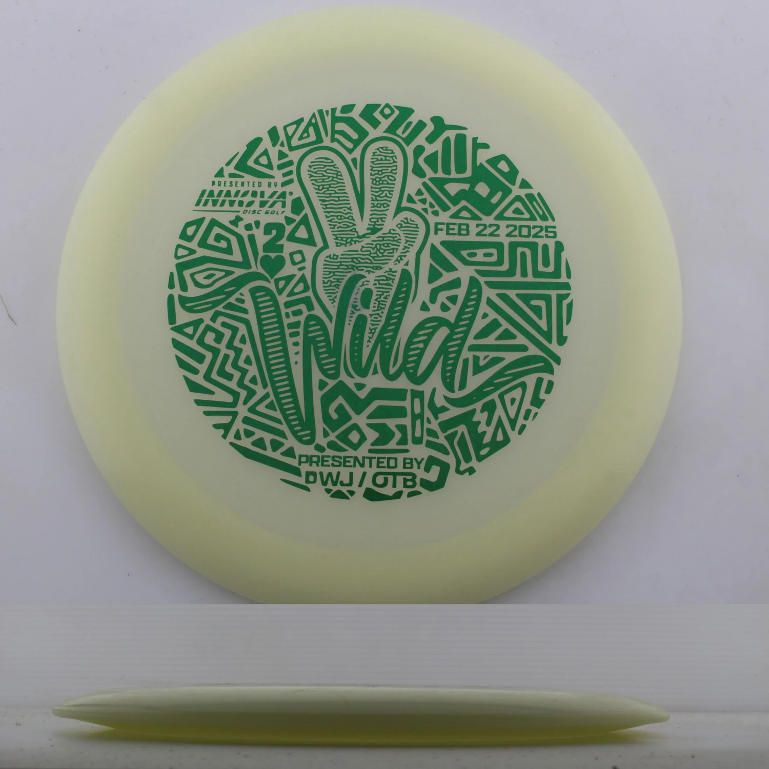 Deuces Wild Classic Glow Champion Wraith – One of the most popular Distance Drivers in Innova’s lineup. Well loved by many, the Wraith has a more universally comfortable grip than some of the wider rimmed 12, 13+ speed Distance Drivers. It has a ton of glide and the newer runs have a bit more stability than they have had in the past few years. Great for both forehands and backhands, these disc carve up both wooded courses and open distance control courses. The mold is super reliable and consistent and can be thrown by any skill level. The Classic Glow Champion plastic feels amazing and has a solid glow.. Make sure you grab aDeuces Wild Classic Glow Champion Wraith and control your distance game.