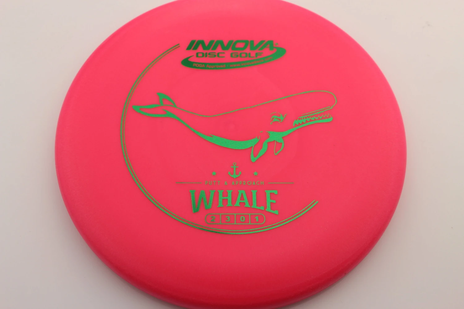 Innova says this about the mold: “A meaty feeling putter in the hand, the Whale is designed for players looking for consistent flights regardless of how hard they throw. The Whale flies like a driver and lands like a putter. The Whale is easier to throw sidearm because of its superior torque resistance.”