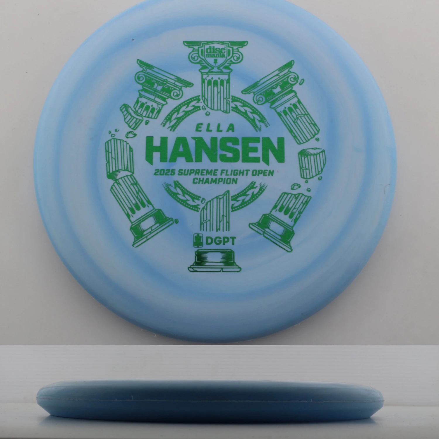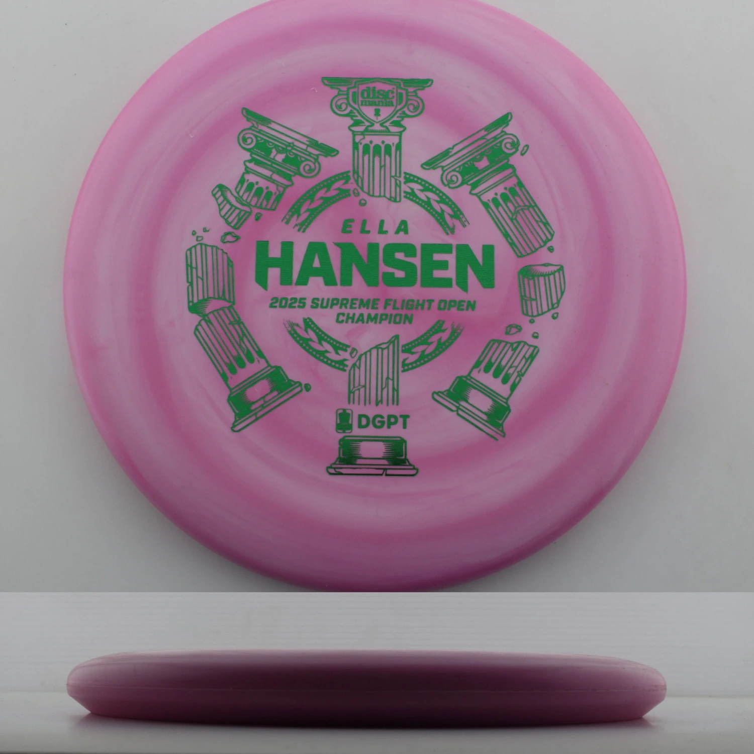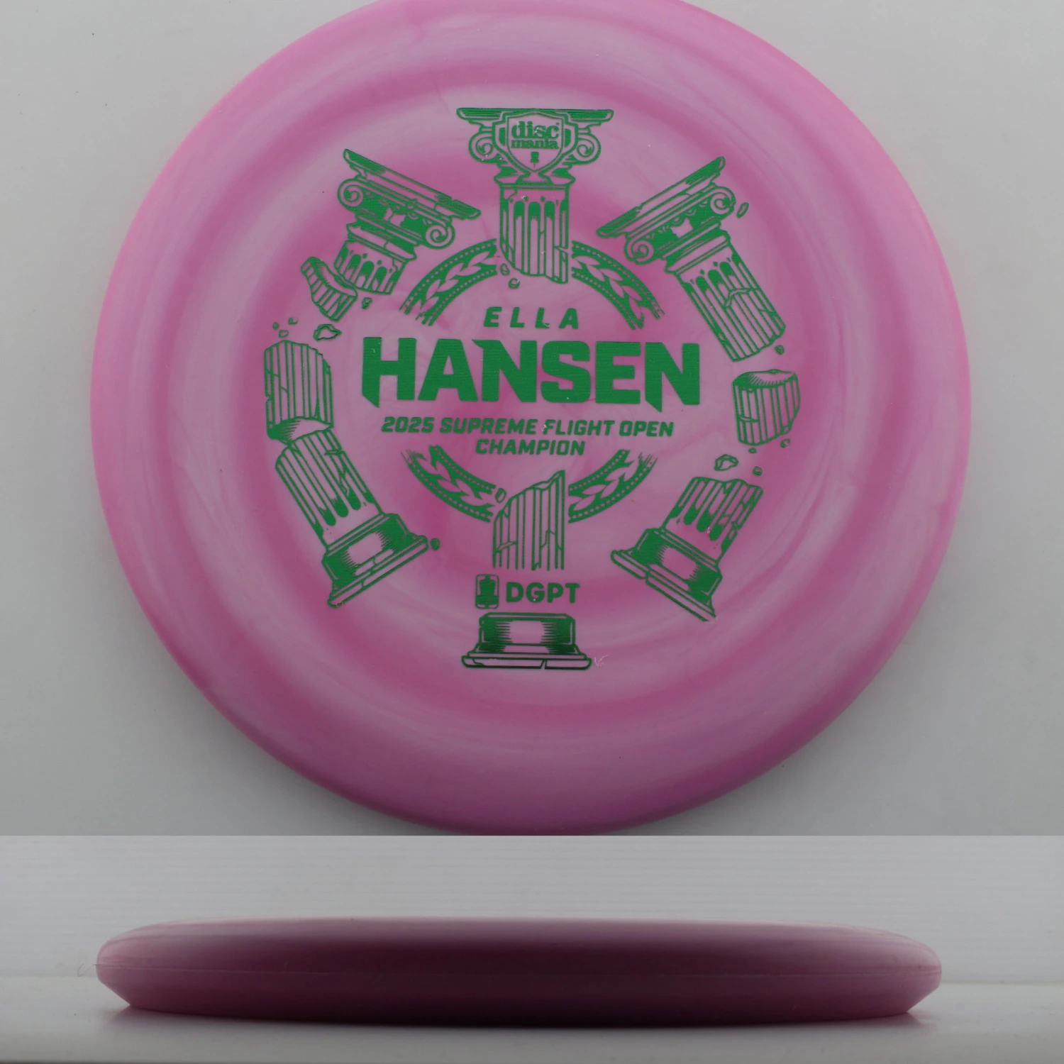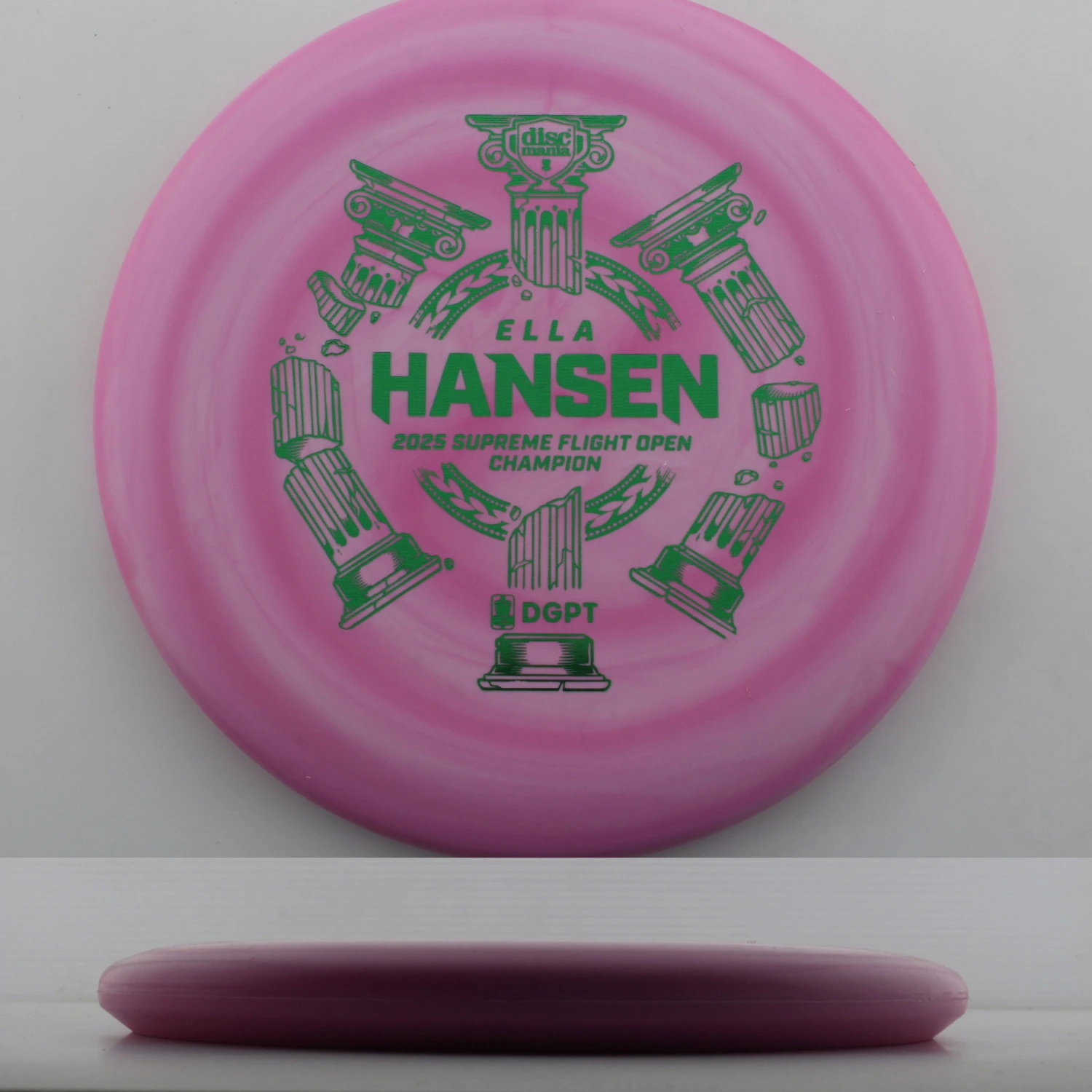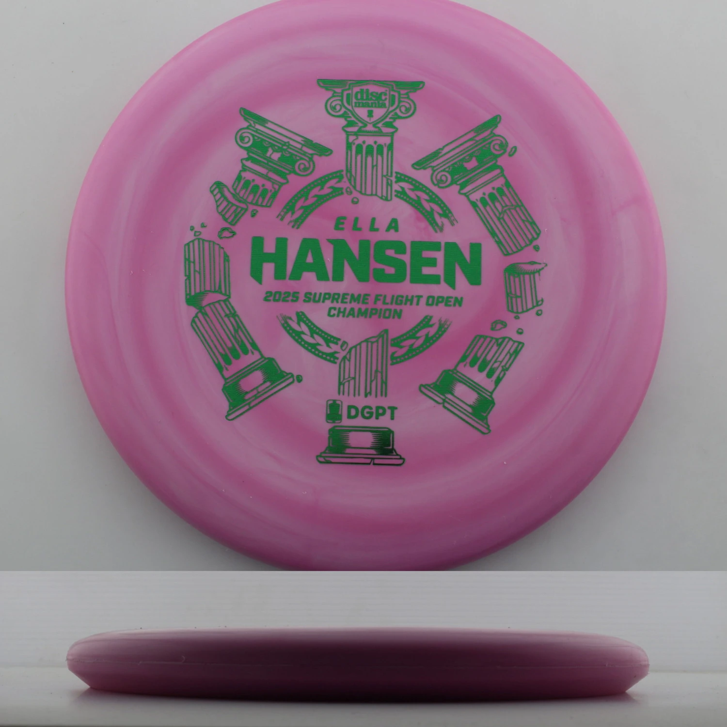 Discmania has this to say about the run: “A champion’s touch, a winner’s mindset. Discmania proudly presents the Ella Hansen Swirl Flex 2 D-Line – Triumph series to celebrate first elite win of the year. This special release is crafted for those who demand excellence on the putting green and beyond.