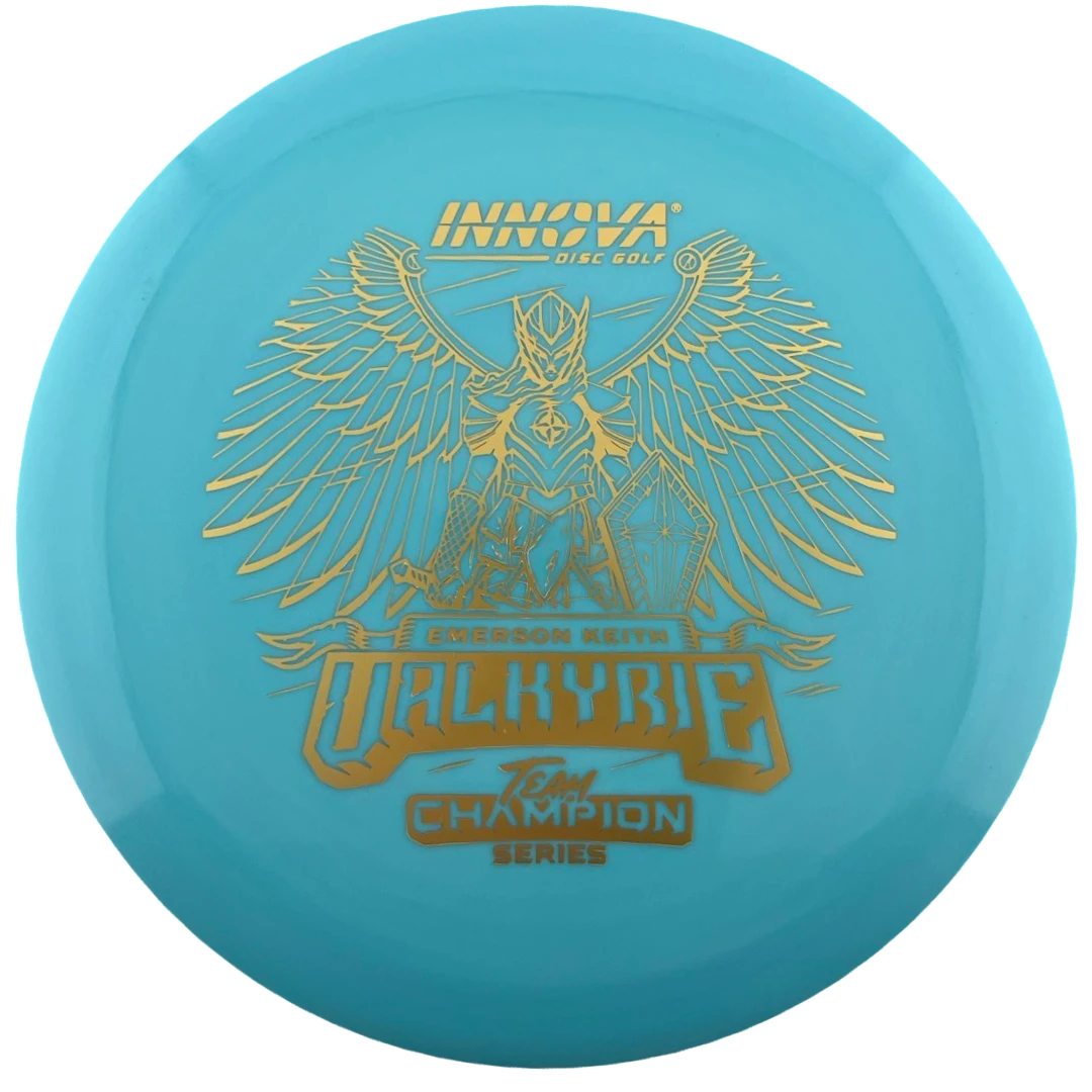 Innova says this about the mold: “In lighter weights gives new players extra distance. Lighter weights also give players extreme range when thrown downwind, while maximum weights can give excellent upwind distance. The Valkyrie’s high speed turn and flight characteristics make it great choice for long range turnover shots and rollers.”
