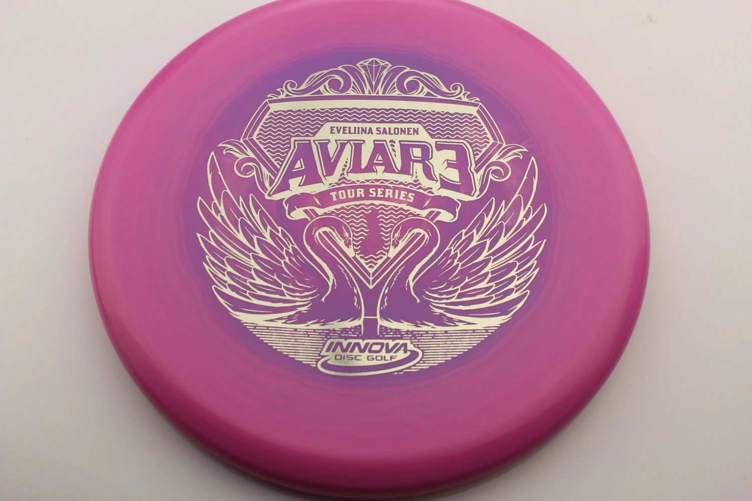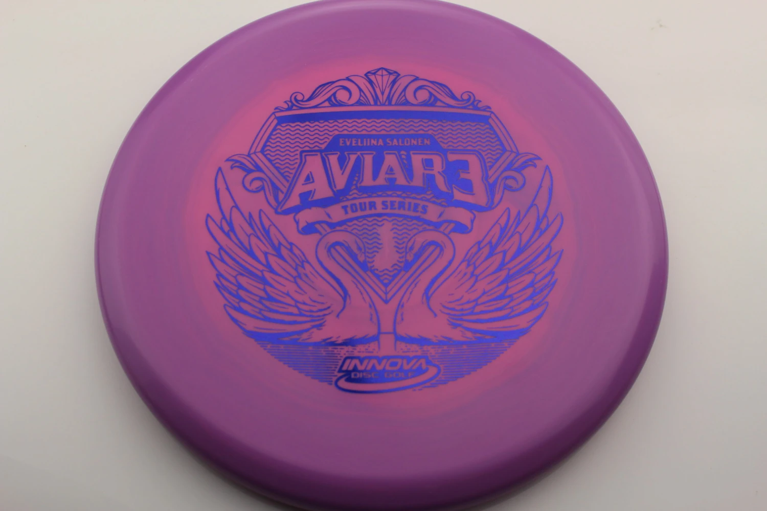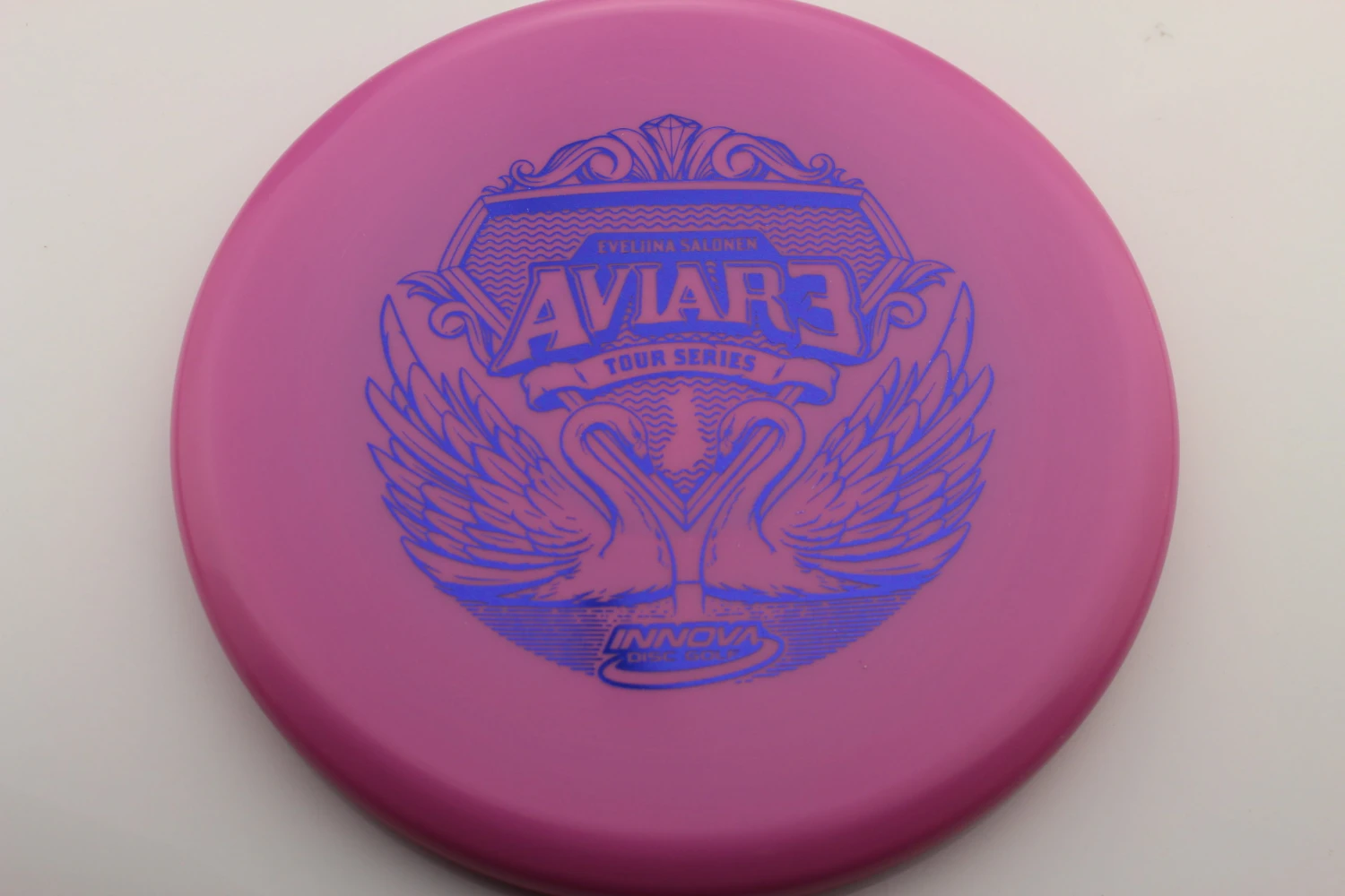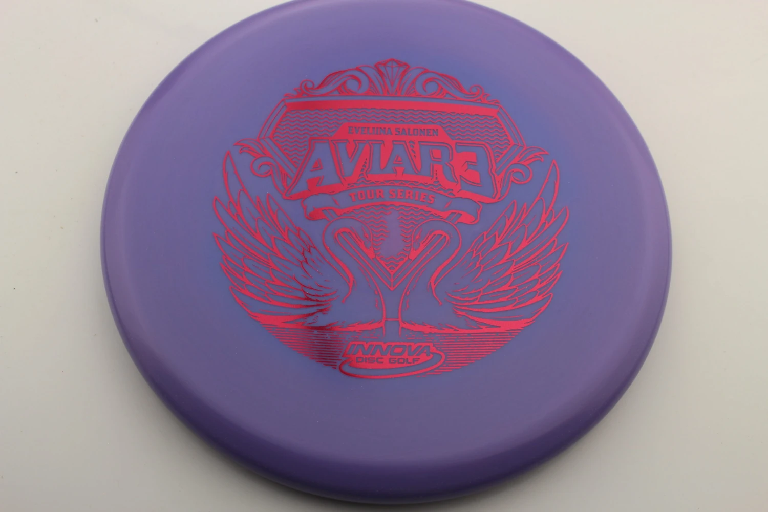 Innova says this about the run: “The Aviar3 has the same comfortable grip you’d expect in an Aviar putter but with a distinctive flat top. Its lower profile feels fast. Even better, it can handle the speed. Throw the Aviar3 with power, backhand or forehand, and you can trust it to drop on target. A substantial portion of each sale will benefit Eveliina Salonen and her touring efforts.”