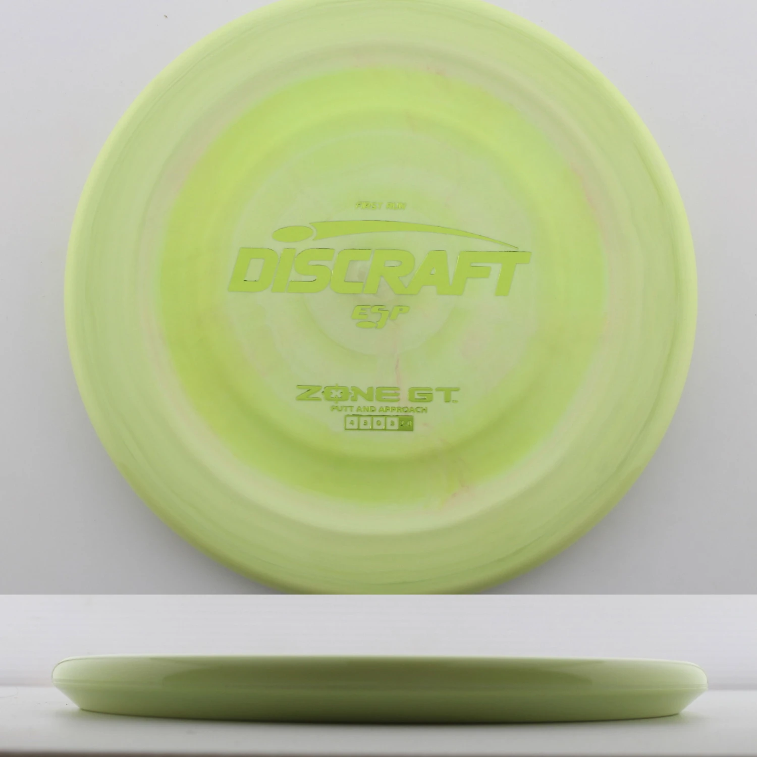 First Run ESP Zone GT – The Zone GT is here and after the Battle Pack, the Banger Top Zone GT is the winner. This mold has a comfortable grooved top that provides grip and overstability. This is such a great feeling disc that can be used all over the course both forehand and backhand. The ESP plastic feels amazing and provides grip and performance that feels great in this run. Make sure you pick up a Discraft First Run ESP Zone GT today.