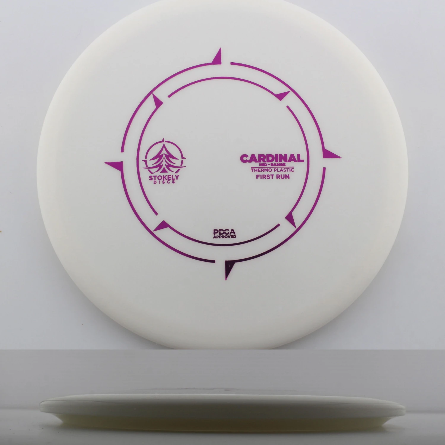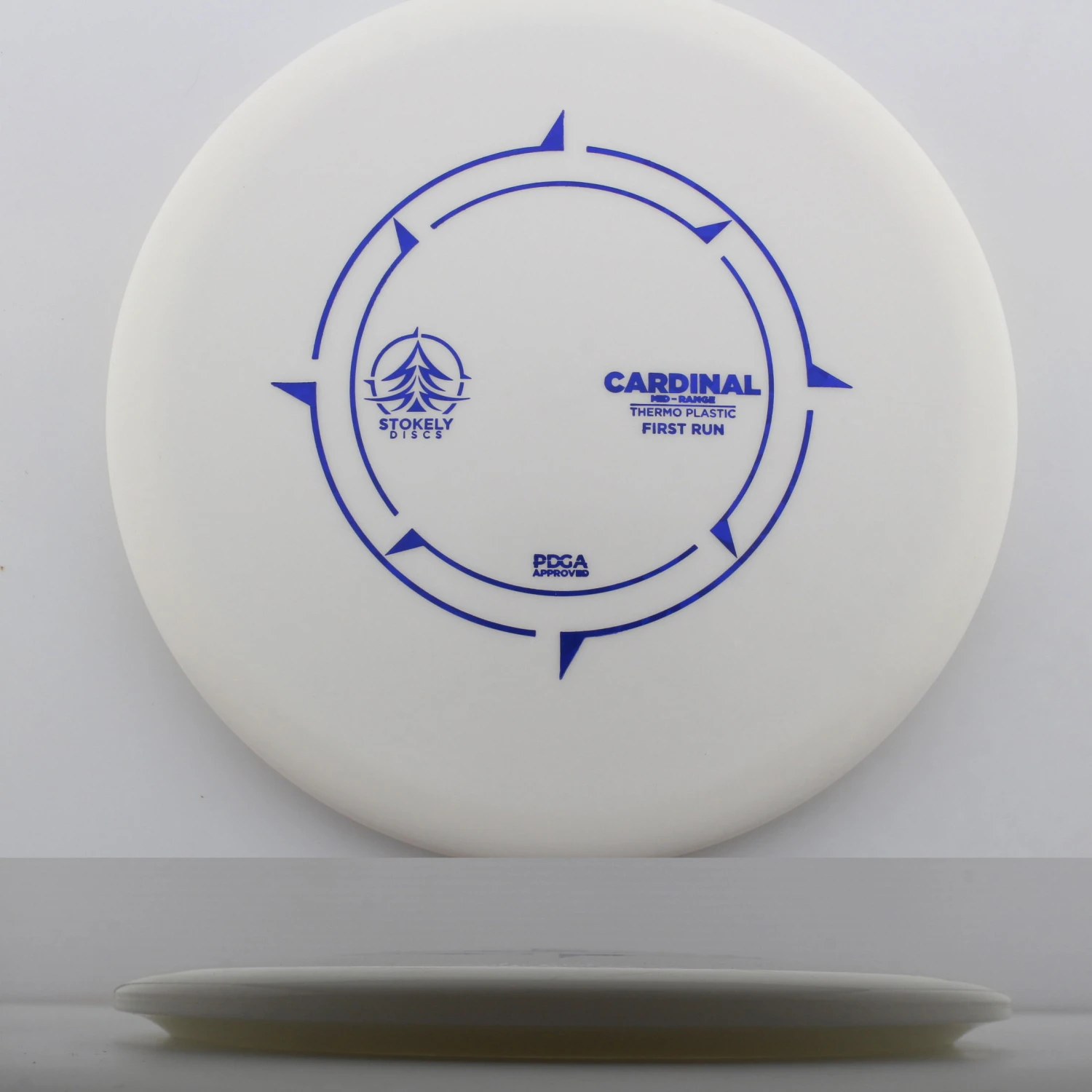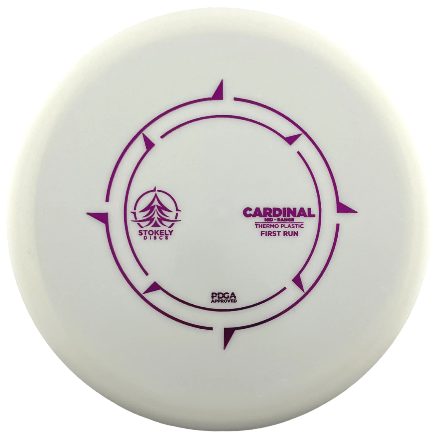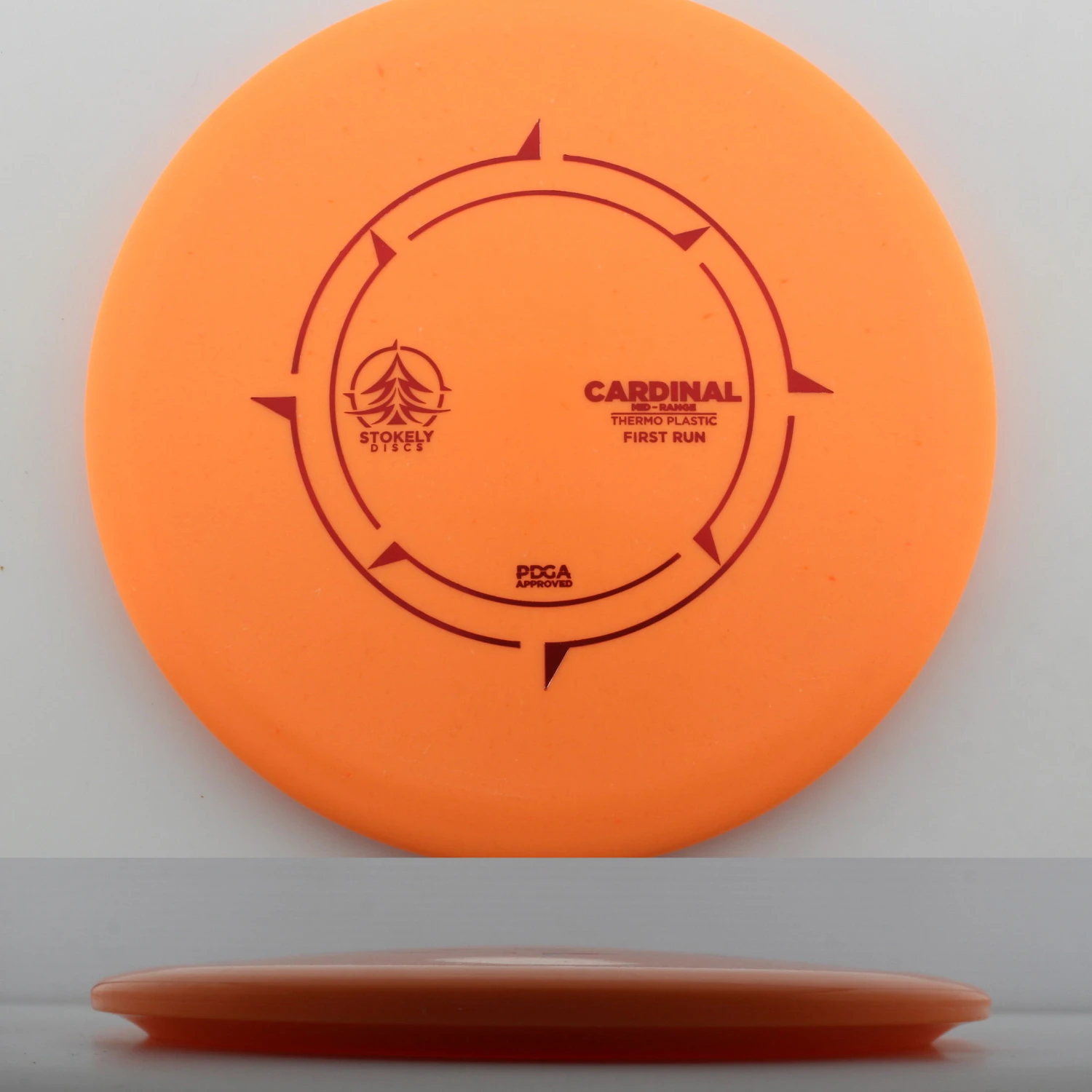 First Run Thermo Cardinal – The Cardinal is a slightly overstable midrange that can handle power without being too overstable. The Thermo plastic feels great in the hand and this comes with a sweet First Run stamp. Make sure you test out the Stokely Discs First Run Thermo Cardinal.