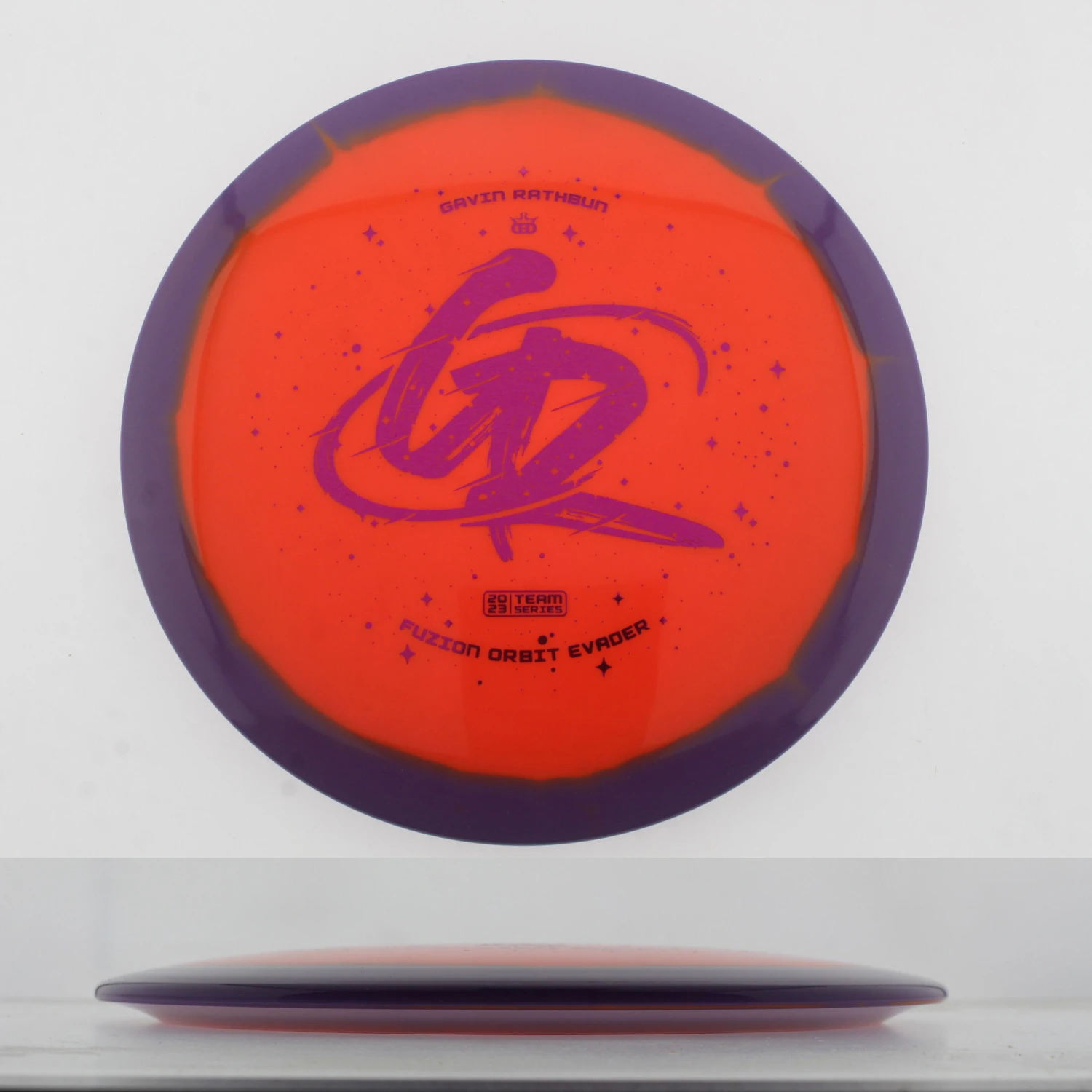 Gavin Rathbun Fuzion Orbit Evader – Dynamic Discs has done it again with this amazing fairway driver. We have seen this thrown by several of the well known Trilogy sponsored players and it flies beautifully. It is a 7 speed disc that is nice and stable so you can throw it with a ton of power. it has a great feel in the hand and gets a ton of glide. You can really crush this without fear of it flipping. The Fuzion Orbit plastic is an amazing plastic that can be used for a long time due to the durablity. This run helps support Gavin Rathbun during his 2023 Tour season. Make sure you grab a Gavin Rathbun Fuzion Orbit Evader today!!