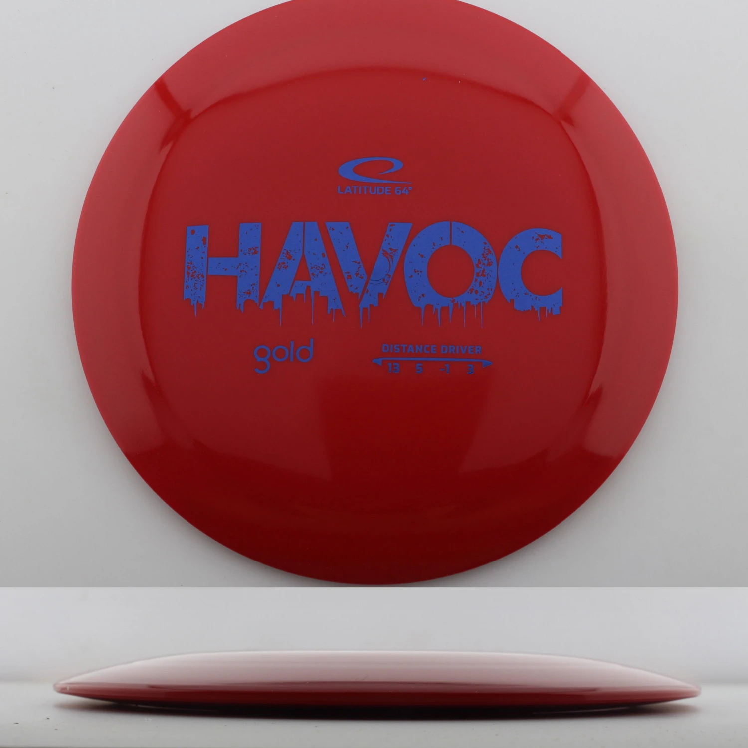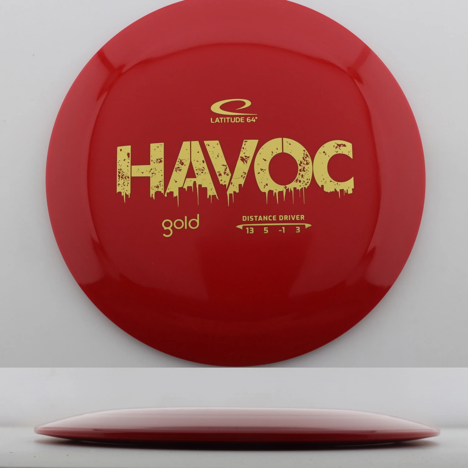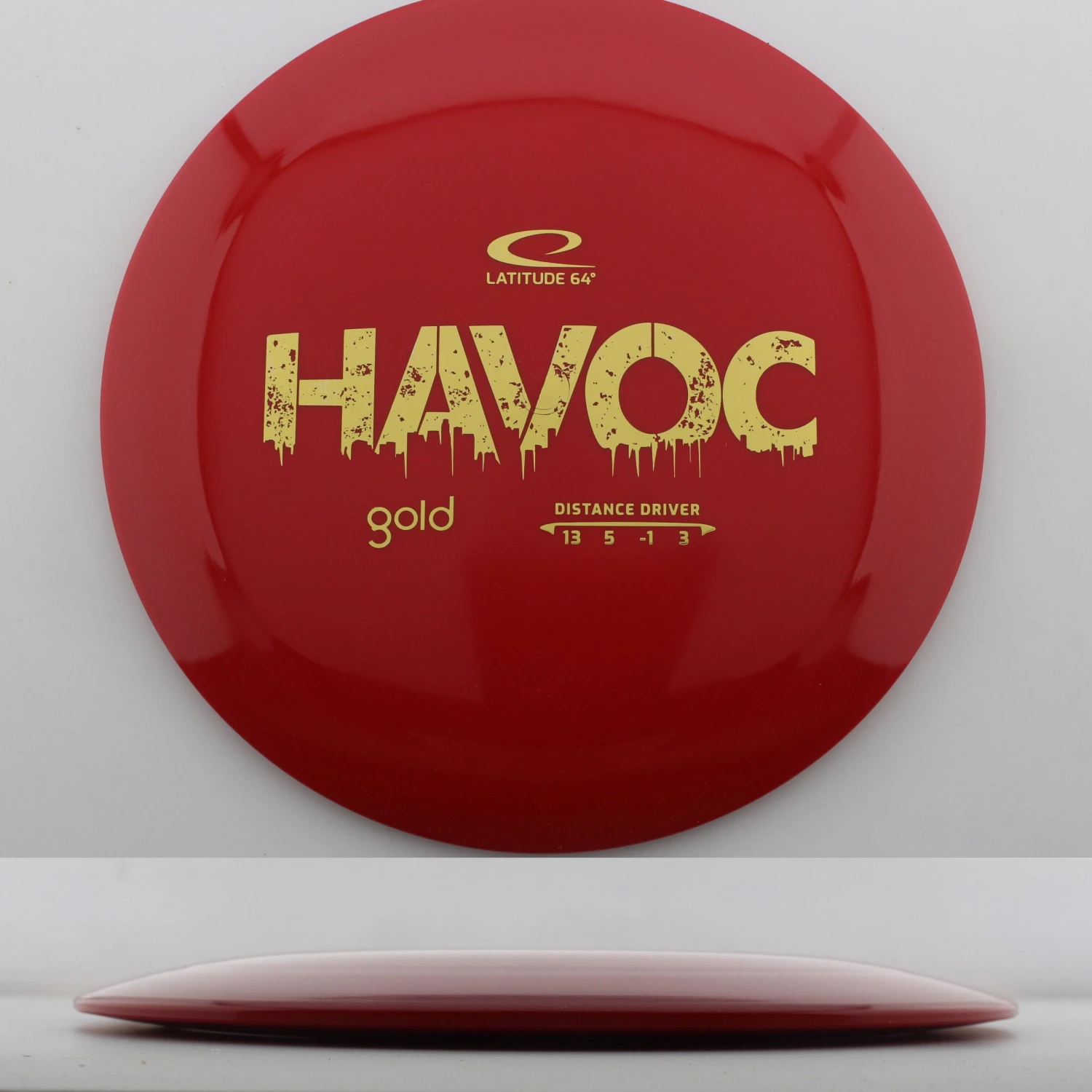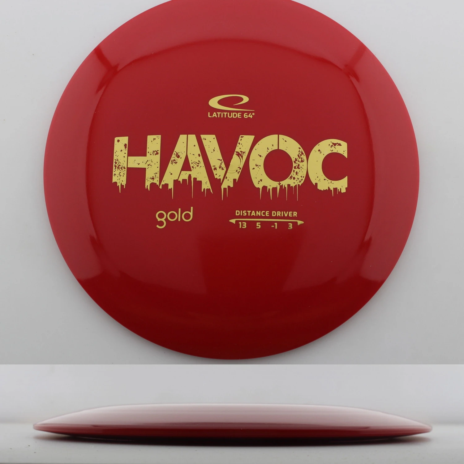 Gold Havoc – One of the more popular distance drivers in the Latitude 64 lineup, the Havoc is fast and has some good flip to it at high speeds. When thrown hard, the Havoc will turn over and glide for a while, with a nice reliable fade at the end. It has a decent amount of low speed stability so you can trust it to fight out if it has enough height. Great for long turnovers or for those with a little less arm speed. A disc you can trust to get max distance when the hole calls for it. The Gold Line plastic has an amazing feel with plenty of grip without sacrificing durability or performance. If you want a long distance, slightly understable distance driver then try out a Latitude 64 Gold Havoc.