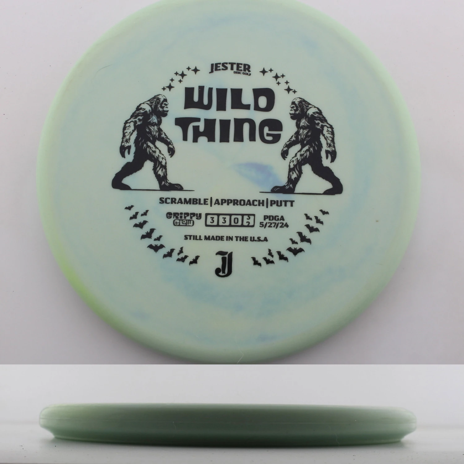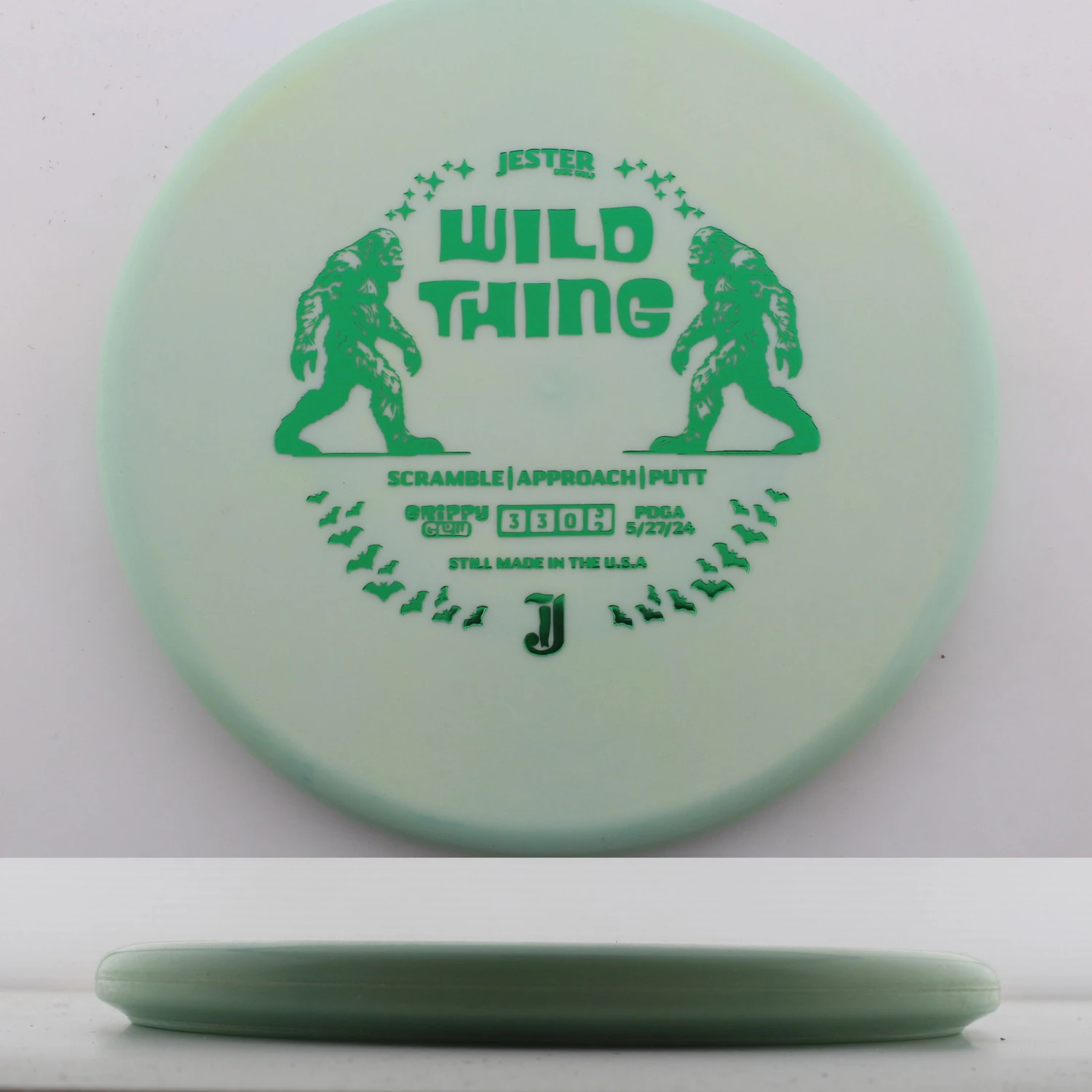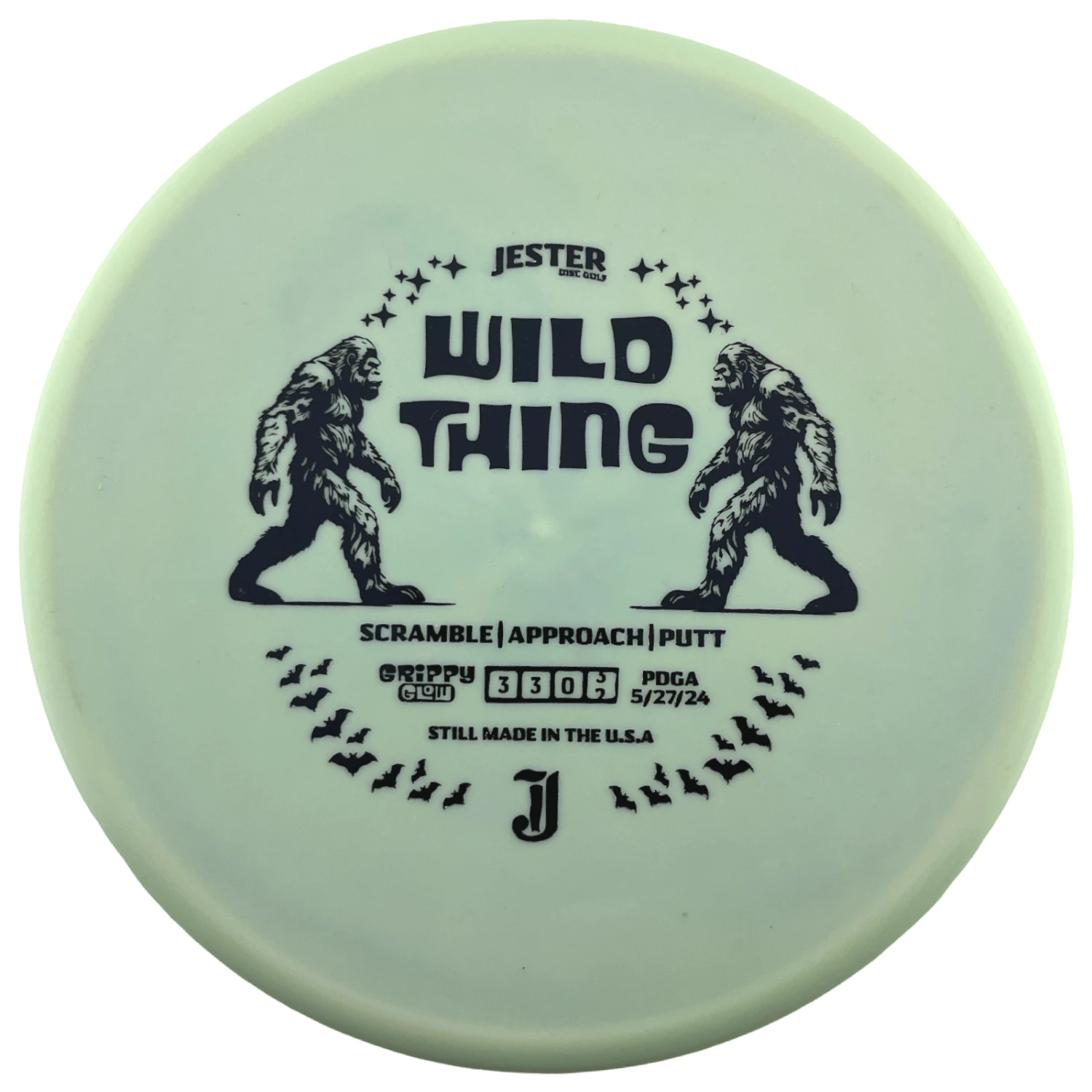 Grippy Glow Wild Thing – Jester Discs is an upcoming disc golf company that has some sweet molds already and now it has an overstable approach disc in the lineup. The Wild Thing has a bead but still feels shallow in the hand for those forehands. The Grippy Glow plastic feels exactly like it sounds, grippy and it glows. This is fantastic for hyzers and flex shots into the green or putts on those super windy days. Test out the Jester Discs Grippy Glow Wild Thing today.