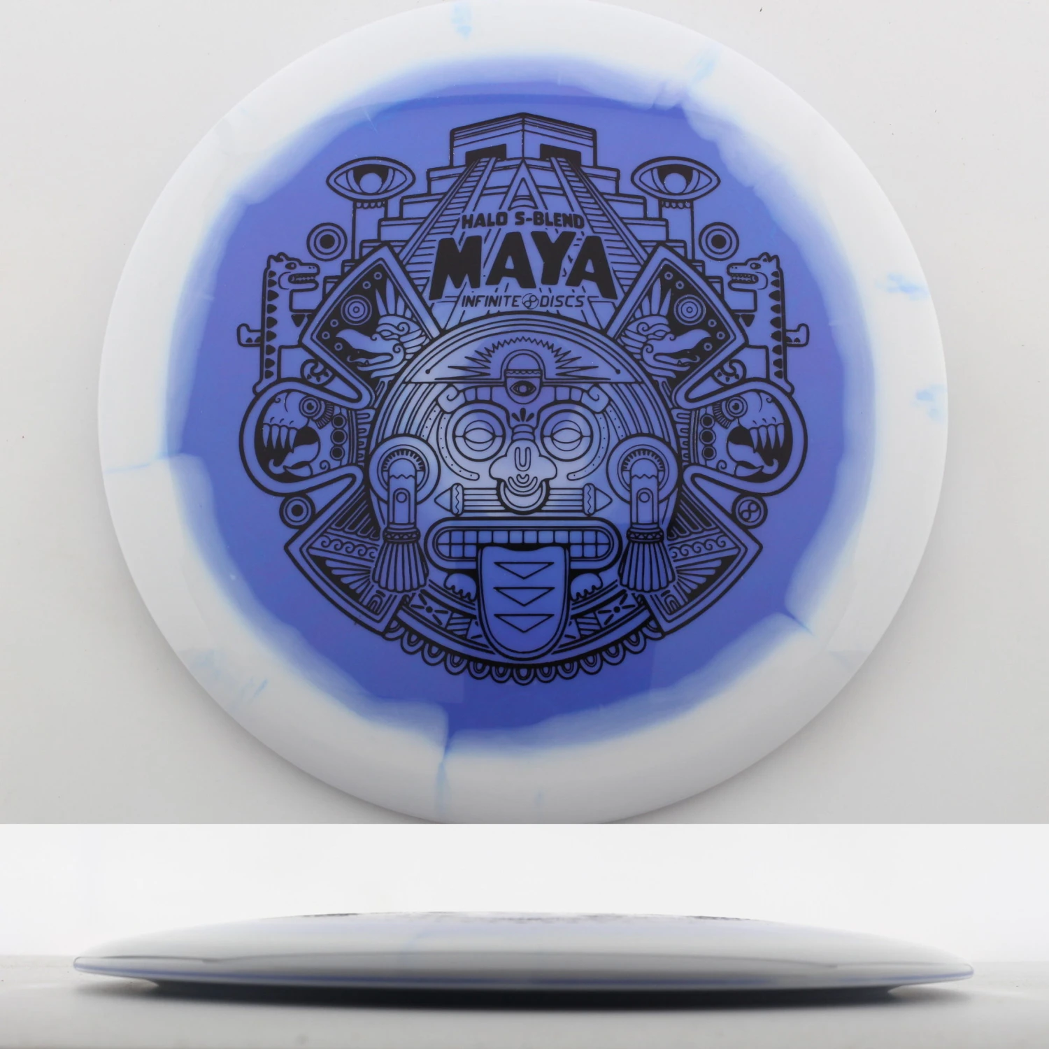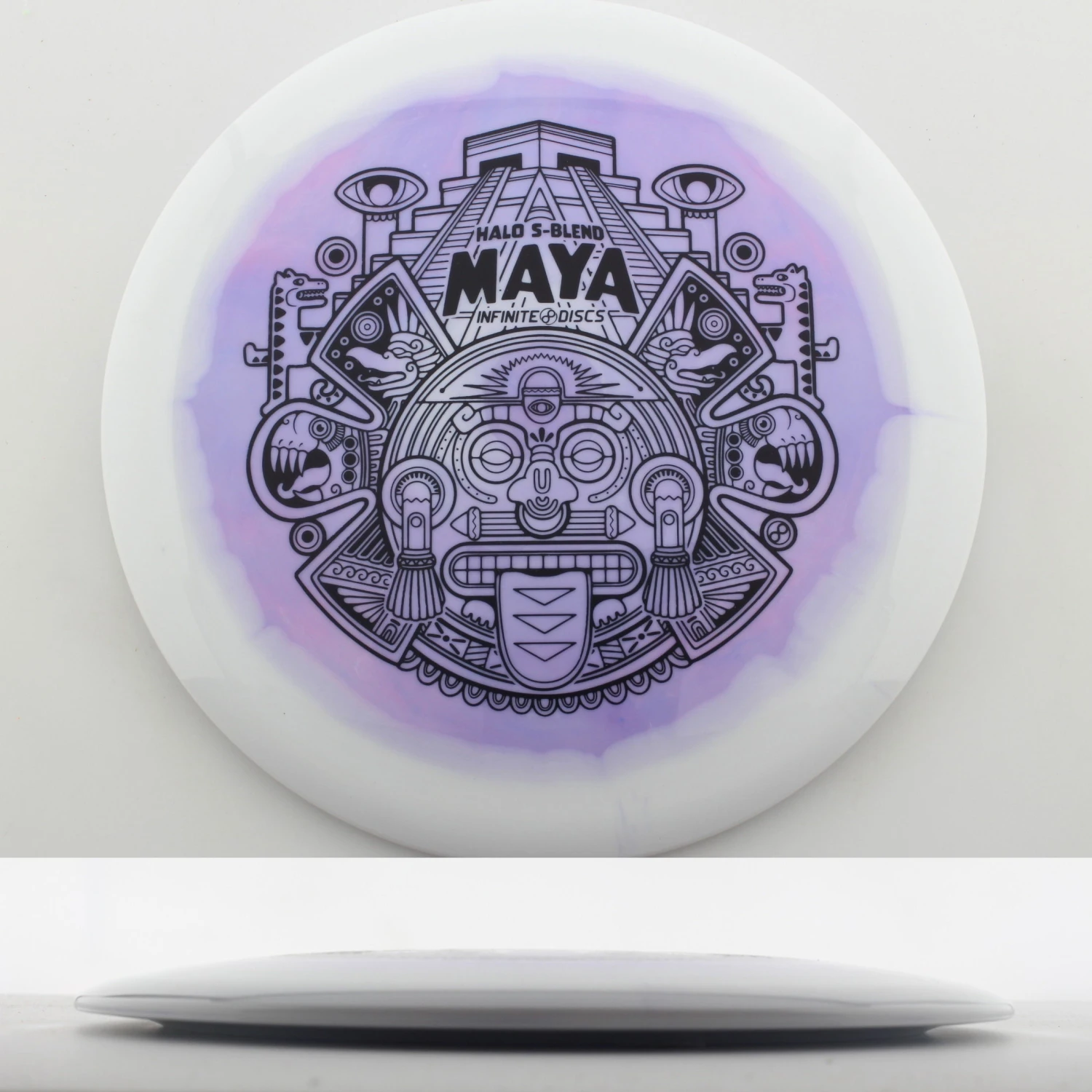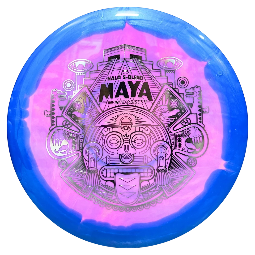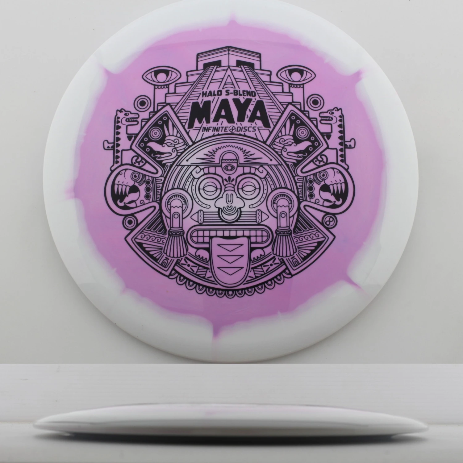 Halo S-Blend Maya – Infinite Discs started with their own molds somewhat recently and they have filled out their lineup well. A great addition to this lineup is the Maya. It is an understable distance driver that really gets going forward. It is a true distance driver that you can trust to turn enough to get all of the distance. It is a great disc for players just starting to throw distance drivers. It doesn’t take a ton of arm speed in order to get the full flight characteristics of the disc. It is also a great disc to learn how to throw rollers. It is an understable glidey driver that has a somewhat shallow rim that is extremely comfortable in the hand. These discs do not have a giant shoulder and have a decently flat feel in the hand. They are not extremely flat but the shallow shoulder gives them a shallower feel. Grab a great feeling Halo S-Blend Maya today!