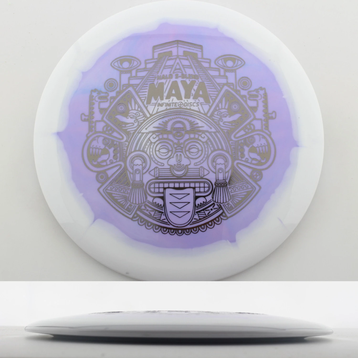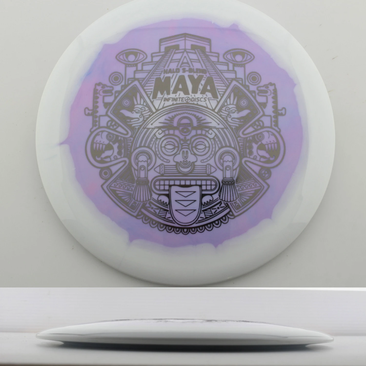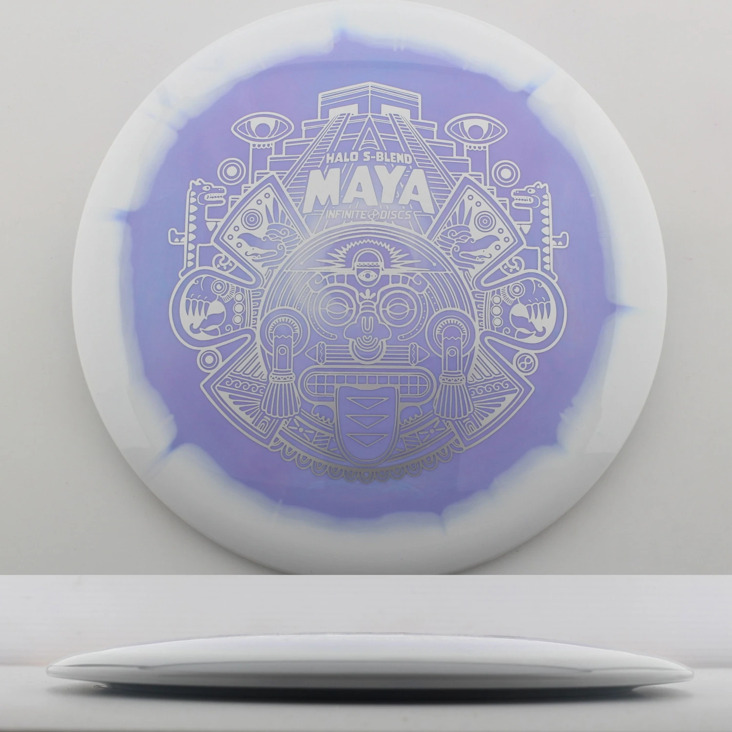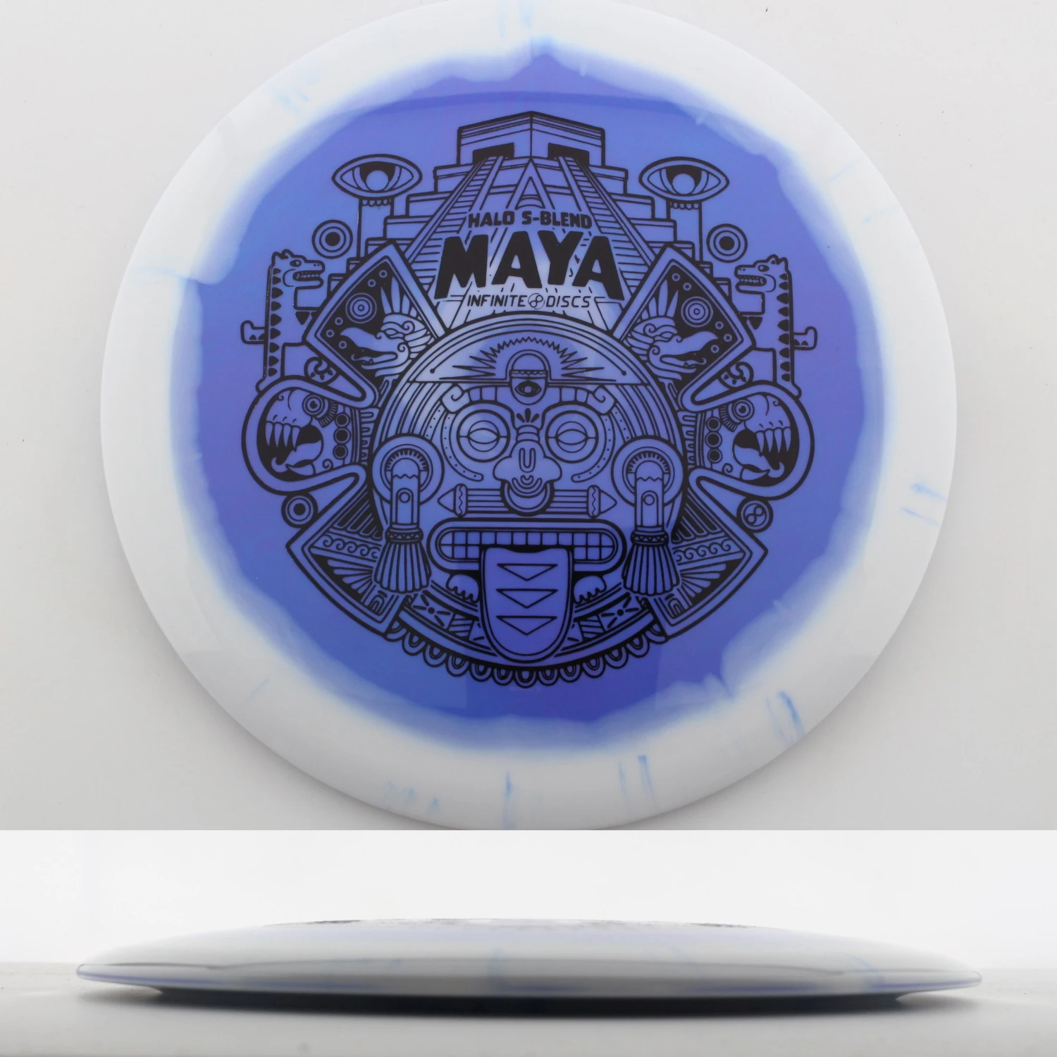 Halo S-Blend Maya – Infinite Discs started with their own molds somewhat recently and they have filled out their lineup well. A great addition to this lineup is the Maya. It is an understable distance driver that really gets going forward. It is a true distance driver that you can trust to turn enough to get all of the distance. It is a great disc for players just starting to throw distance drivers. It doesn’t take a ton of arm speed in order to get the full flight characteristics of the disc. It is also a great disc to learn how to throw rollers. It is an understable glidey driver that has a somewhat shallow rim that is extremely comfortable in the hand. These discs do not have a giant shoulder and have a decently flat feel in the hand. They are not extremely flat but the shallow shoulder gives them a shallower feel. Grab a great feeling Halo S-Blend Maya today!