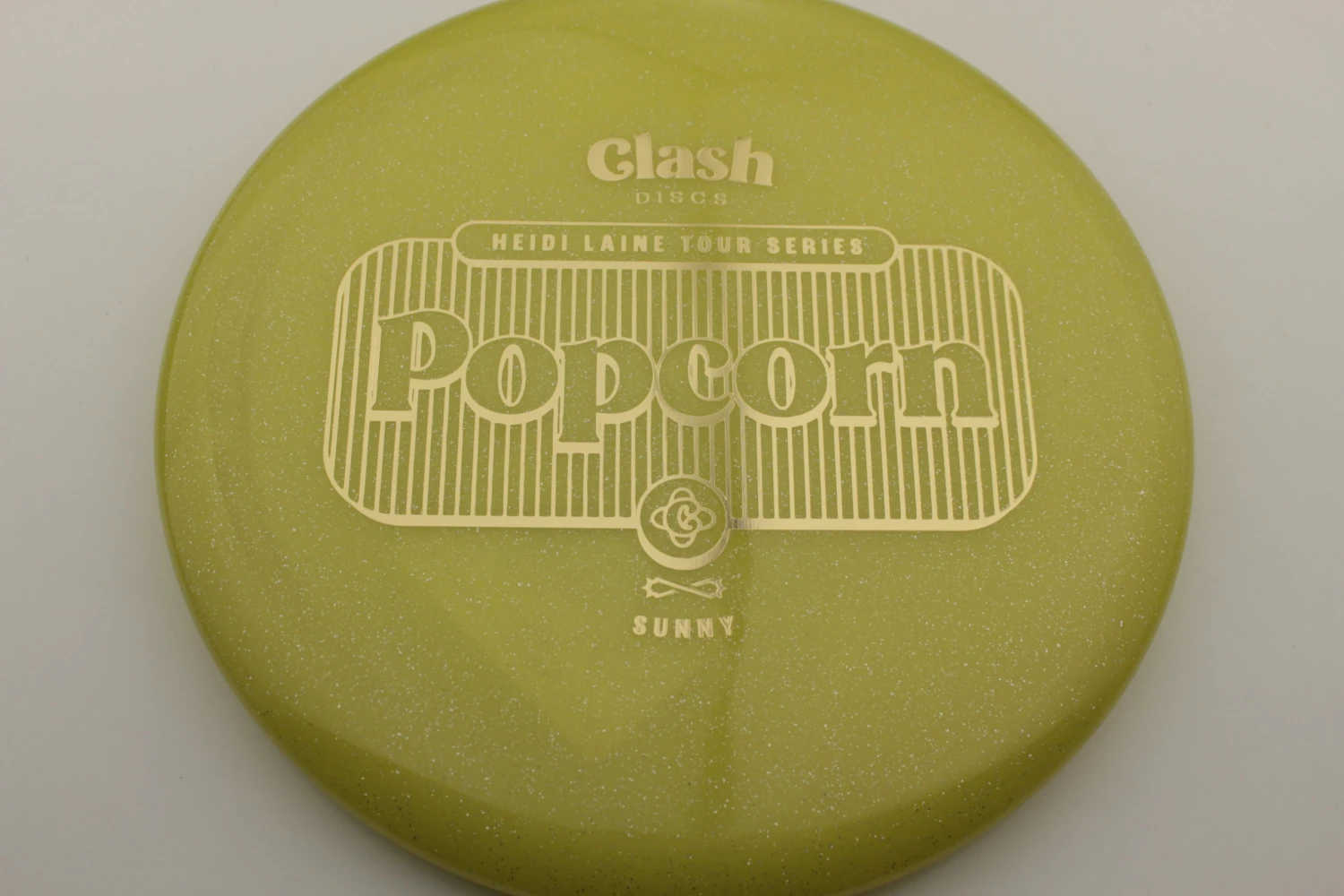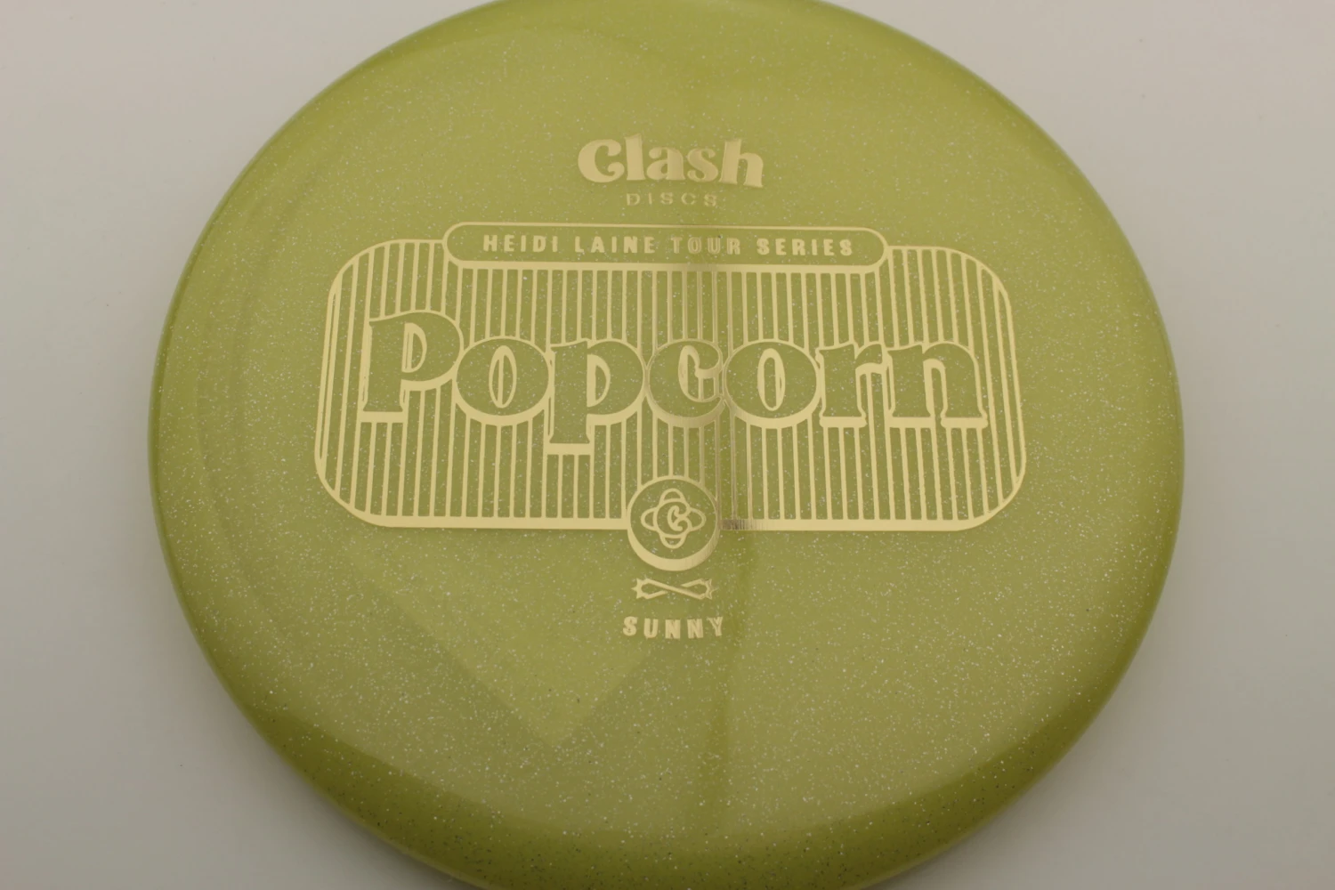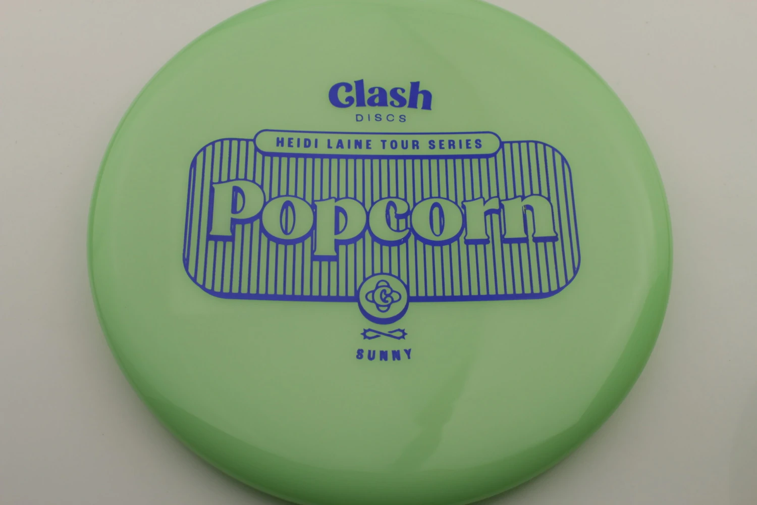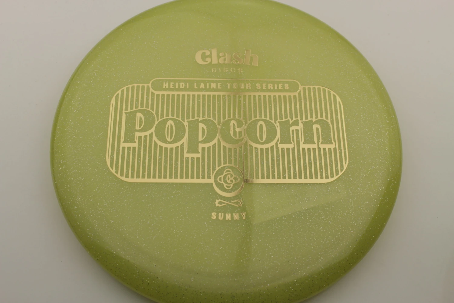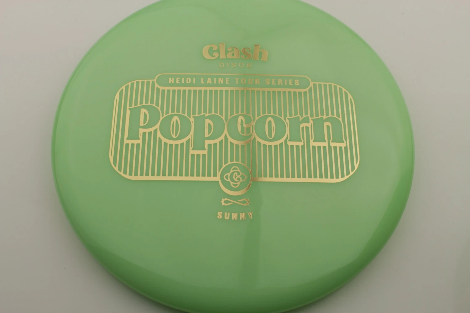 Heidi Lane Sunny Popcorn – One of the coolest disc is the Popcorn, a stable flying putter that is a wider diameter than most putters. It has a very comfortable feel in the hand and a very straight flight. The Steady plastic has a really nice grip in the hand and should have a ton of durability so it keeps its stability after many throws. Try Clash Discs today and grab a Heidi Laine Sunny Popcorn!