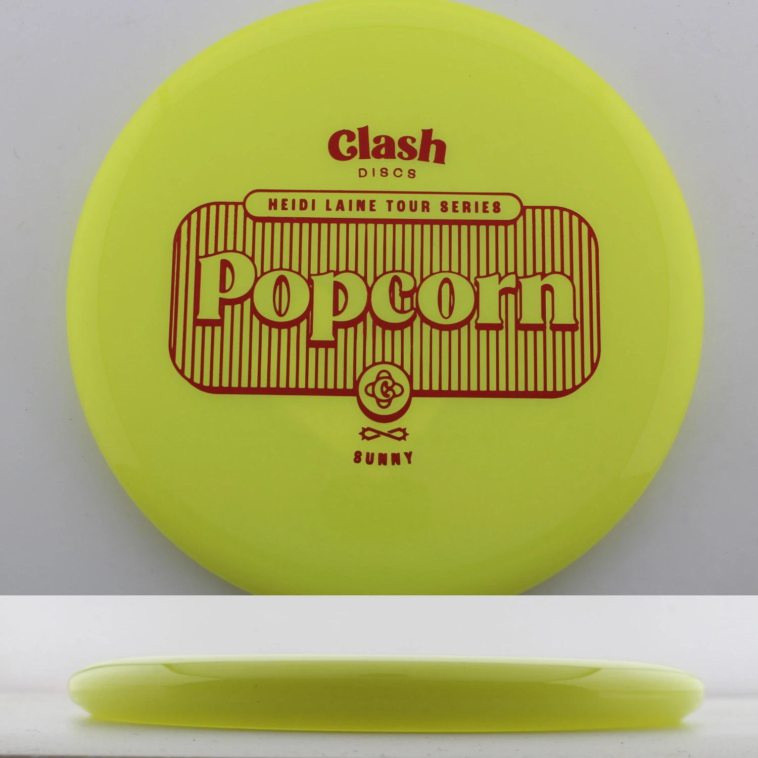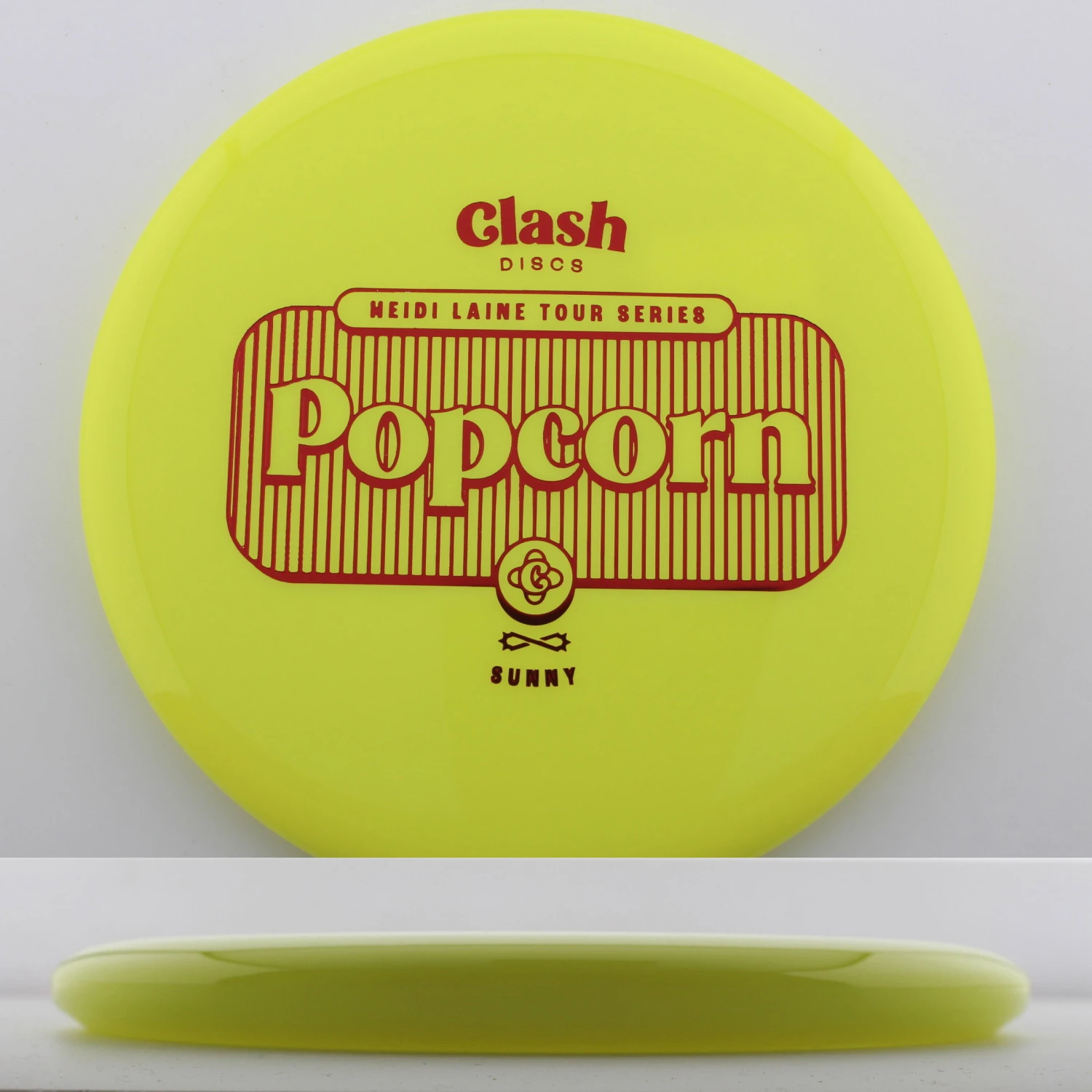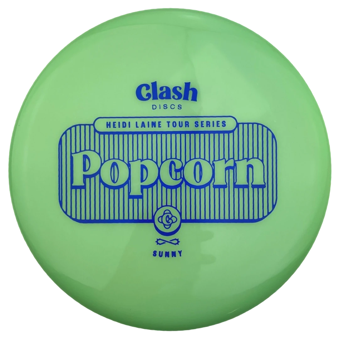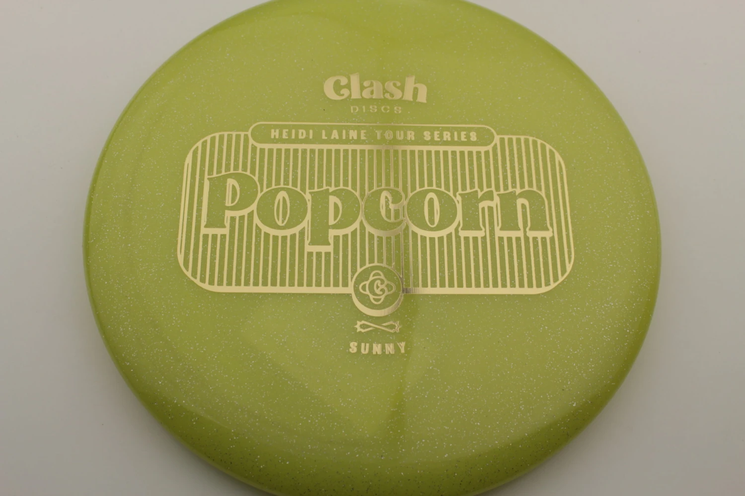 Heidi Lane Sunny Popcorn – One of the coolest disc is the Popcorn, a stable flying putter that is a wider diameter than most putters. It has a very comfortable feel in the hand and a very straight flight. The Steady plastic has a really nice grip in the hand and should have a ton of durability so it keeps its stability after many throws. Try Clash Discs today and grab a Heidi Laine Sunny Popcorn!