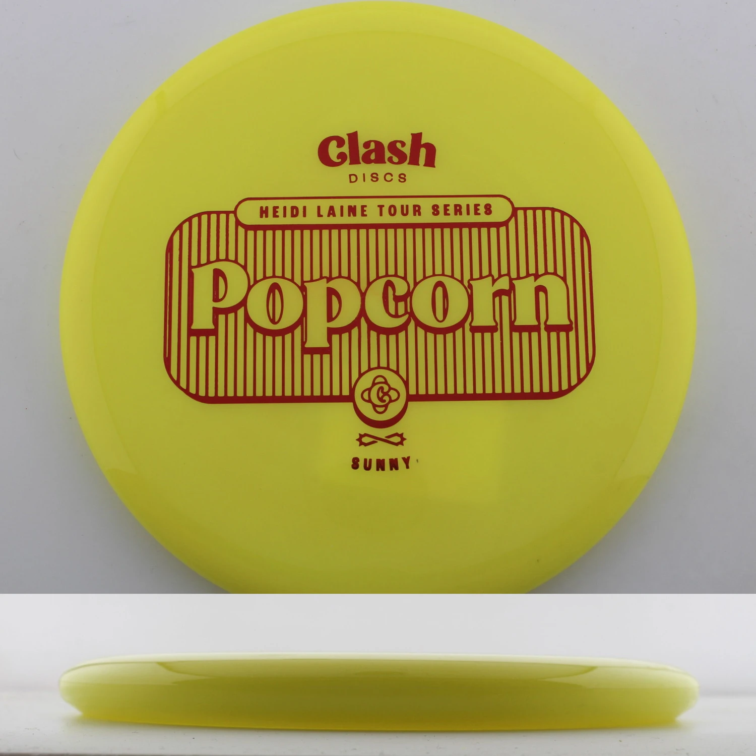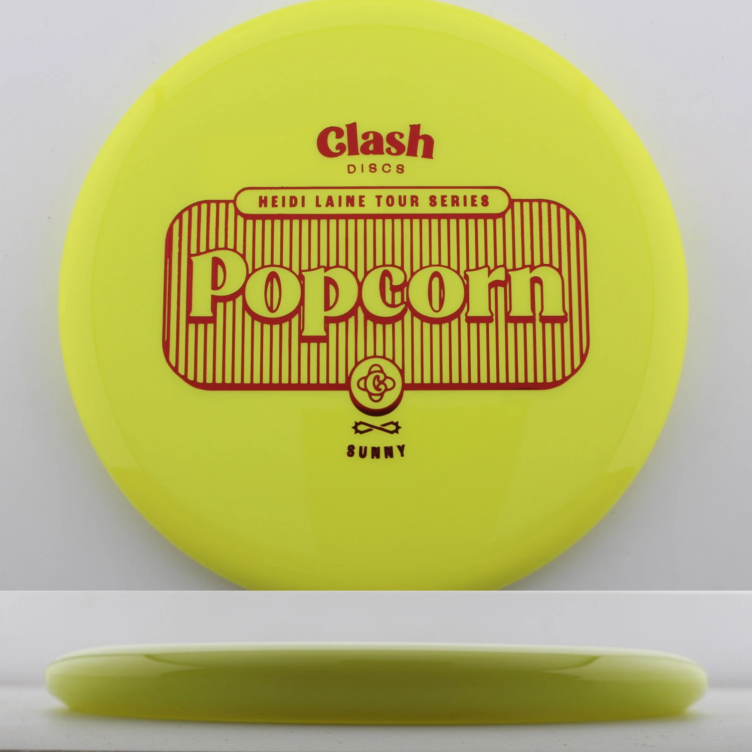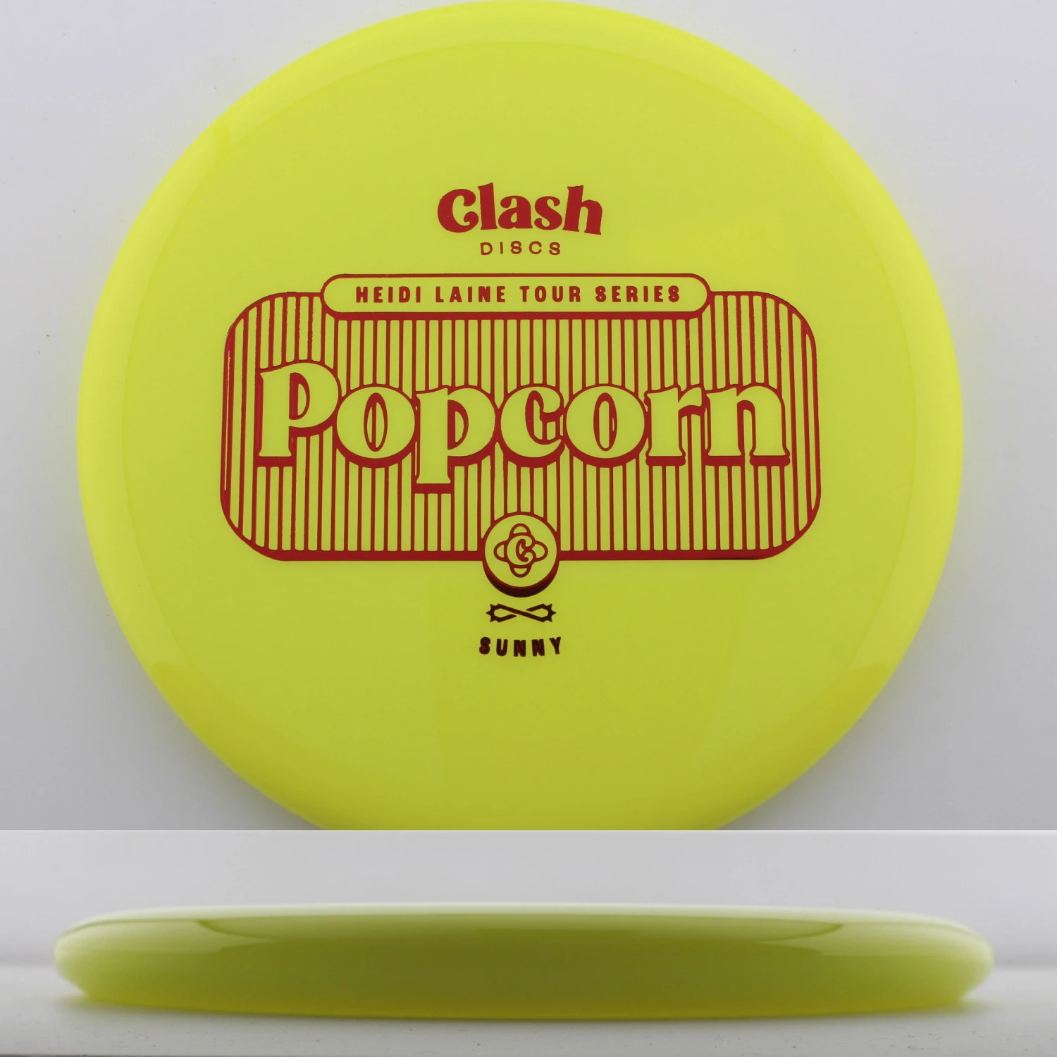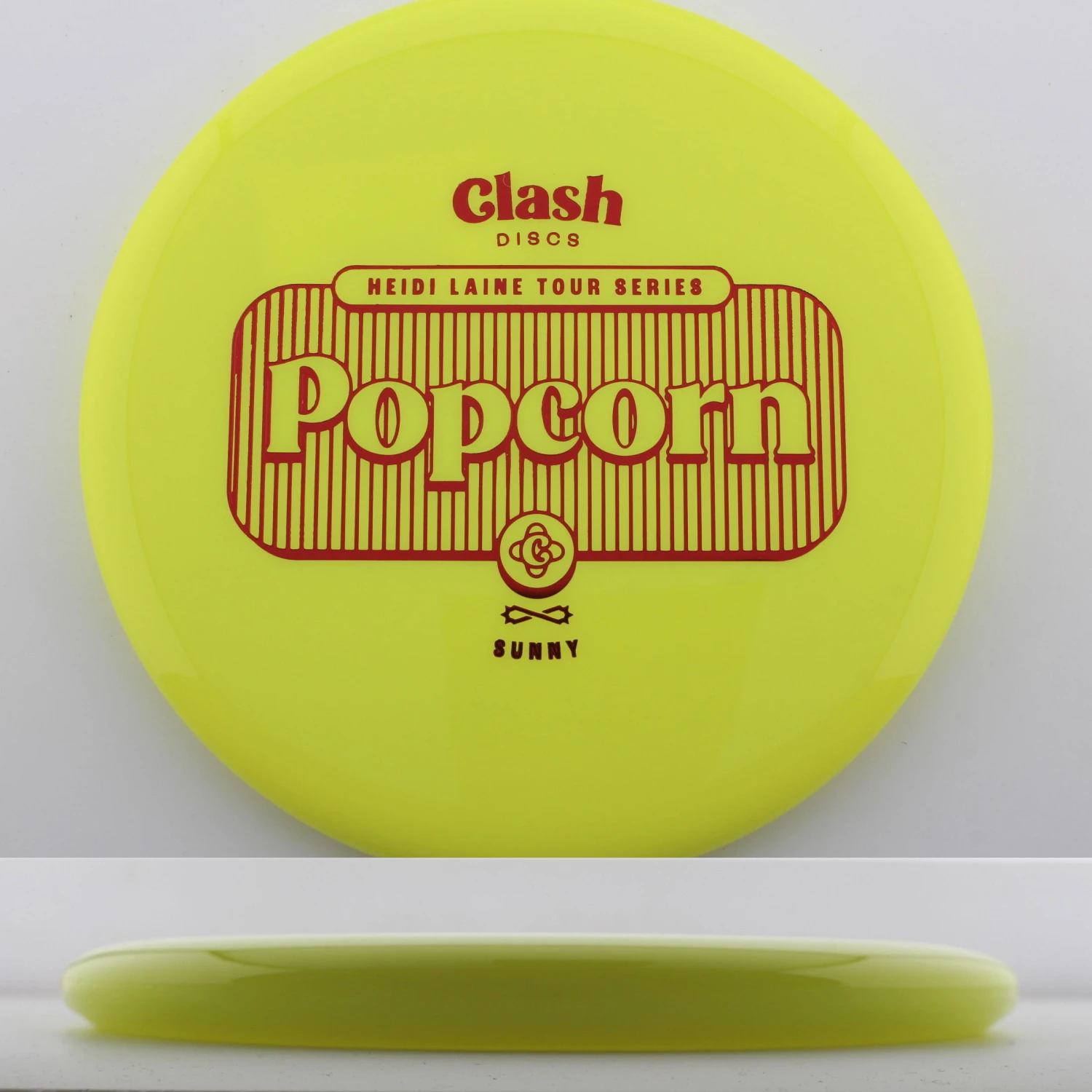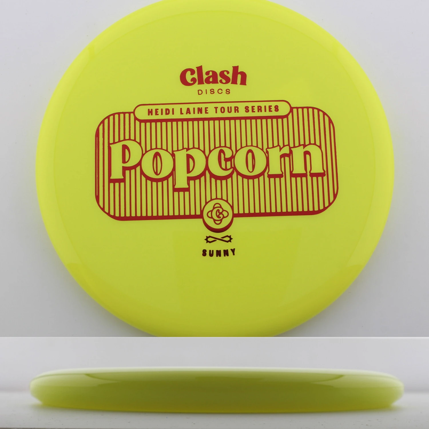 Heidi Lane Sunny Popcorn – One of the coolest disc is the Popcorn, a stable flying putter that is a wider diameter than most putters. It has a very comfortable feel in the hand and a very straight flight. The Steady plastic has a really nice grip in the hand and should have a ton of durability so it keeps its stability after many throws. Try Clash Discs today and grab a Heidi Laine Sunny Popcorn!