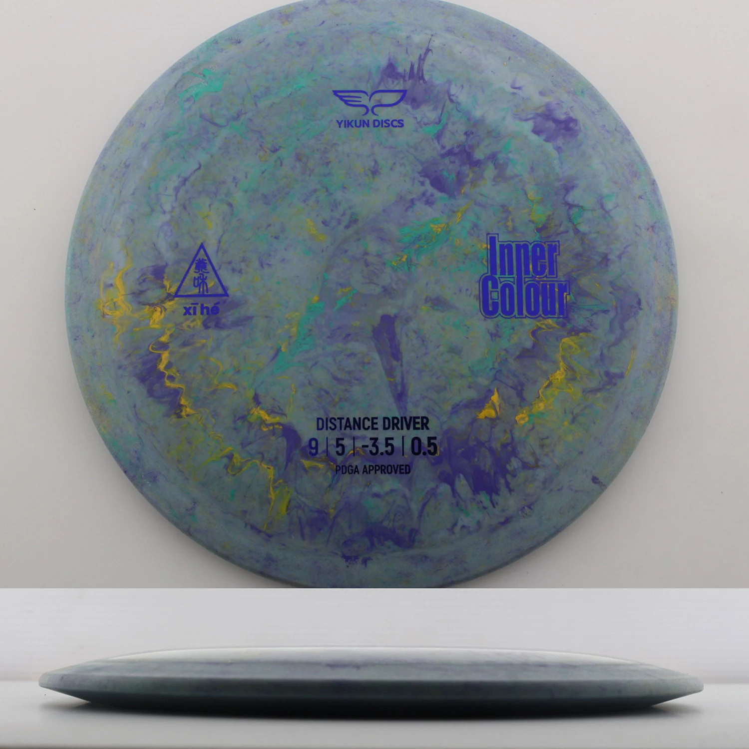 Inner Colour Xi He – Yikun Discs has a ton of molds that are molded with high quality polymers. The Xi He is a great feeling fairway driver that is perfect for those shots that need to turn the entirety of its flight. The Inner Colour plastic has tons of grip and will beat in quickly. Make sure you pick up an Inner Colour Xi He today!