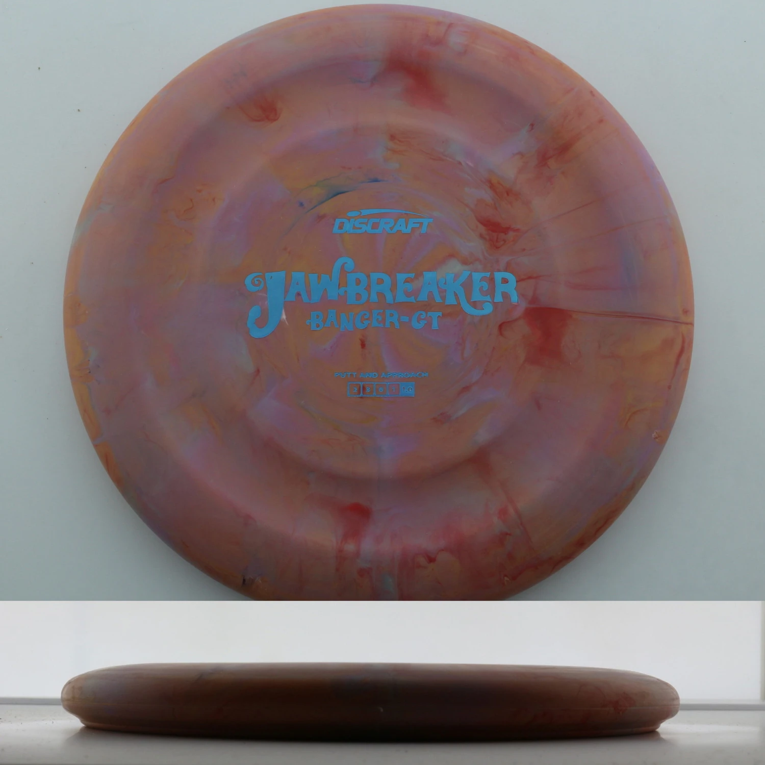Check out what Discraft says about the Banger GT: “This Groove Top™ putter delivers consistency and confidence with every release. It’s overstable enough to handle a headwind, and is also favored by players who putt on a hyzer. Won’t turn over on long approaches, won’t skip on fast greens. Tuck your thumb in and feel the Groove Top™ difference.”