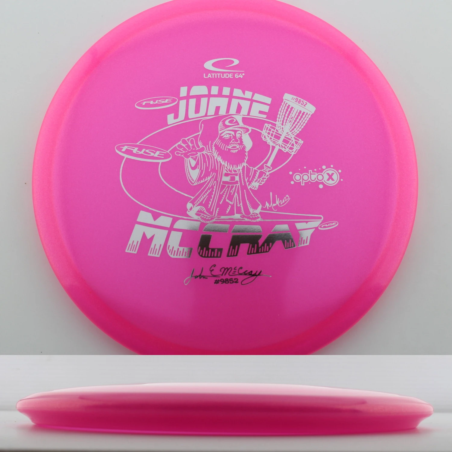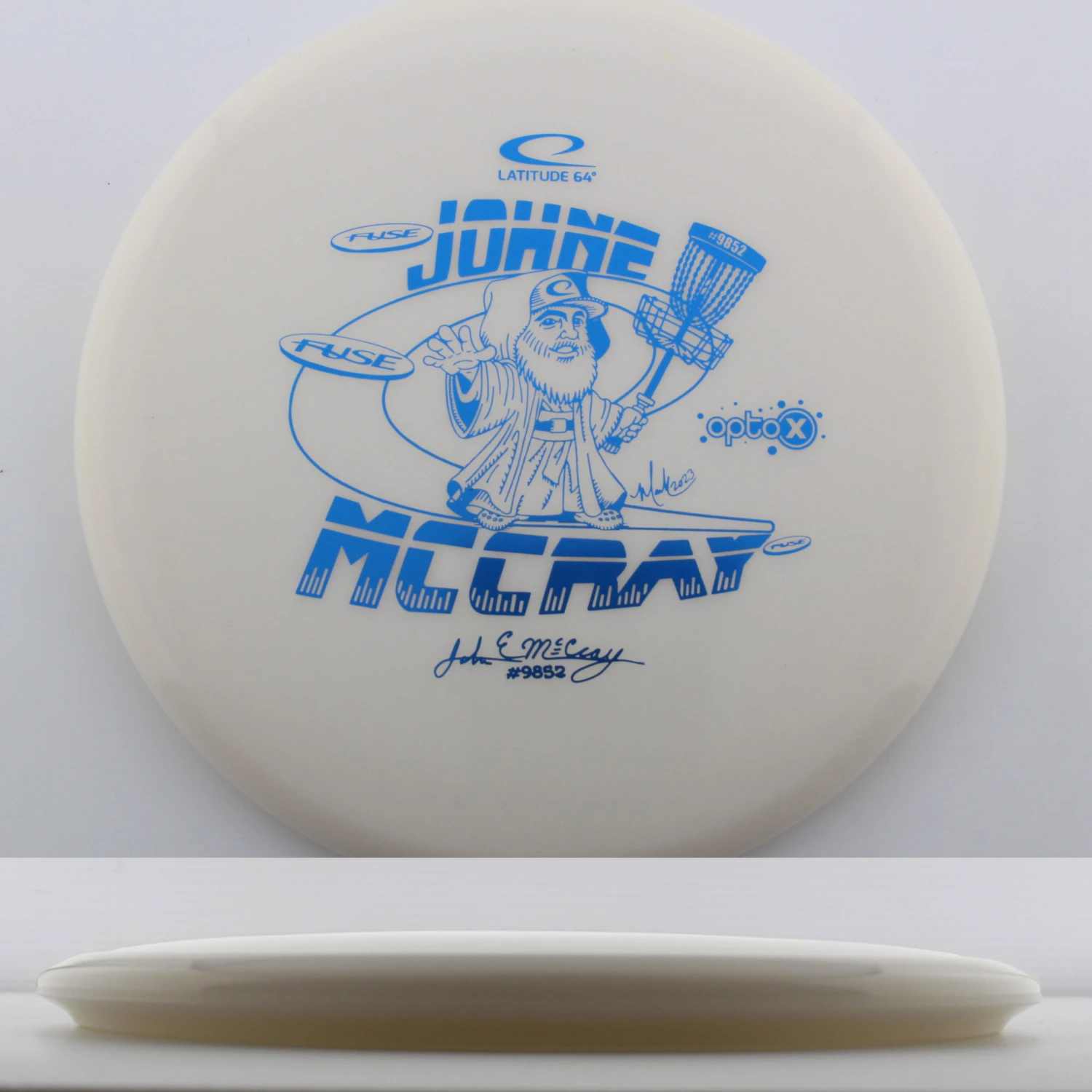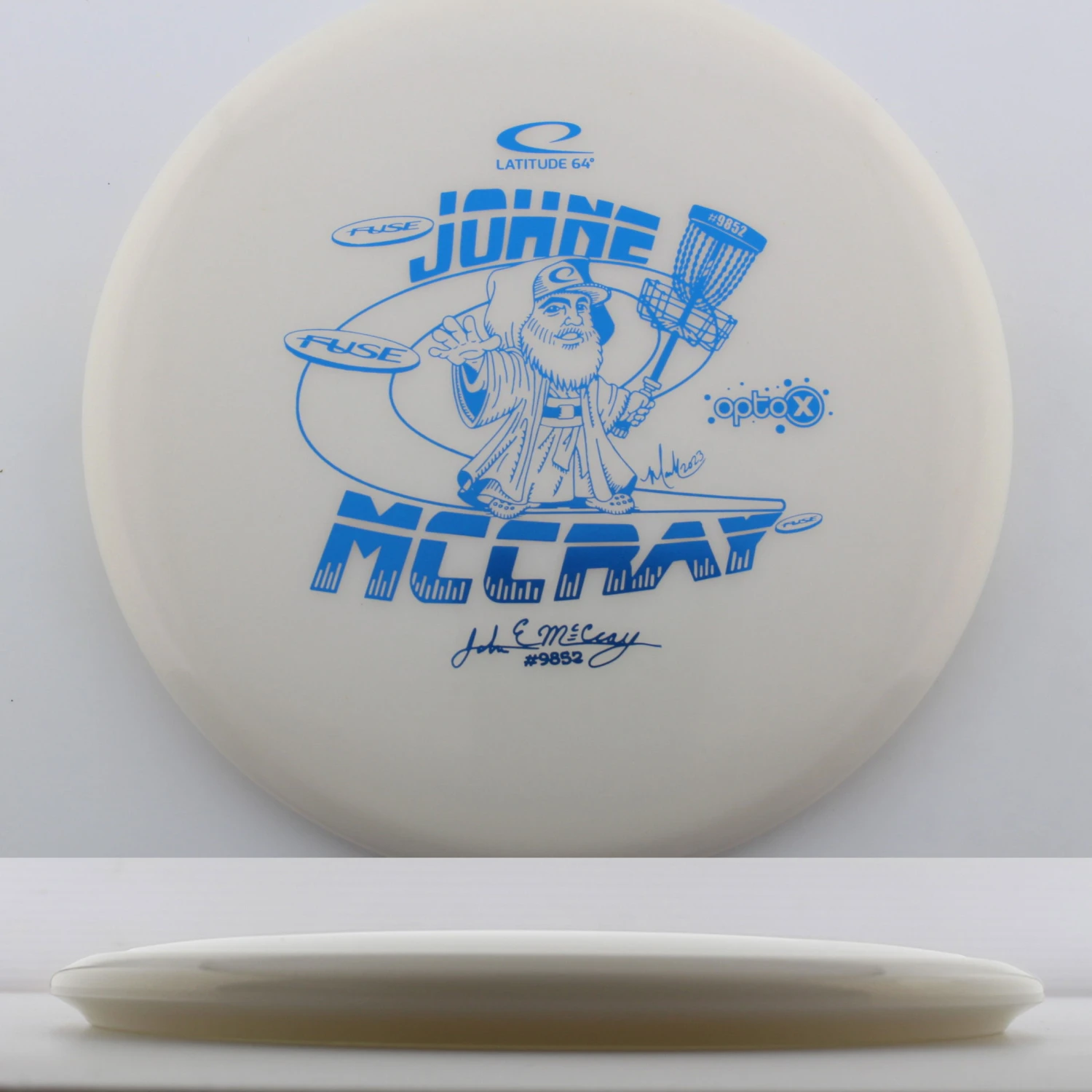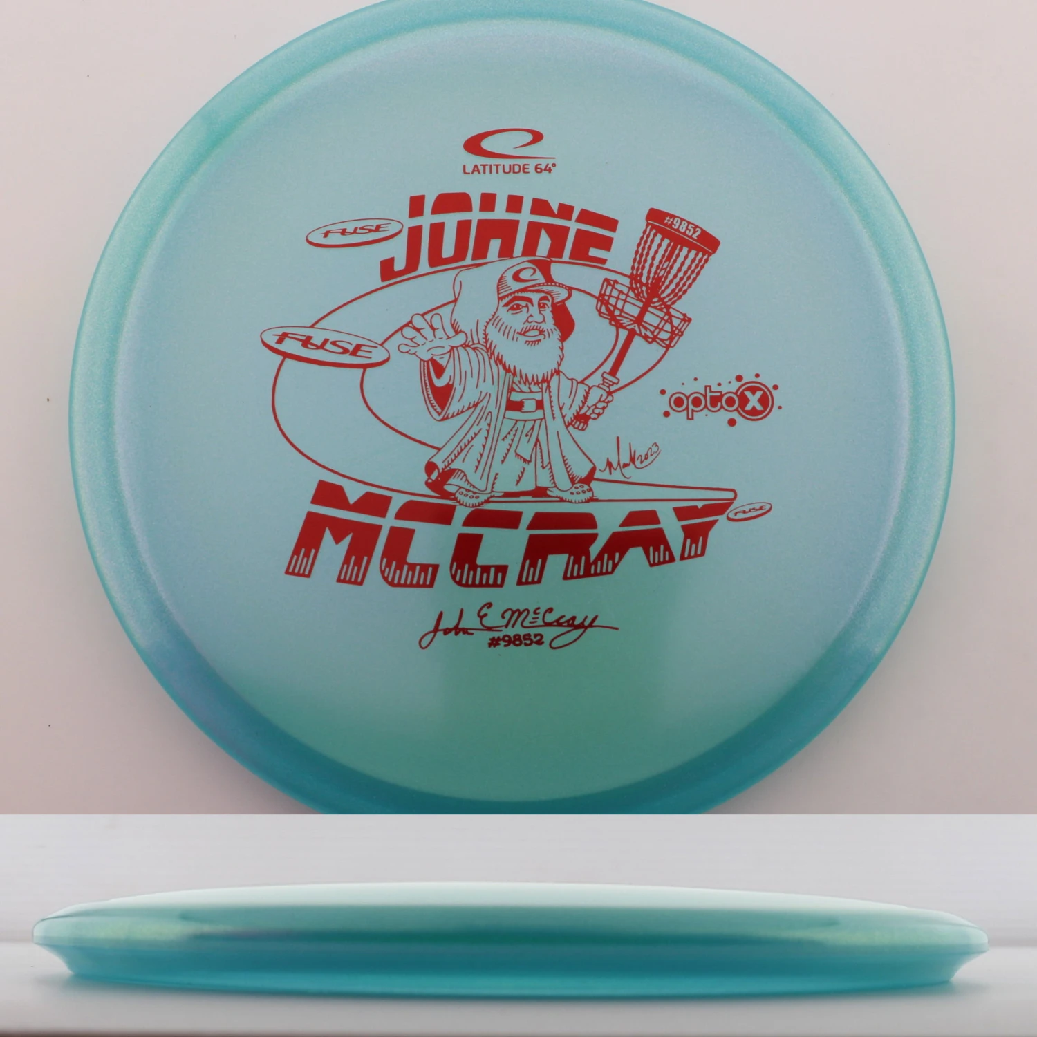 JohnE McCray Opto-X Glimmer Fuse – The Latitude 64 Fuse is a great feeling midrange that has a ton of glide and a relatively straight flight. It is a touch on the understable side but will fly straight at very low speeds and at high speeds it will hold an anhyzer line for days. The Fuse has a comfortable feel in the hand and players like JohnE McCray absolutely love this mold. Perfect for the woods or any other touchy shot you need the disc to have a lot of glide. The JohnE McCray Opto-X Glimmer Fuse is a great feeling run from Latitude 64 that plenty of players will love.