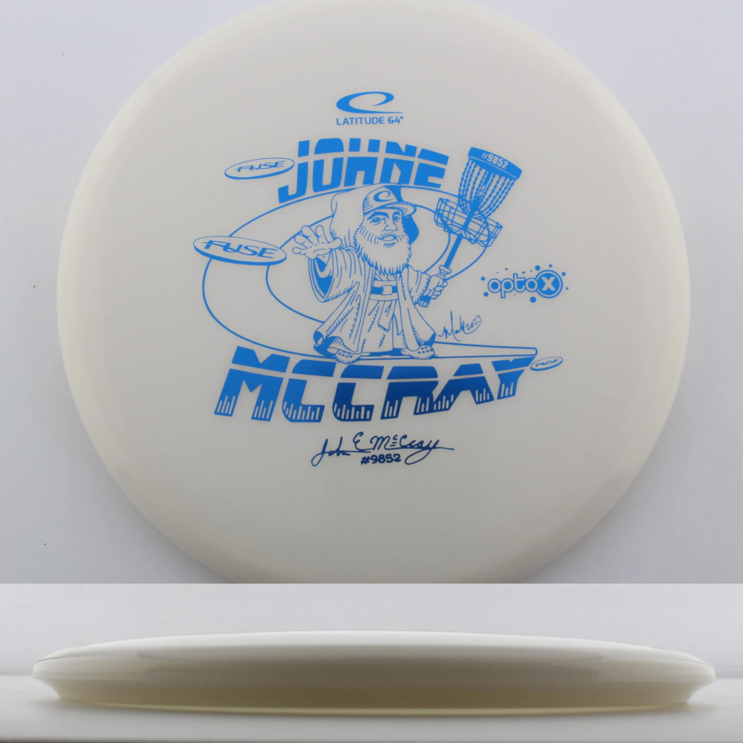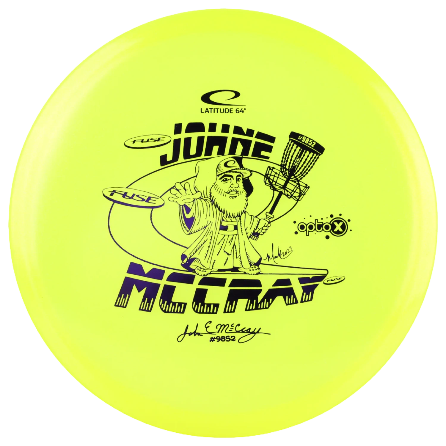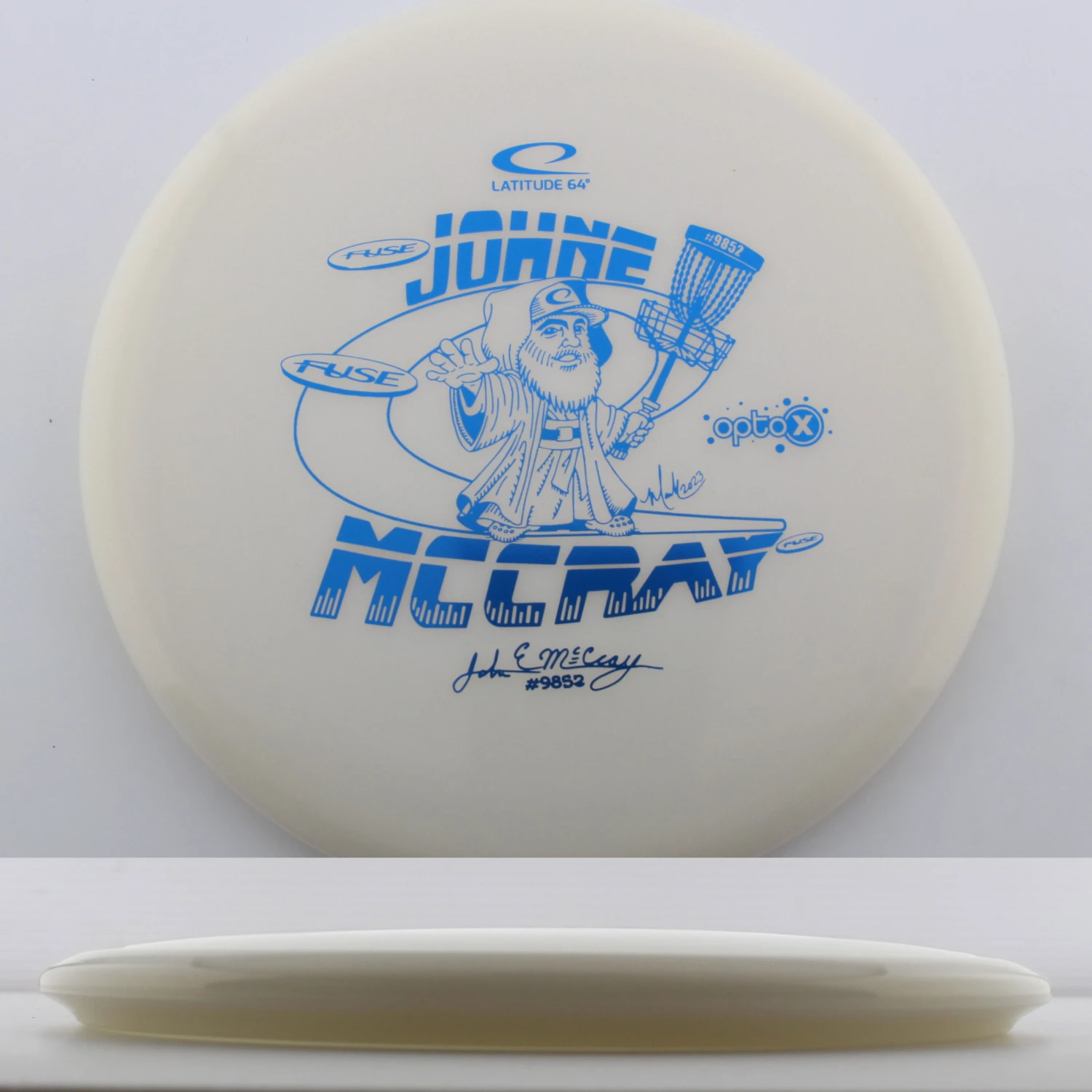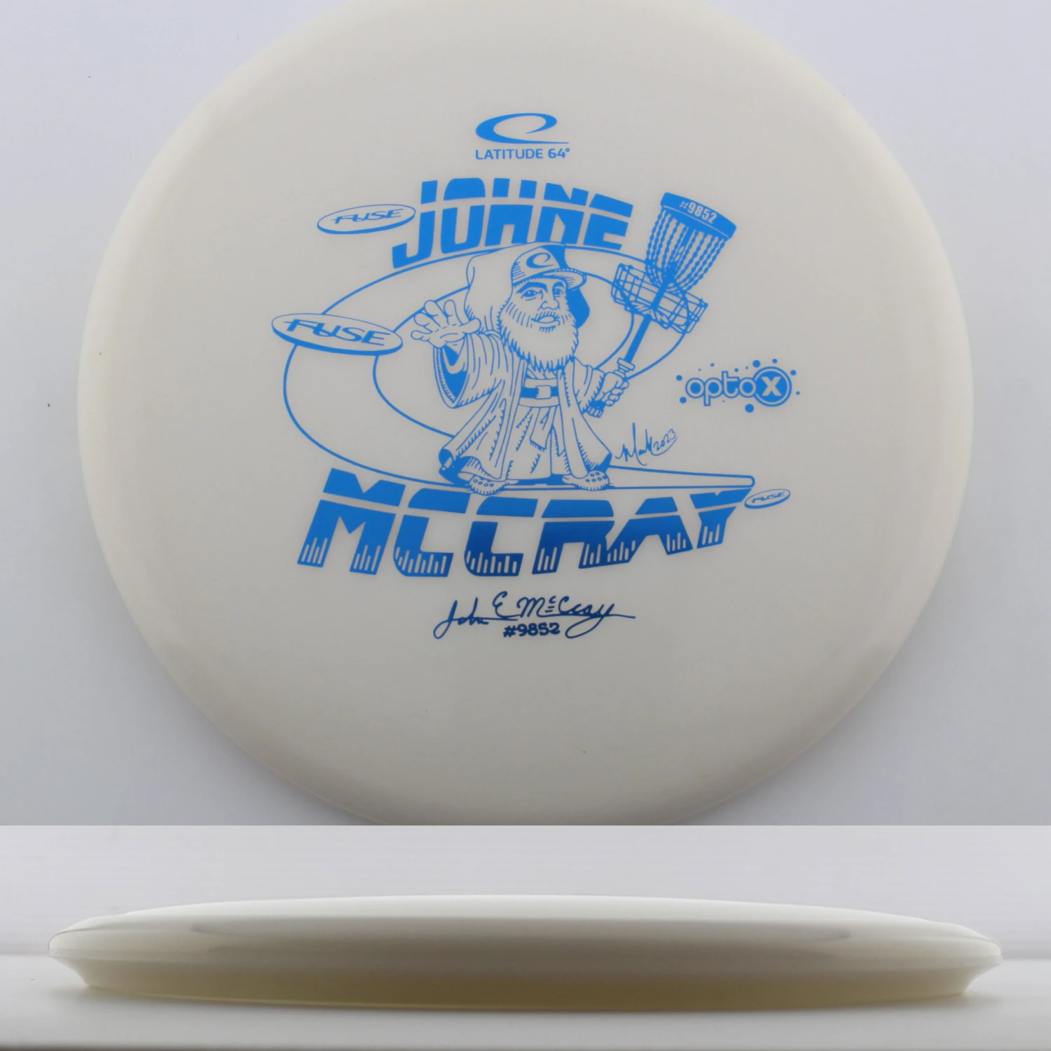 JohnE McCray Opto-X Glimmer Fuse – The Latitude 64 Fuse is a great feeling midrange that has a ton of glide and a relatively straight flight. It is a touch on the understable side but will fly straight at very low speeds and at high speeds it will hold an anhyzer line for days. The Fuse has a comfortable feel in the hand and players like JohnE McCray absolutely love this mold. Perfect for the woods or any other touchy shot you need the disc to have a lot of glide. The JohnE McCray Opto-X Glimmer Fuse is a great feeling run from Latitude 64 that plenty of players will love.