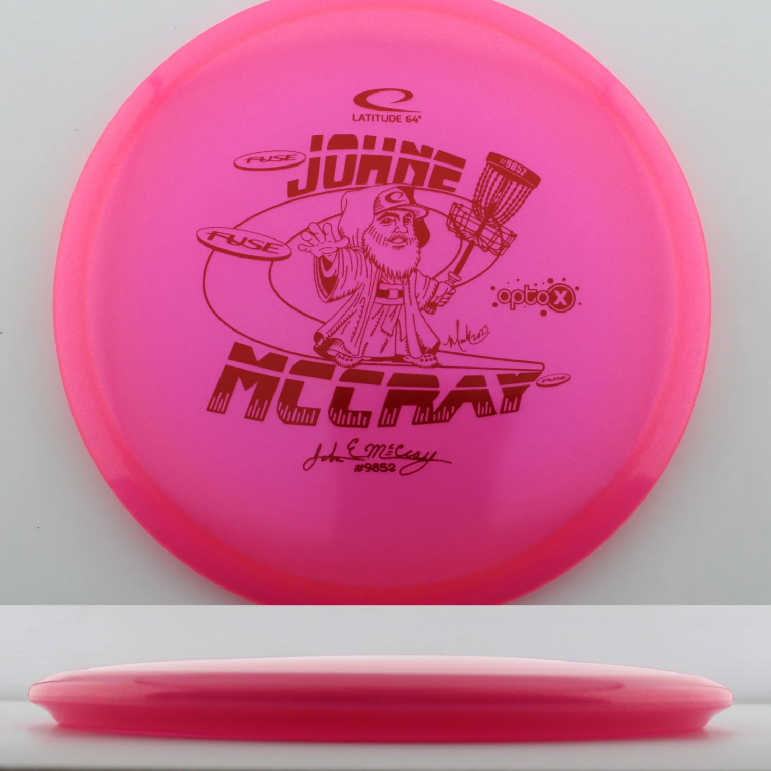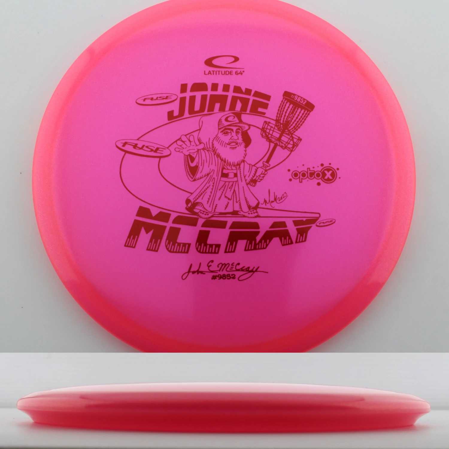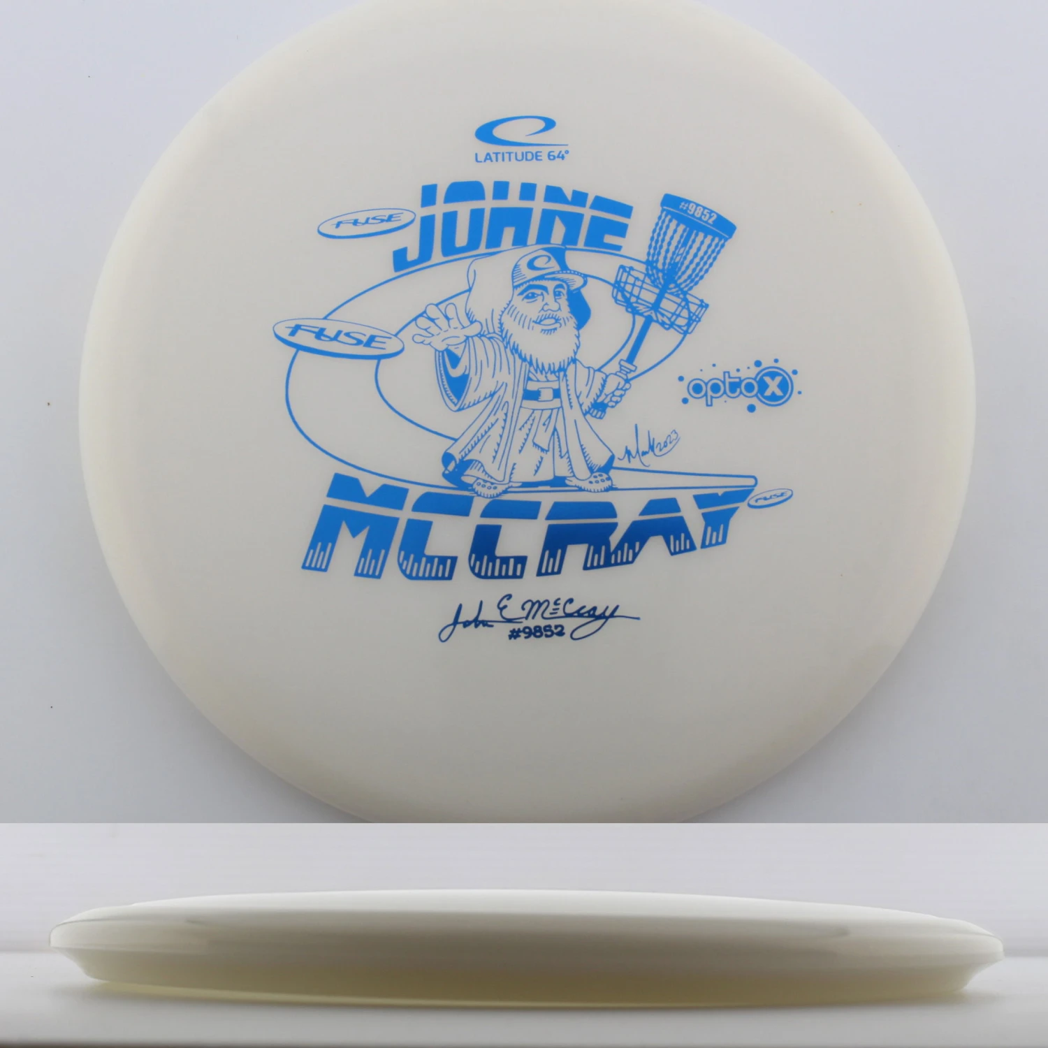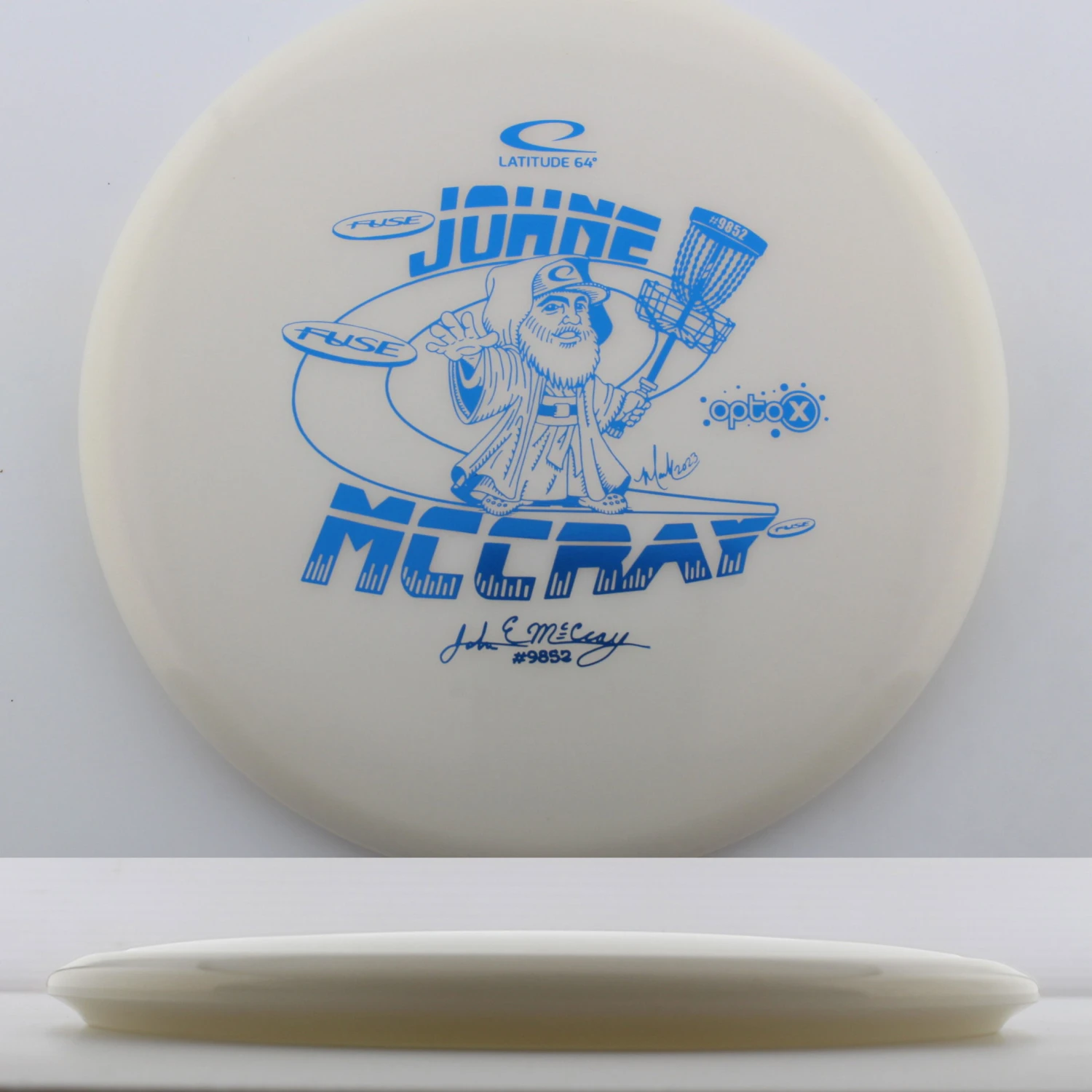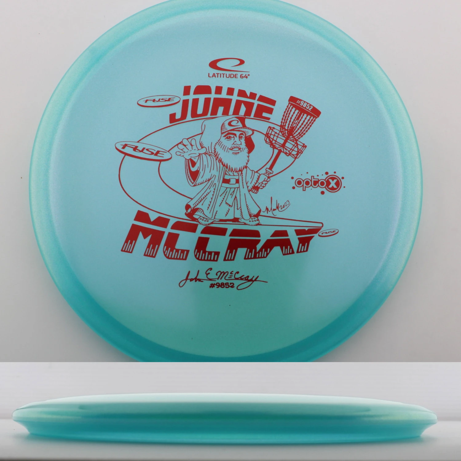 JohnE McCray Opto-X Glimmer Fuse – The Latitude 64 Fuse is a great feeling midrange that has a ton of glide and a relatively straight flight. It is a touch on the understable side but will fly straight at very low speeds and at high speeds it will hold an anhyzer line for days. The Fuse has a comfortable feel in the hand and players like JohnE McCray absolutely love this mold. Perfect for the woods or any other touchy shot you need the disc to have a lot of glide. The JohnE McCray Opto-X Glimmer Fuse is a great feeling run from Latitude 64 that plenty of players will love.
