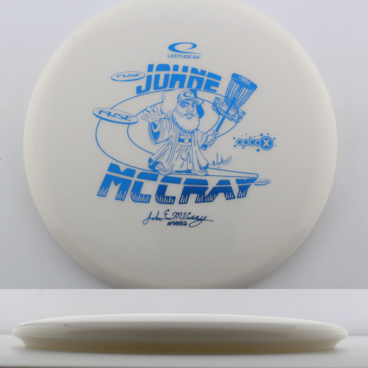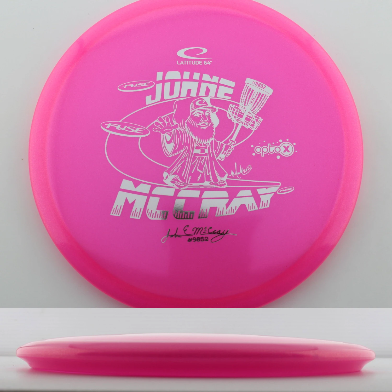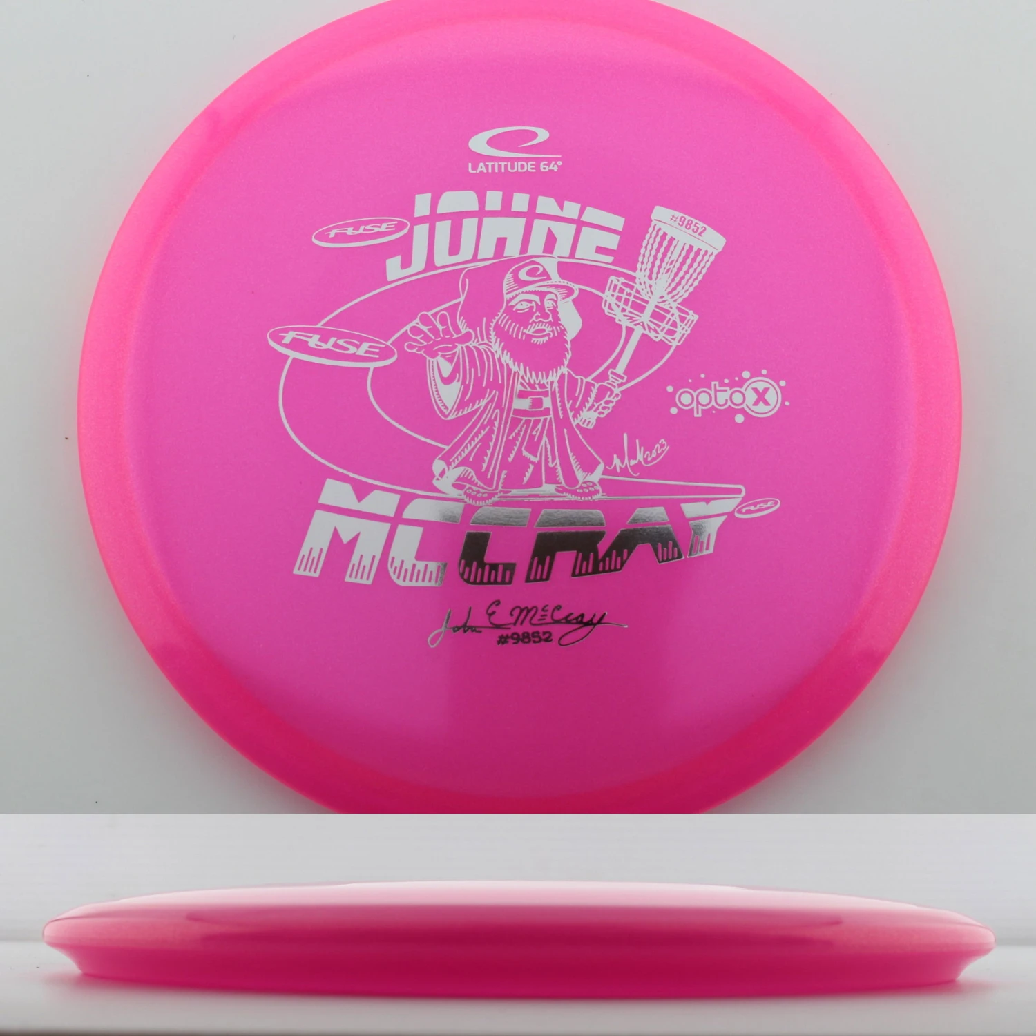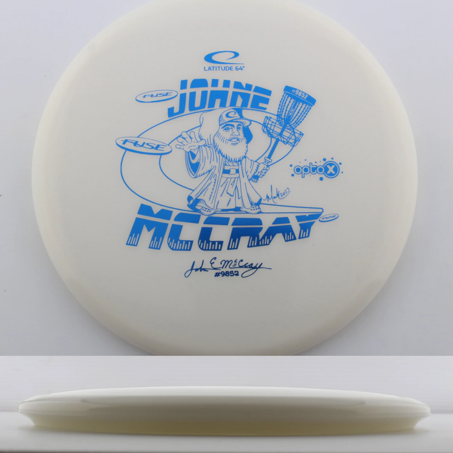 JohnE McCray Opto-X Glimmer Fuse – The Latitude 64 Fuse is a great feeling midrange that has a ton of glide and a relatively straight flight. It is a touch on the understable side but will fly straight at very low speeds and at high speeds it will hold an anhyzer line for days. The Fuse has a comfortable feel in the hand and players like JohnE McCray absolutely love this mold. Perfect for the woods or any other touchy shot you need the disc to have a lot of glide. The JohnE McCray Opto-X Glimmer Fuse is a great feeling run from Latitude 64 that plenty of players will love.