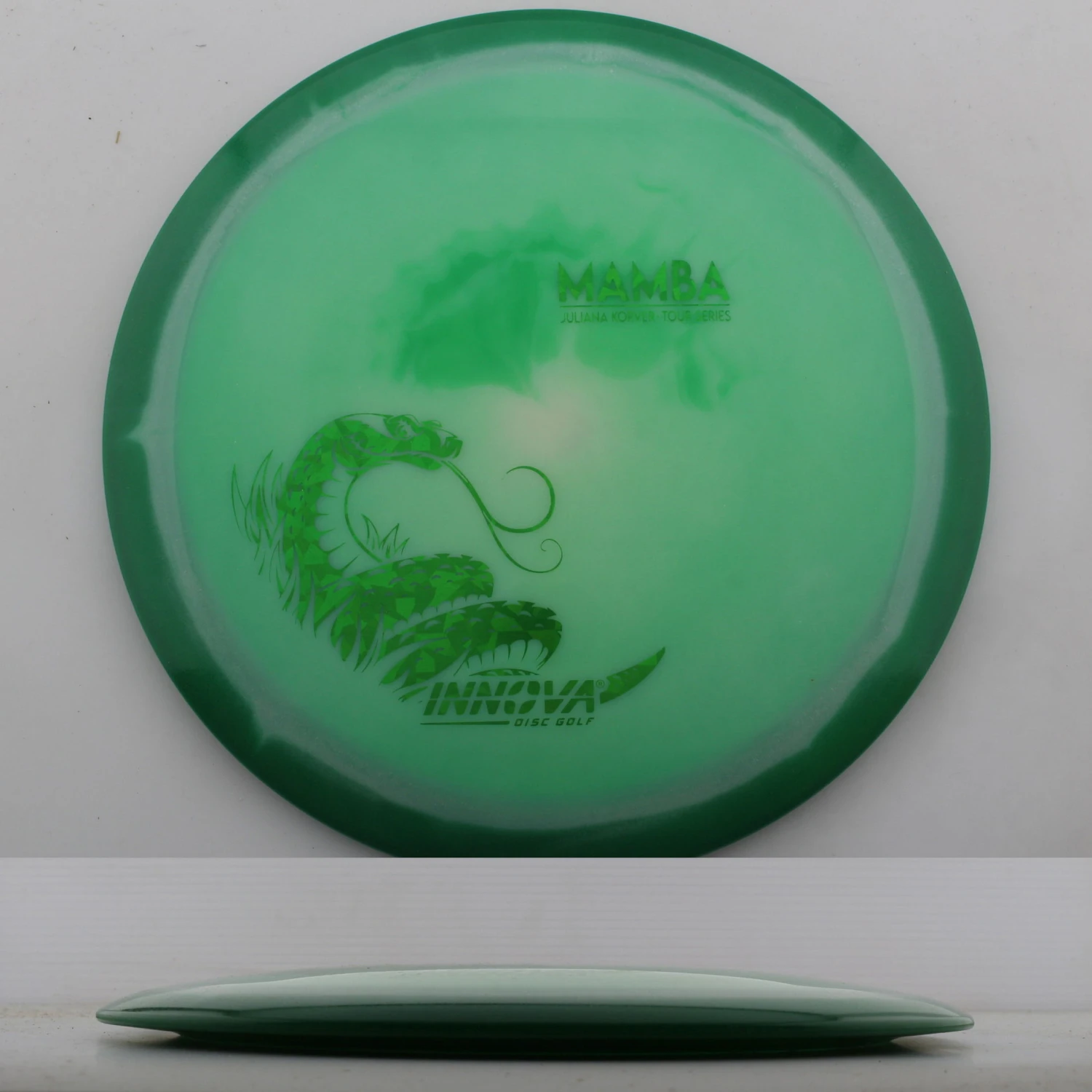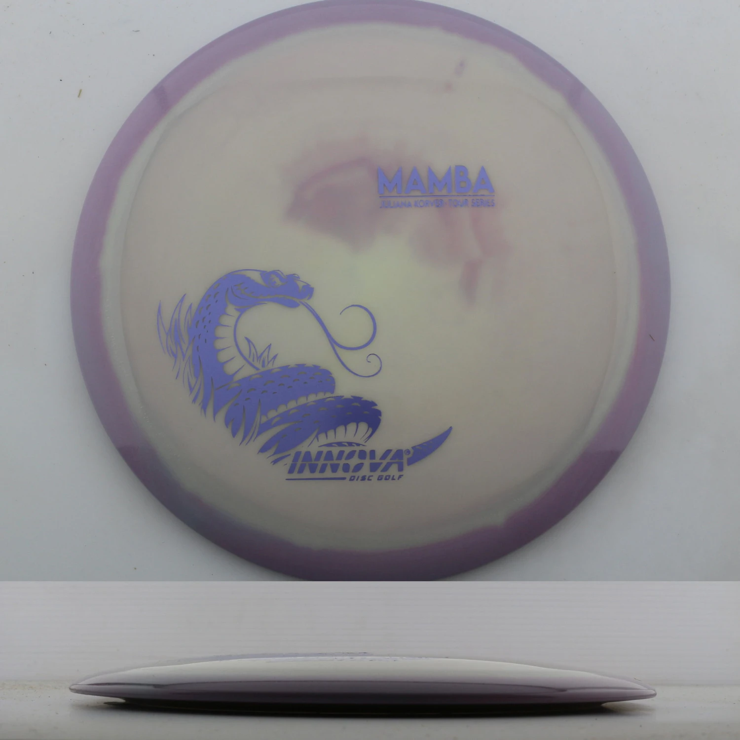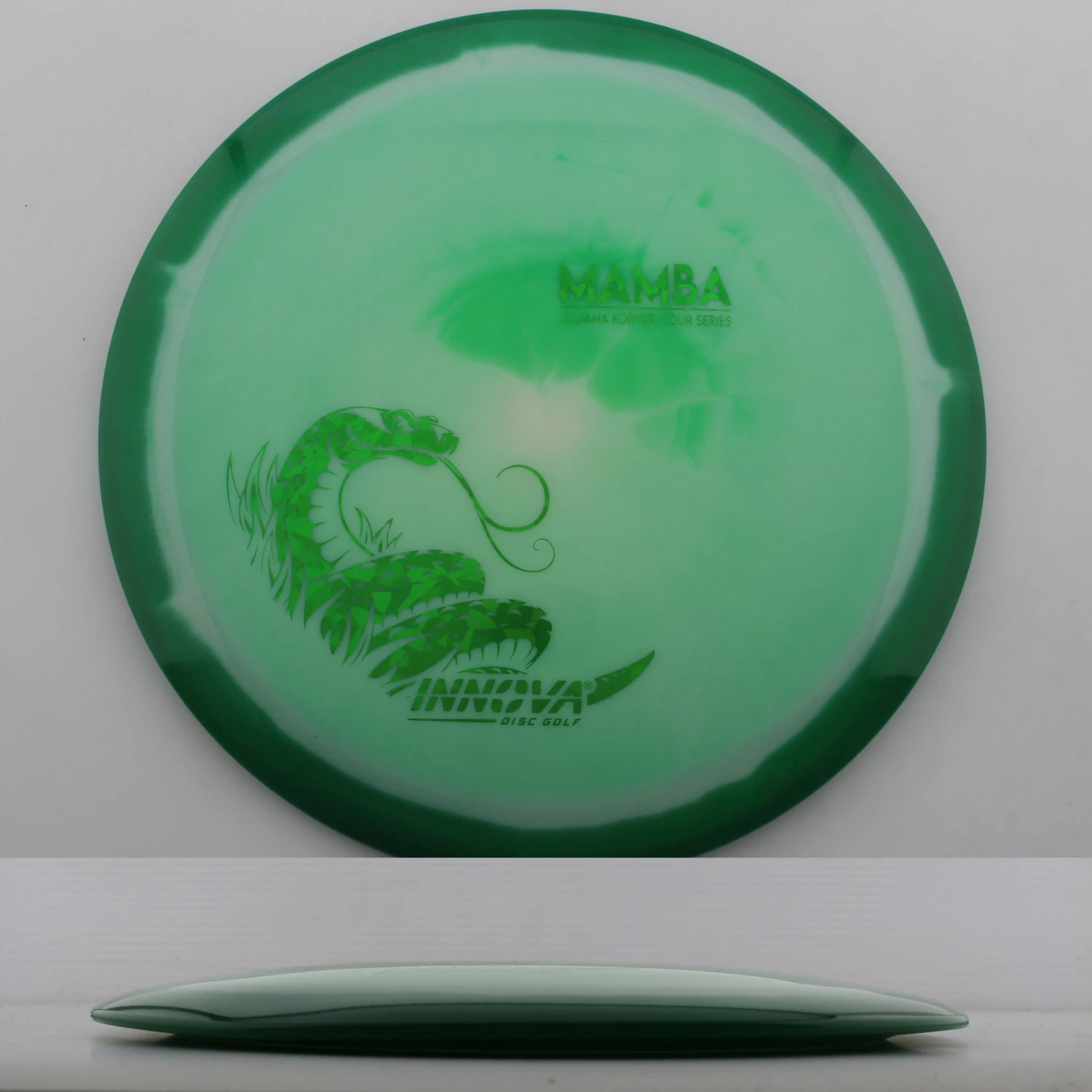 Innova says this about the mold: “Five-time PDGA World Champion Juliana Korver has spent decades mastering the art of disc flight. With her precision backhand drives and fluid, effortless power, she embodies grace and mastery on the course. When she needs a maximum distance disc that complements her technical skill and finesse, she reaches for her Tour Series Halo Star Mamba…Whether you’re looking for a driver that delivers effortless turn, jaw-dropping glide, or an out-of-the-box roller for more experienced arms, the key to unlocking surprising distance while maintaining smooth, controlled power is the 2025 Juliana Korver Tour Series Proto Glow Halo Star Mamba.”
