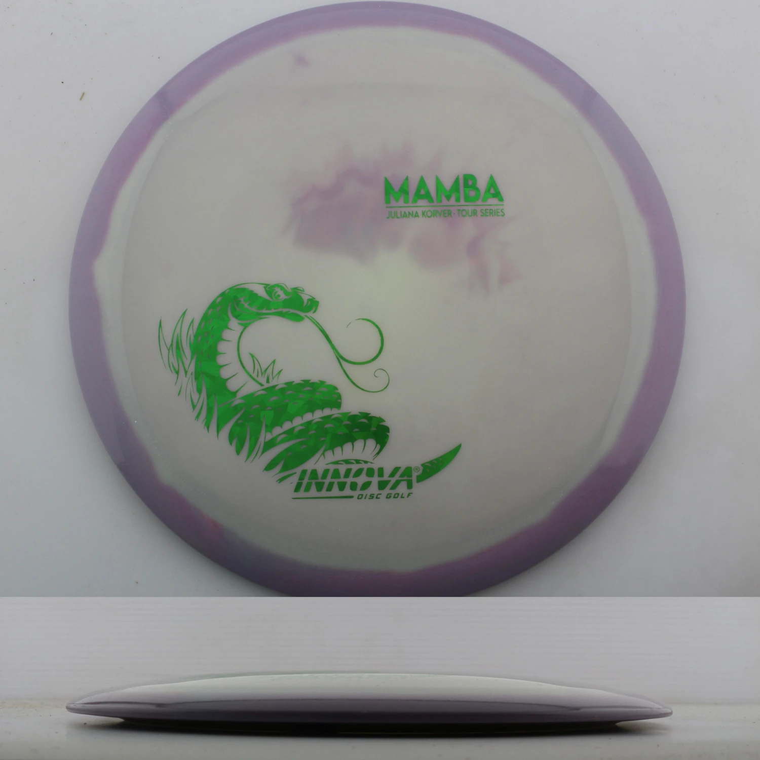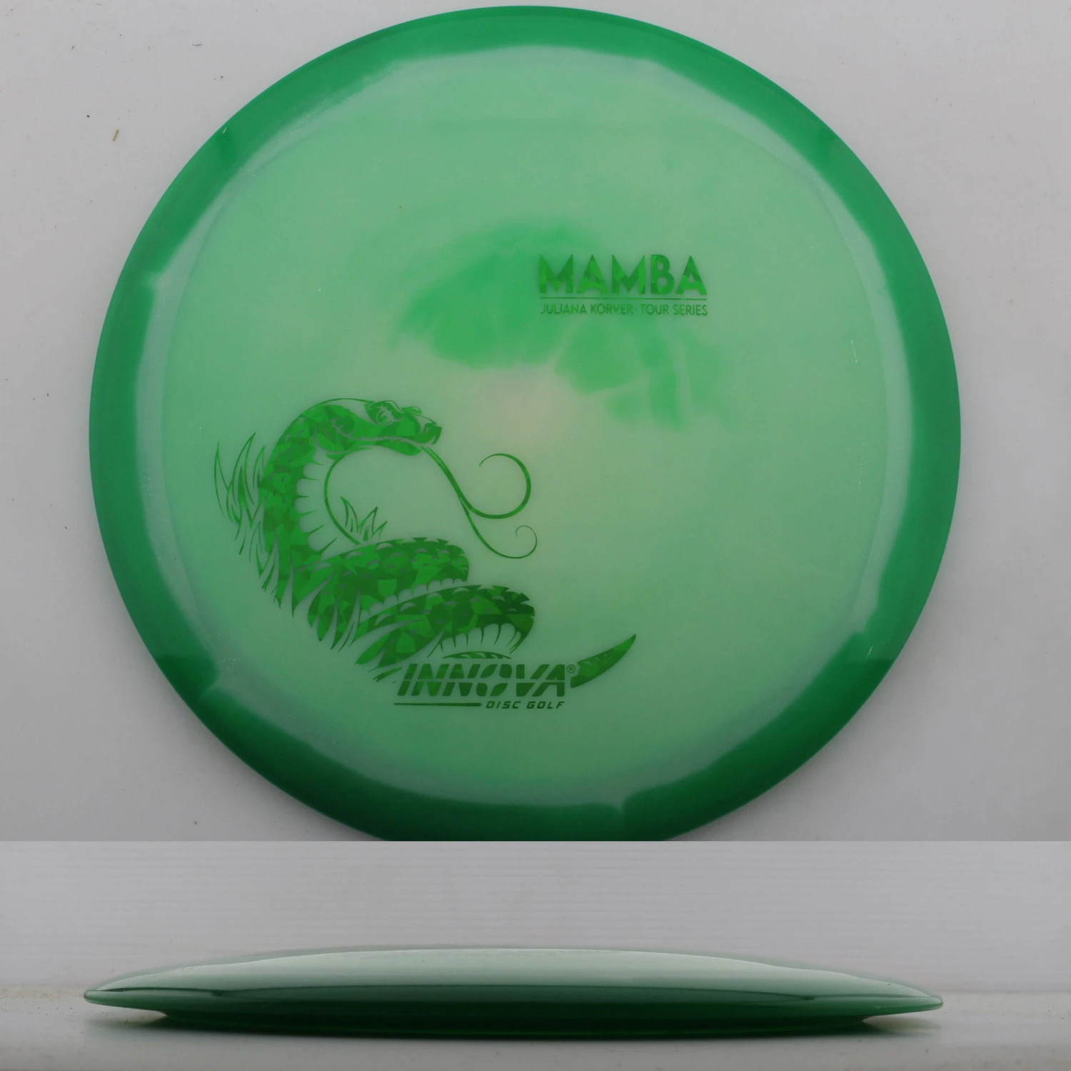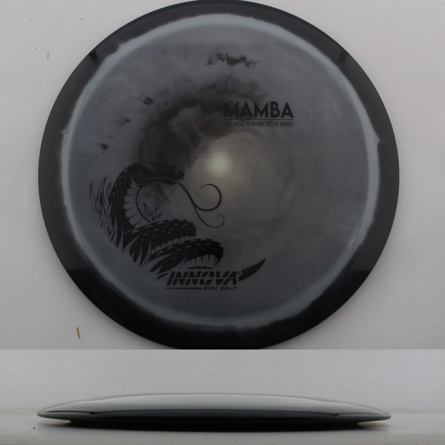 Innova says this about the mold: “Five-time PDGA World Champion Juliana Korver has spent decades mastering the art of disc flight. With her precision backhand drives and fluid, effortless power, she embodies grace and mastery on the course. When she needs a maximum distance disc that complements her technical skill and finesse, she reaches for her Tour Series Halo Star Mamba…Whether you’re looking for a driver that delivers effortless turn, jaw-dropping glide, or an out-of-the-box roller for more experienced arms, the key to unlocking surprising distance while maintaining smooth, controlled power is the 2025 Juliana Korver Tour Series Proto Glow Halo Star Mamba.”