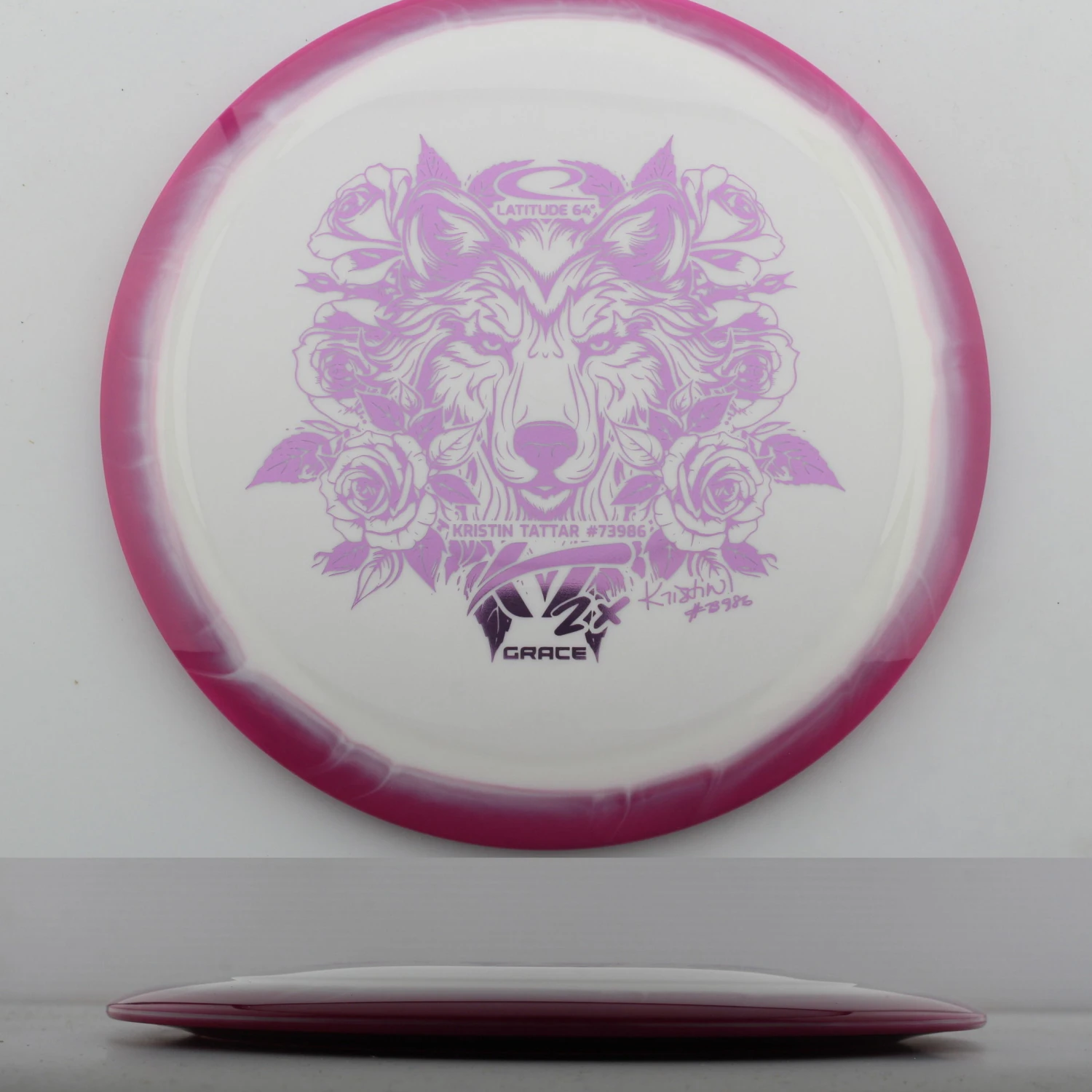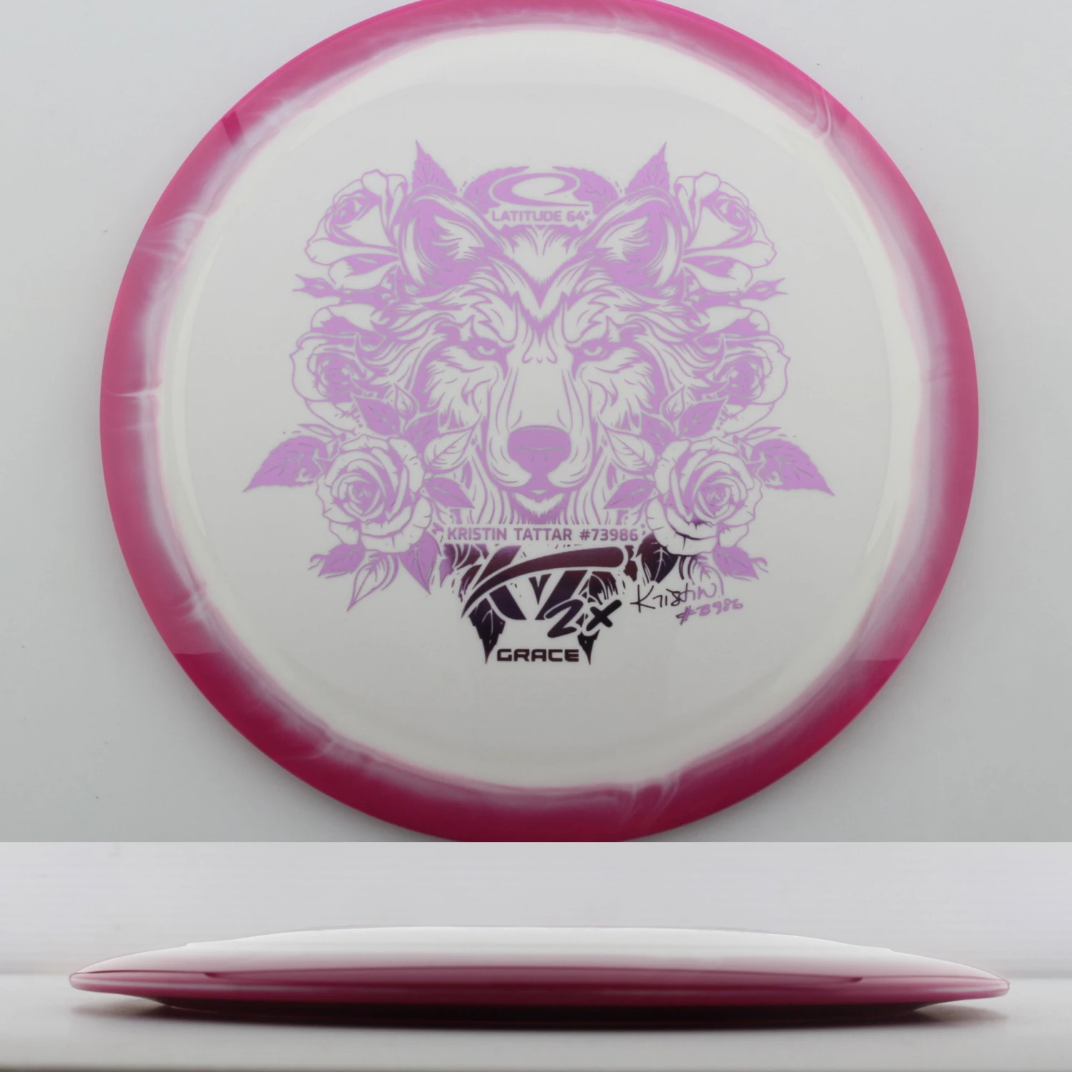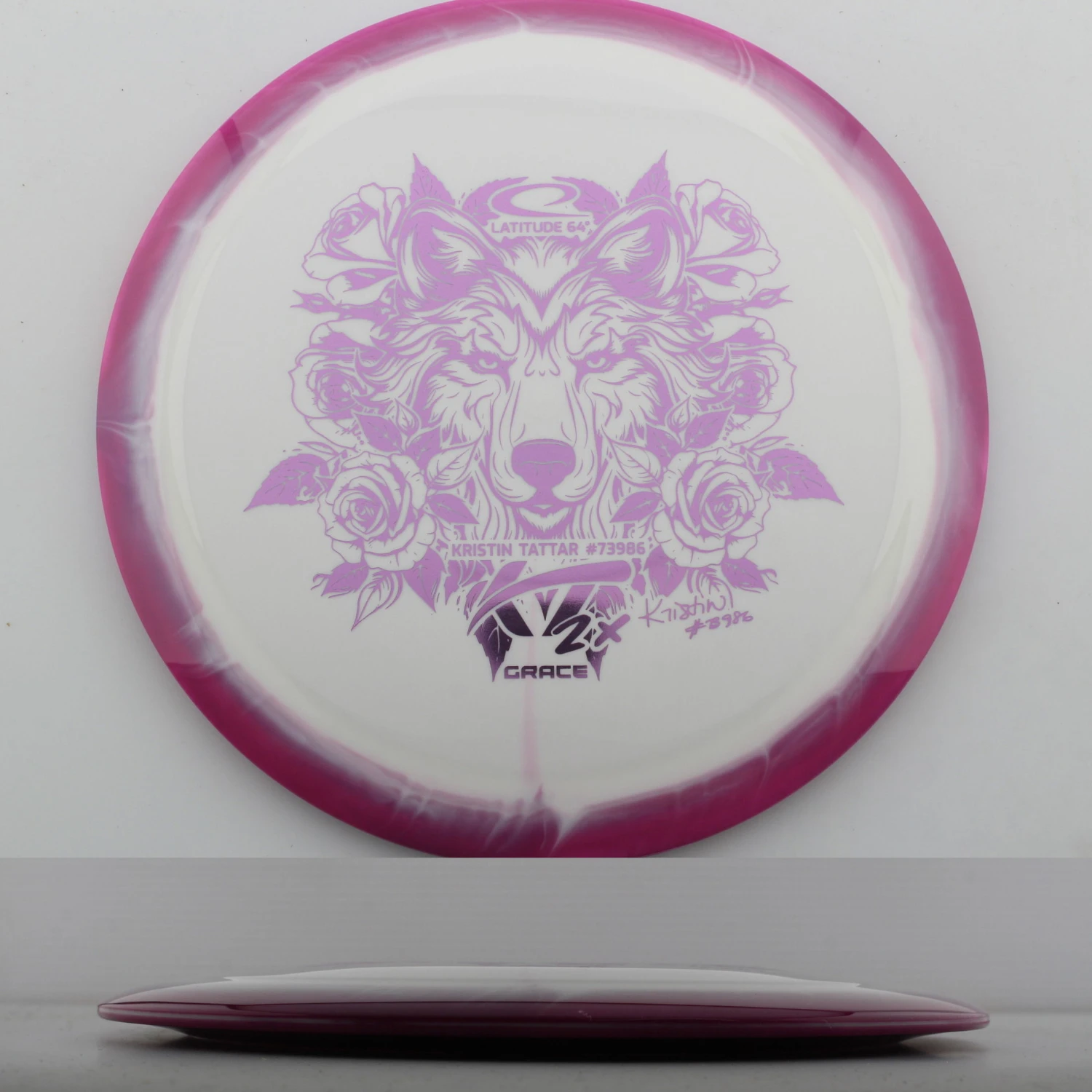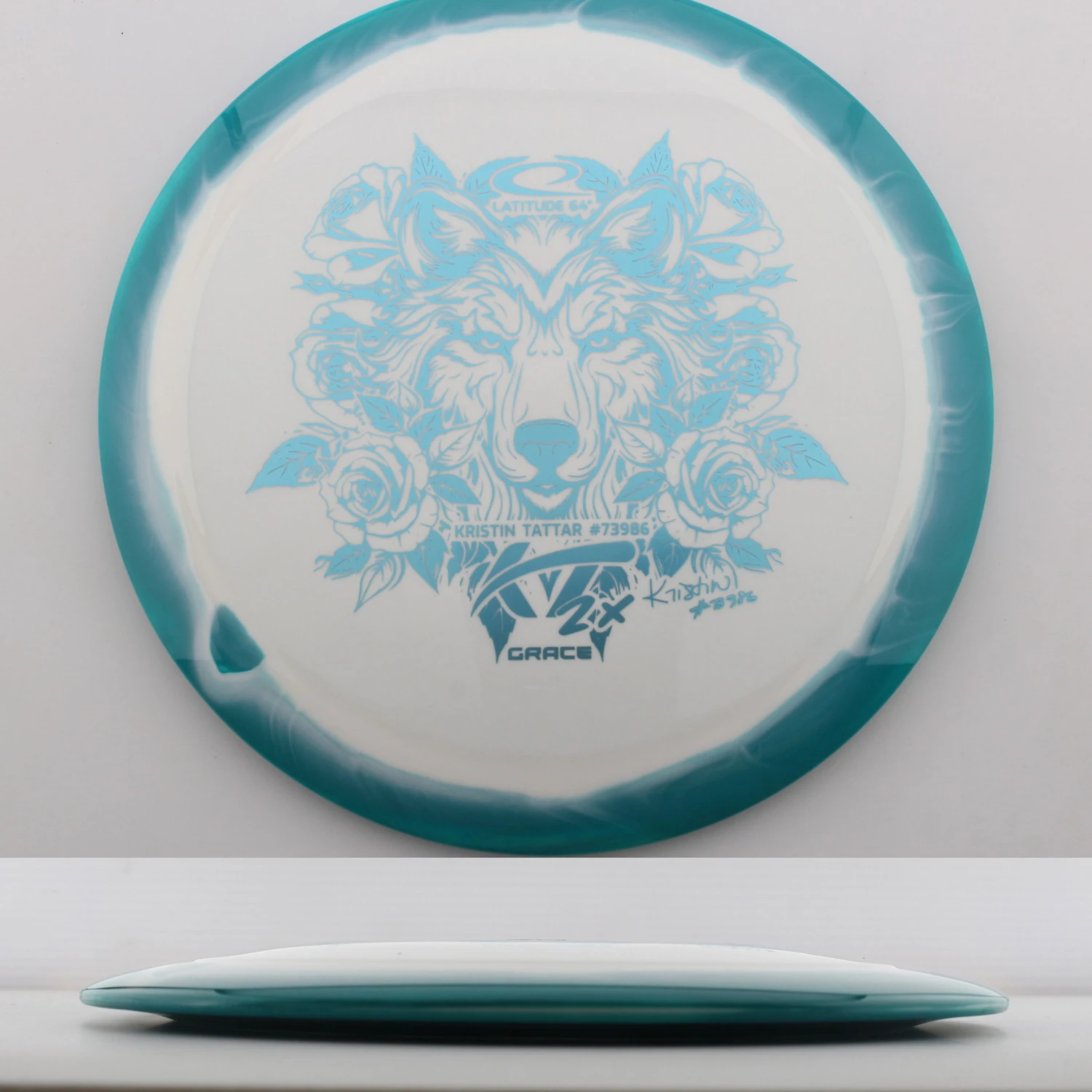 Kristin Tattar Grand Orbit Grace – The Latitude 64 Grace is an absolutely perfect distance driver, easy to throw but it gets crazy distance. In the Orbit plastic it is a bit more overstable making it perfect for full power shots. Kristin Tattar has been bombing this disc all over the course and it is a fan favorite already. This run helps support Kirstin during her 2024 tour season. Grab the 2x World Champion Kristin Tattar Royal Grand Orbit Grace today.