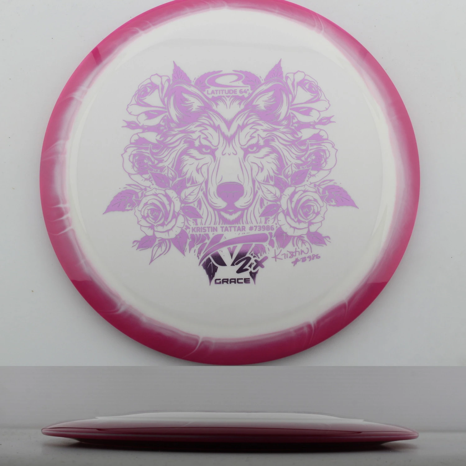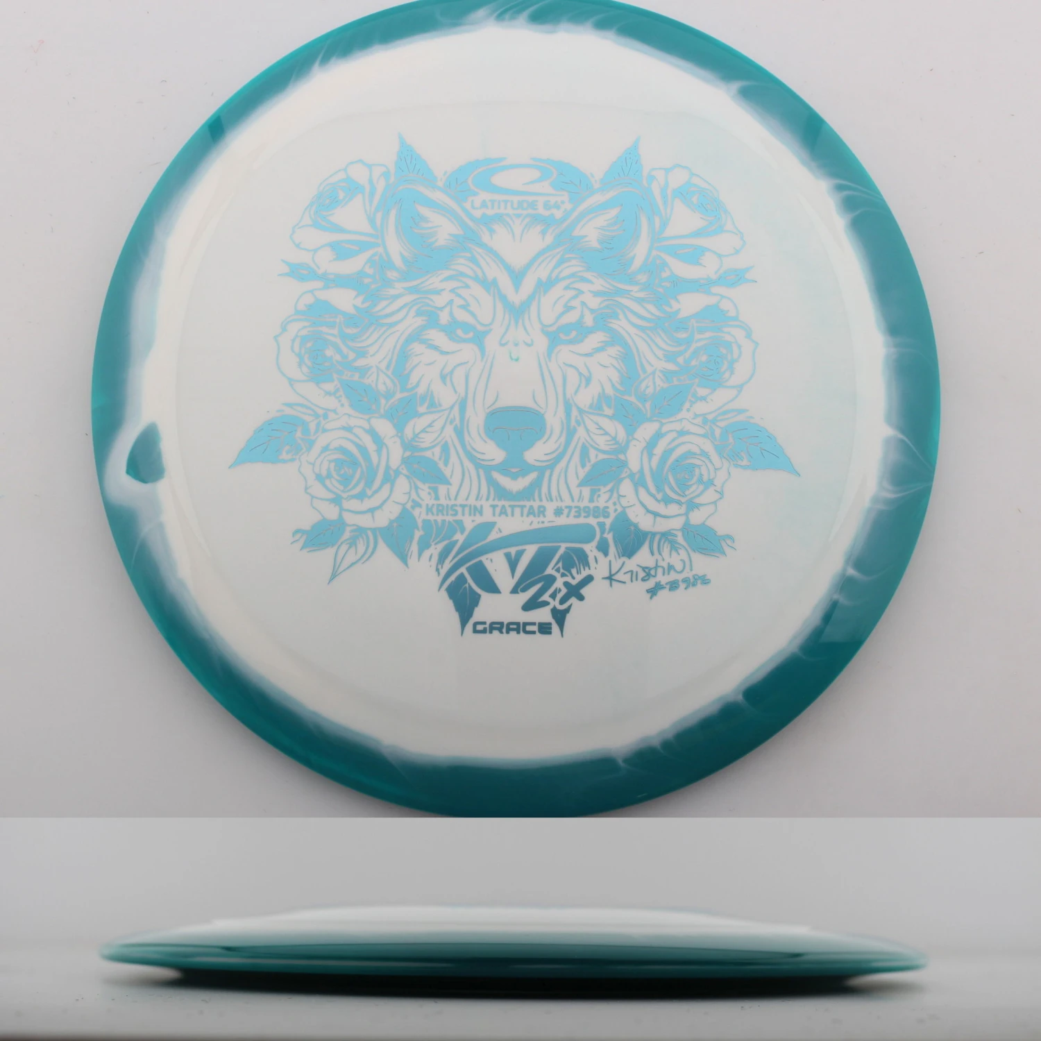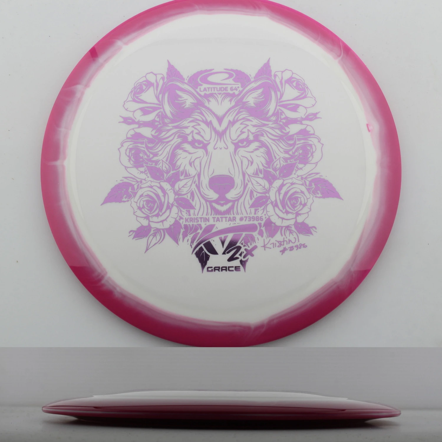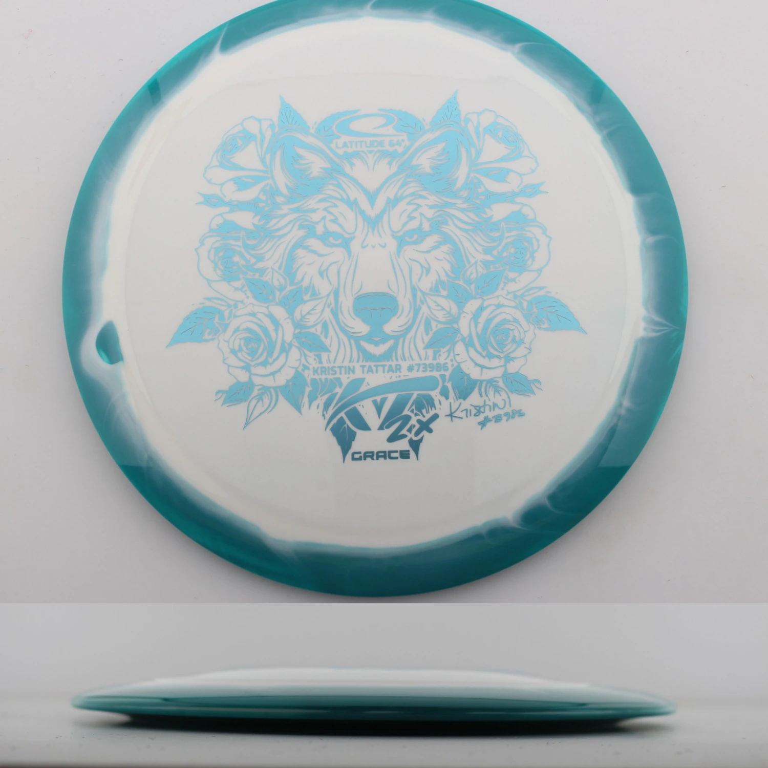 Kristin Tattar Grand Orbit Grace – The Latitude 64 Grace is an absolutely perfect distance driver, easy to throw but it gets crazy distance. In the Orbit plastic it is a bit more overstable making it perfect for full power shots. Kristin Tattar has been bombing this disc all over the course and it is a fan favorite already. This run helps support Kirstin during her 2024 tour season. Grab the 2x World Champion Kristin Tattar Royal Grand Orbit Grace today.
