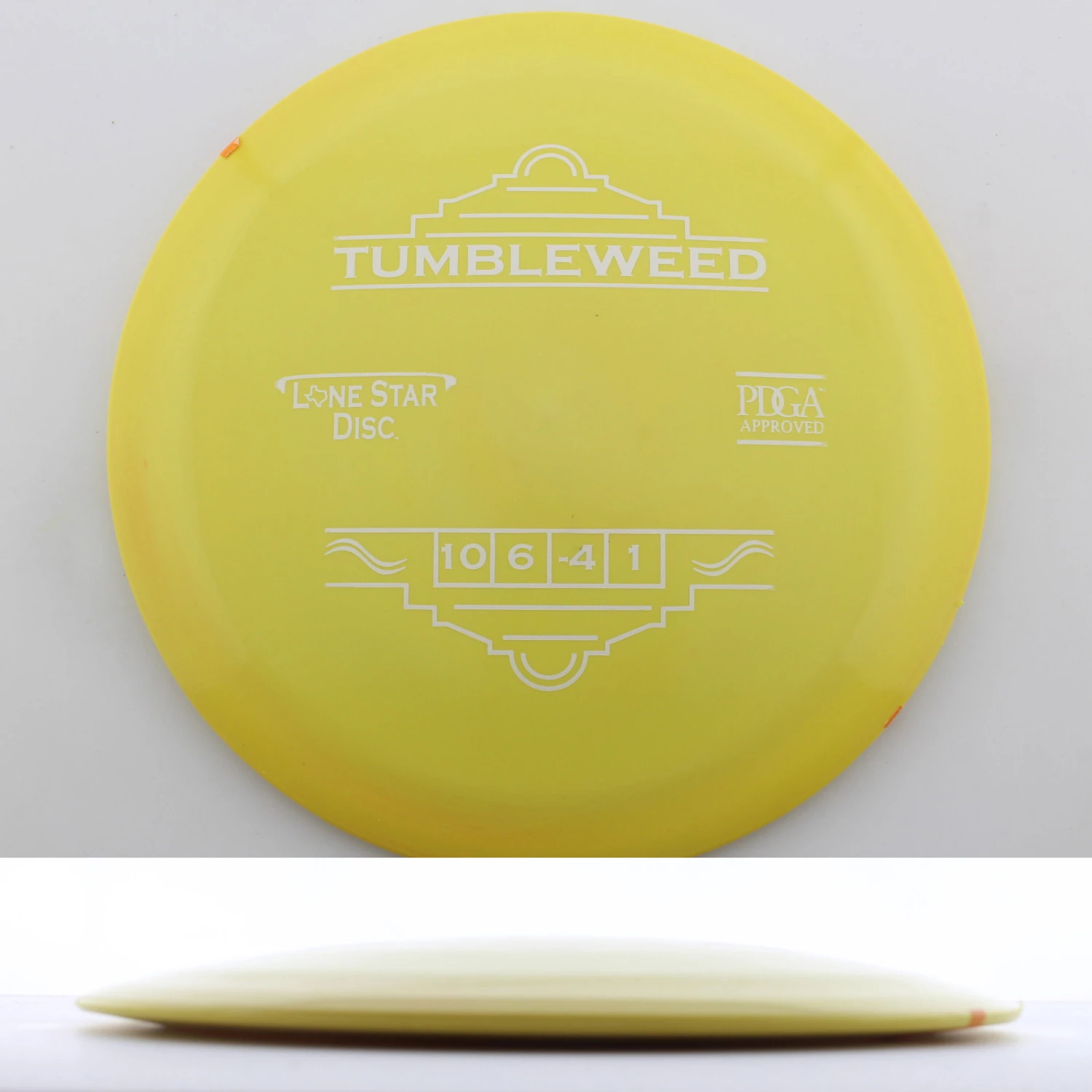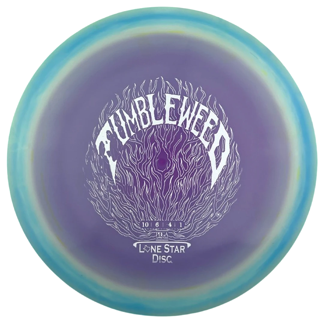 Lone Star says this about the mold: “The Tumbleweed is our most understable distance driver to date. Easy to use, easy to grip, and easy distance make this driver the ideal candidate for anyone looking for roller lines, big anhyzer flex shots, or for tailwind shots.”