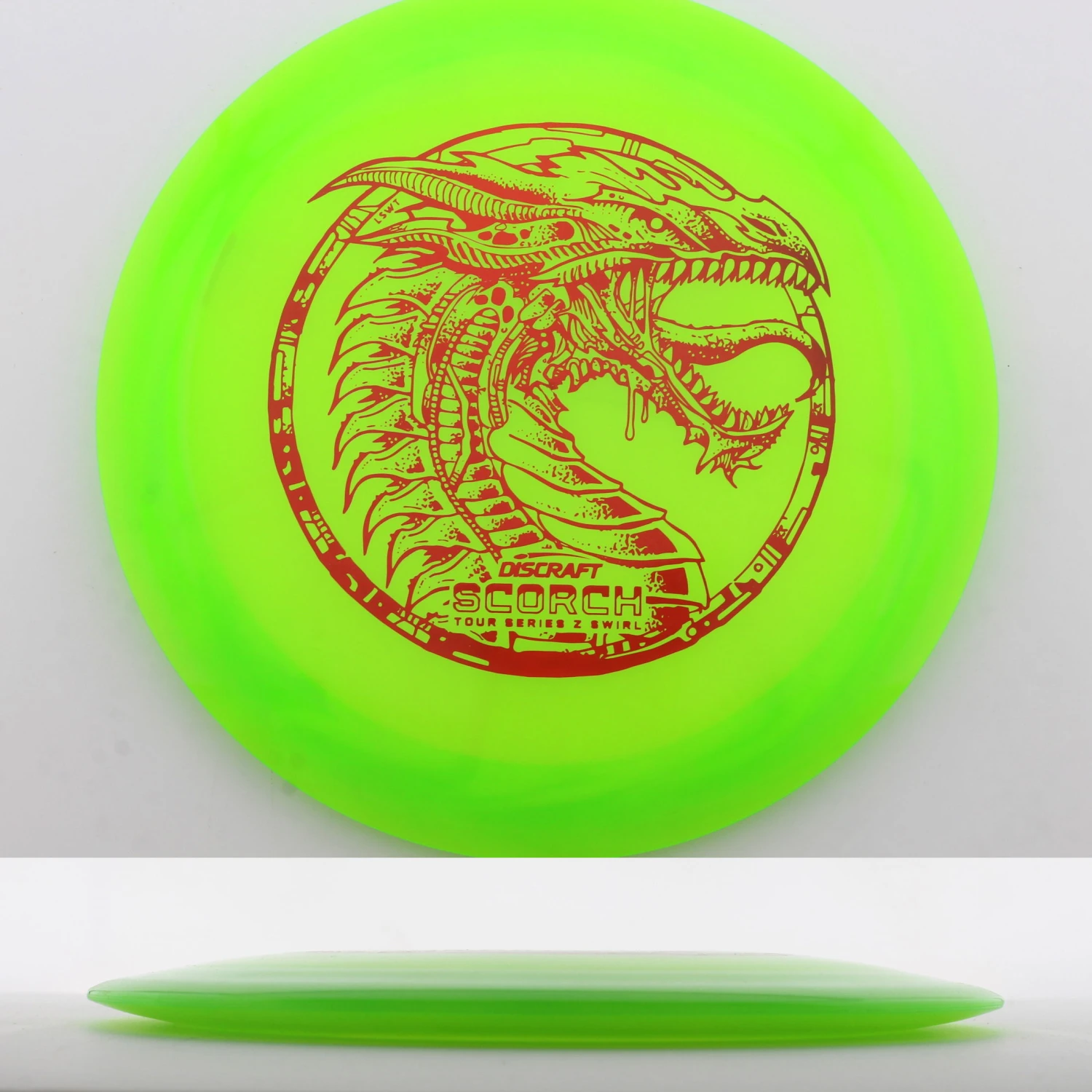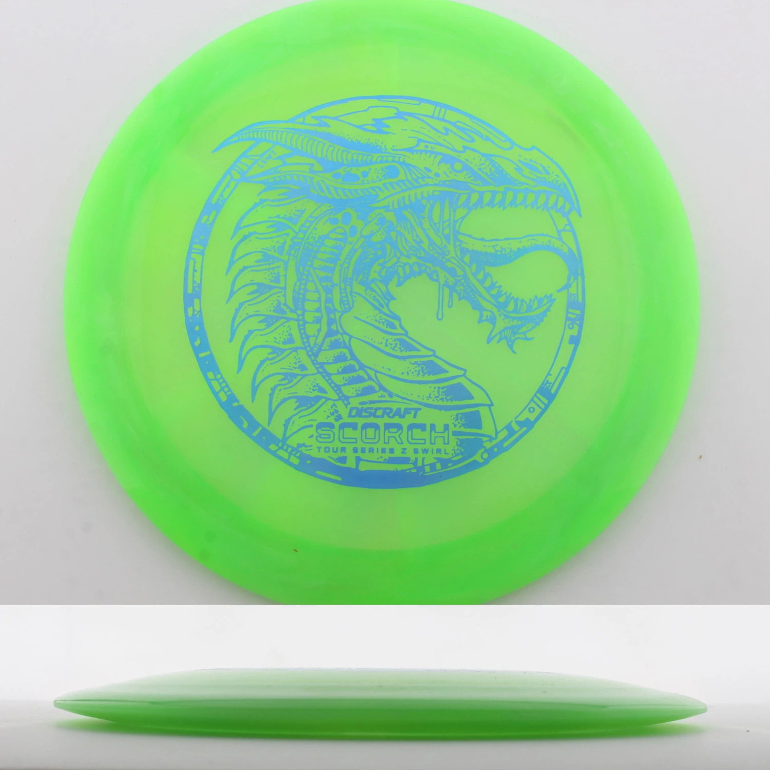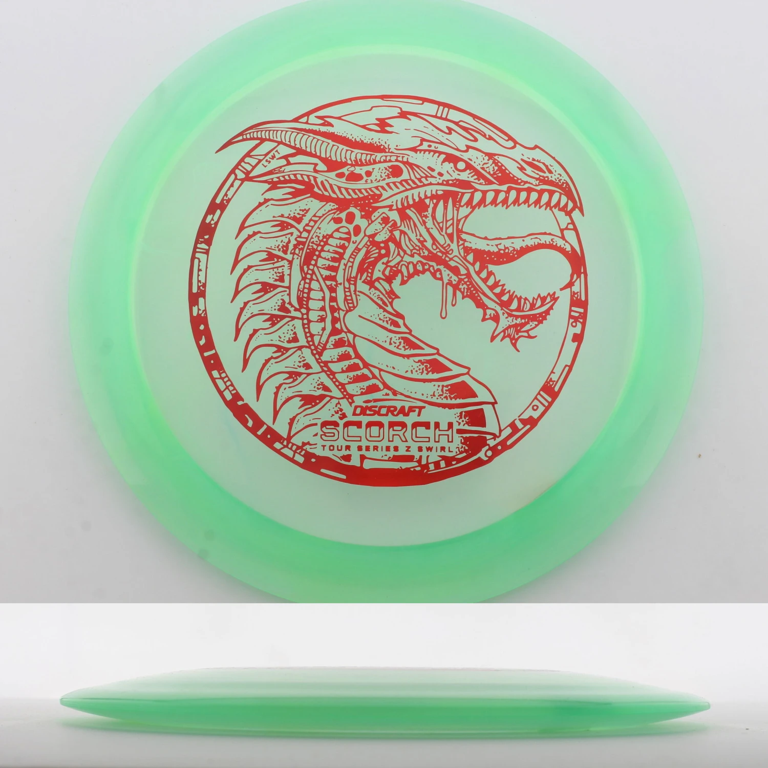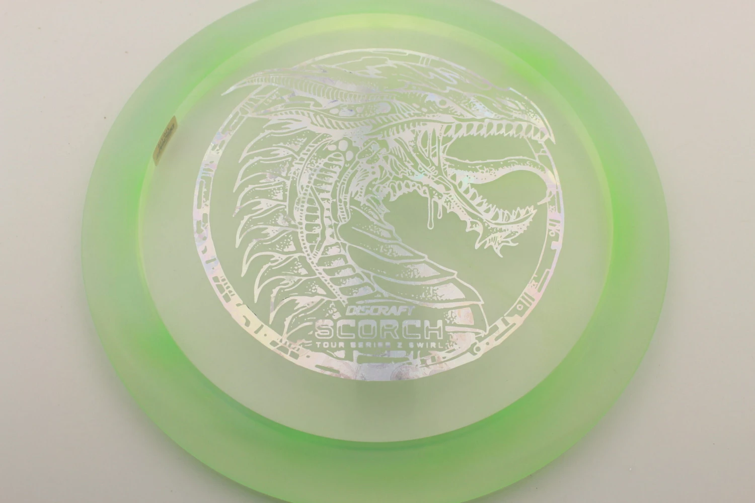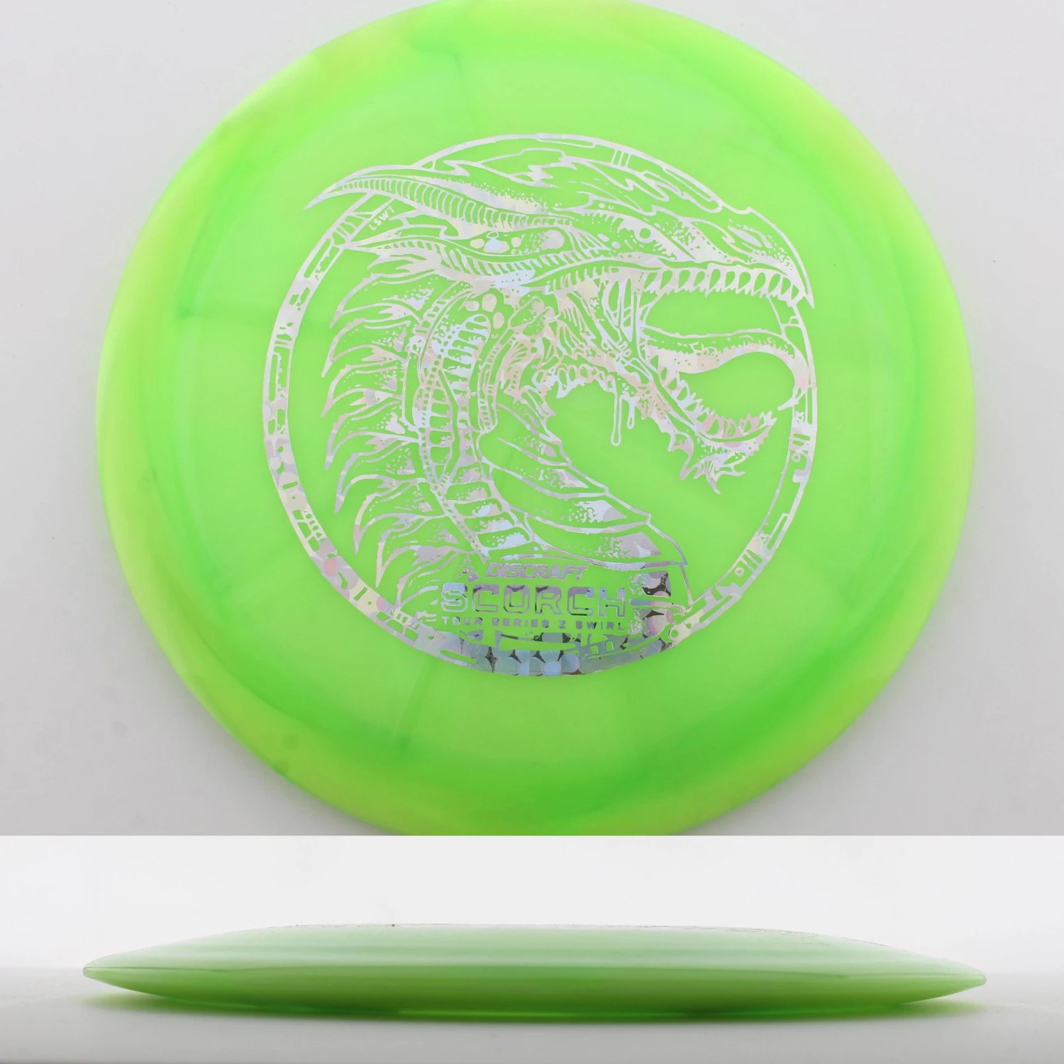LSWT Z Swirl Scorch – An understable distance driver that is perfect for players looking for some flip out of an eleven speed. This is a great disc for players of all skill levels. For big arms this will be a great roller disc and for newer players this is a disc that will be a great first driver. It gets going fast and gets some high speed turn before a decent fade at low speeds! Grab one of these Discraft LSWT Z Swirl Scorch today!!