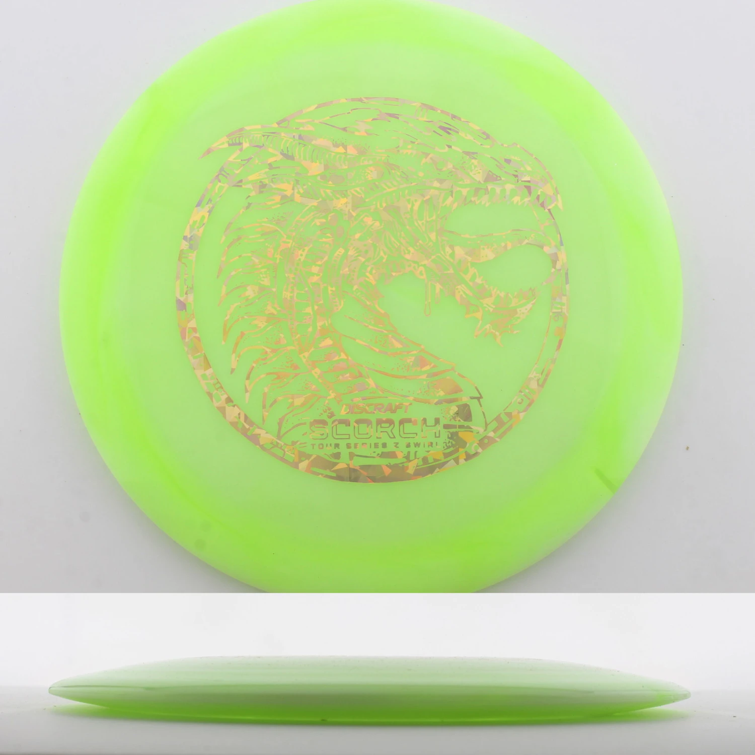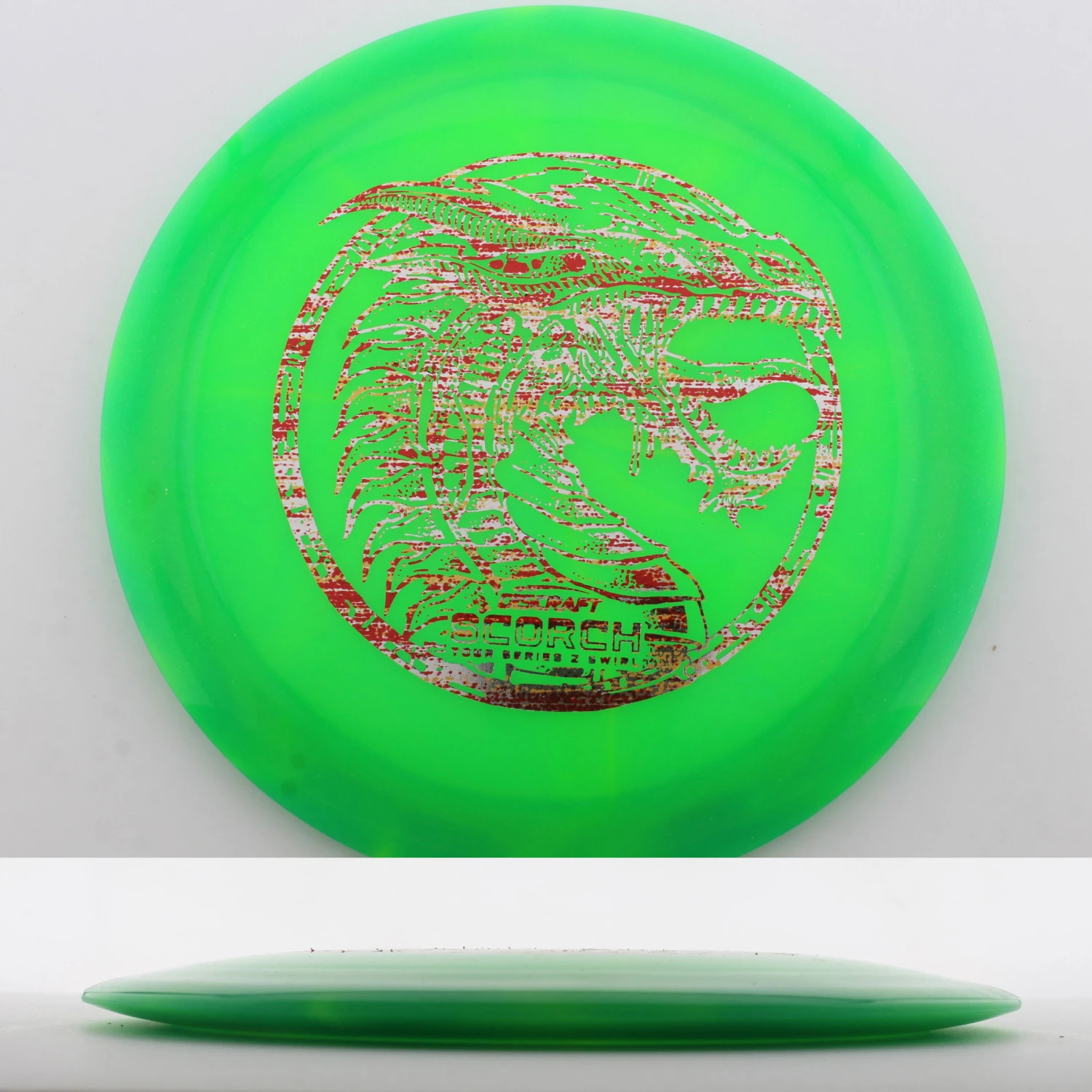 Discraft says this about the mold: “Introducing the all-new Discraft Scorch! Designed to provide maximum glide with a reliable fade regardless of your skill level. Beginner to Intermediate players will find the Scorch an easy to throw straight flier that will fight to come back, even in the wind, while Advanced and Professionals can expect high-speed turn and a late finish producing amazing distance.”