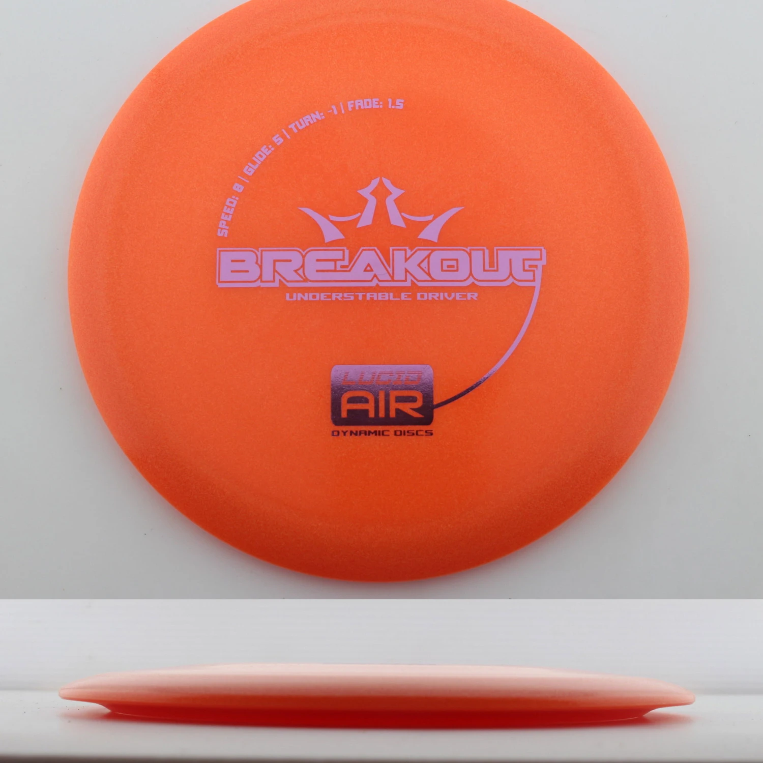 Dynamic Discs says this about the mold: “Do you like the Escape but find that it goes too far? The Breakout is the disc for you. It has the feel in your hand of a fairway driver but the easy release of a midrange. The Breakout is the slightly understable fairway driver from Dynamic Discs that you need when you have to have a bit more distance but you can’t sacrifice accuracy. It will hold an anhyzer angle without turning over all the way to the ground and will fly dead straight if you tell it to.”