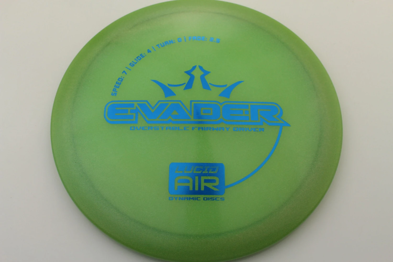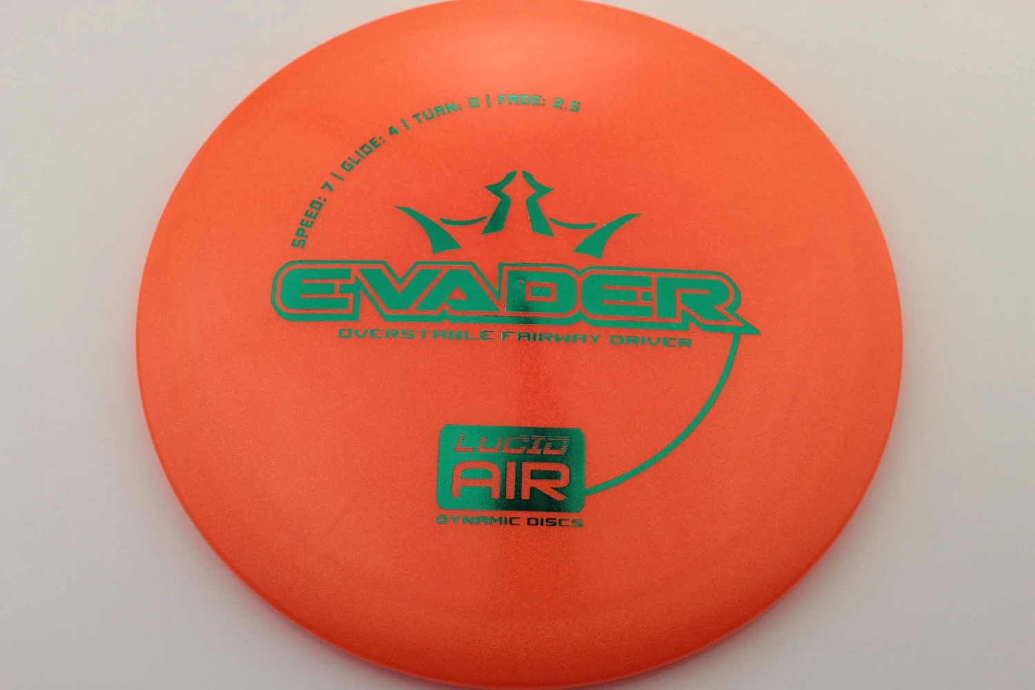 Dynamic Discs says this about the mold: “The Evader is your new go-to fairway driver. It has controllable speed with excellent glide and enough stability to hold the line, even into the wind. The Evader’s 7-speed means that you can count on it to fill the distance gap between your 5-speed midranges and 9-speed fairway drivers, like the Escape or the Getaway. The Evader is extremely versatile, and its consistent fade means that you can work it on anhyzer and know that it will get back to flat. If you’re looking for a workhorse fairway driver, the Evader belongs in your bag.”