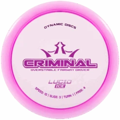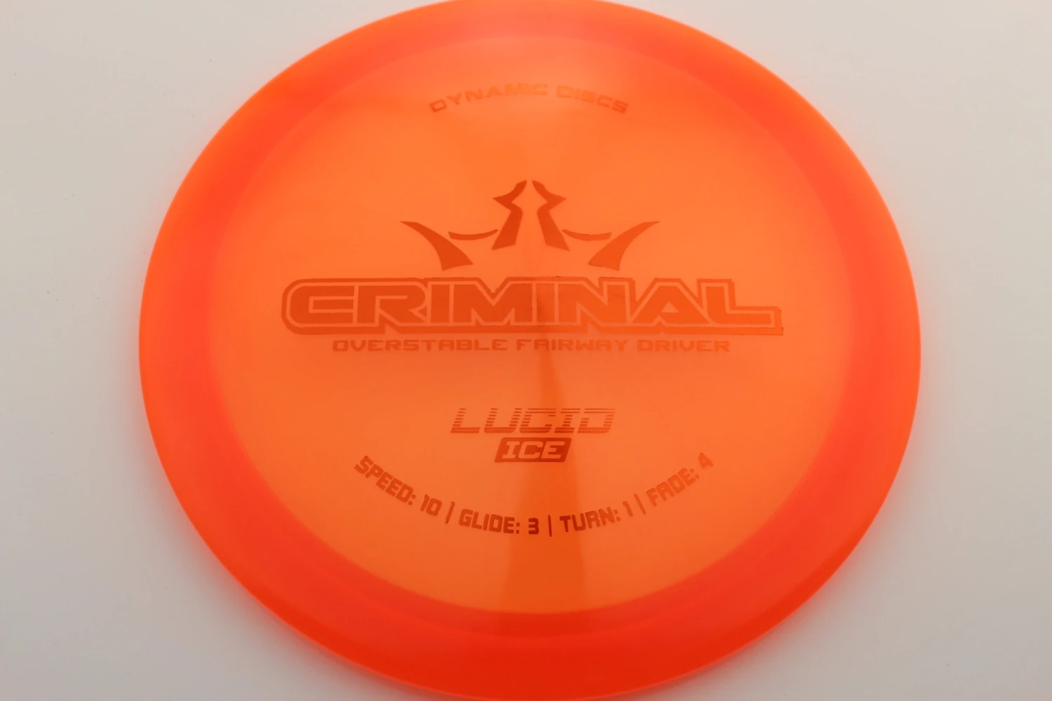 Lucid Ice Criminal β The Criminal is a great feeling 10 speed disc that is overstable at all speeds. It is a disc that can be thrown with confidence, knowing it will hyzer in all conditions. The Lucid Ice plastic has a great feel in the hand and is perfect for forehands and backhands. Make sure you try out a Lucid Ice Criminal today!