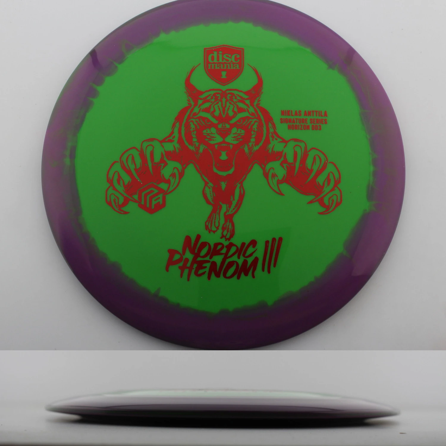 Niklas Anttila Nordic Phenom 3 – The DD3 is a great flying disc that has been a fan favorite since the inception. The Horizon plastic feels amazing and has that sweet swirl look to it. This is a run that will be trusted by the Nordic Phenom himself, Niklas Anttila. Make sure you grab a Discmania Niklas Anttila Nordic Phenom 3 today!