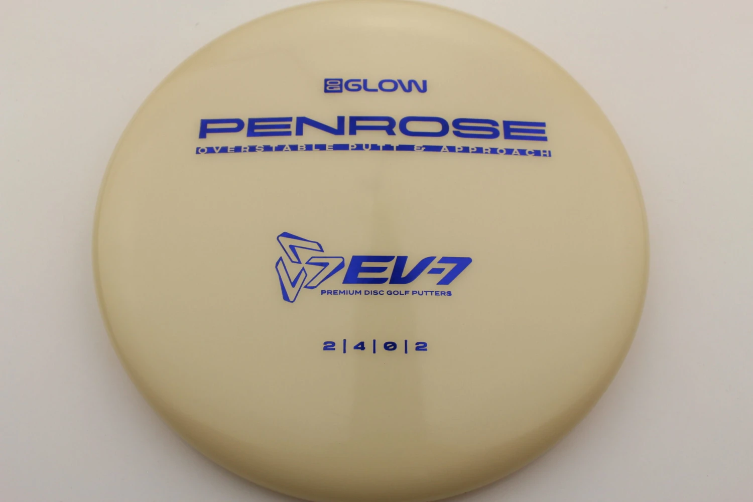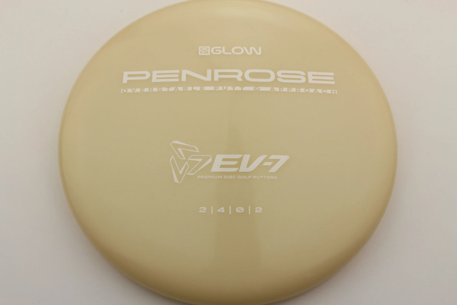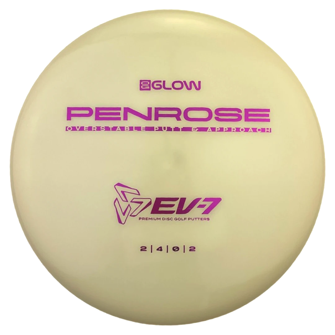 EV-7 has this to say about their debut disc: “EV-7’s flagship putter, the Penrose, is now available in a limited, prototype glow plastic, OG Glow. OG Glow is similar to our OG Medium plastic in flex, but with a slightly smoother texture. The Penrose has reliable high-speed over stability and resistance to turn, but is uniquely straight with consistent fade at lower speeds on the putting green. With a slightly deeper profile, small bead, and smooth feel, the Penrose fits the hand comfortably, inspiring confidence for both putts and upshots.”