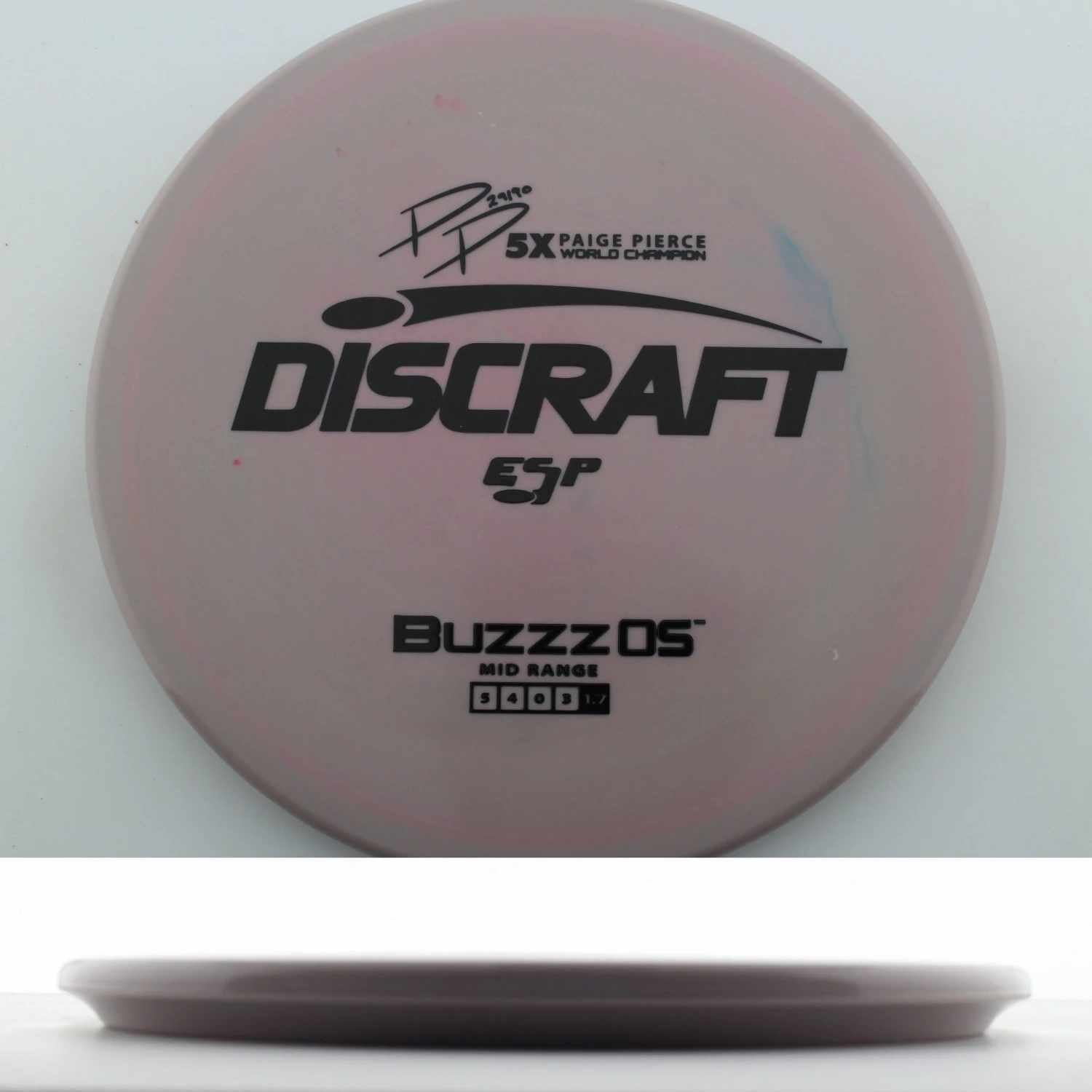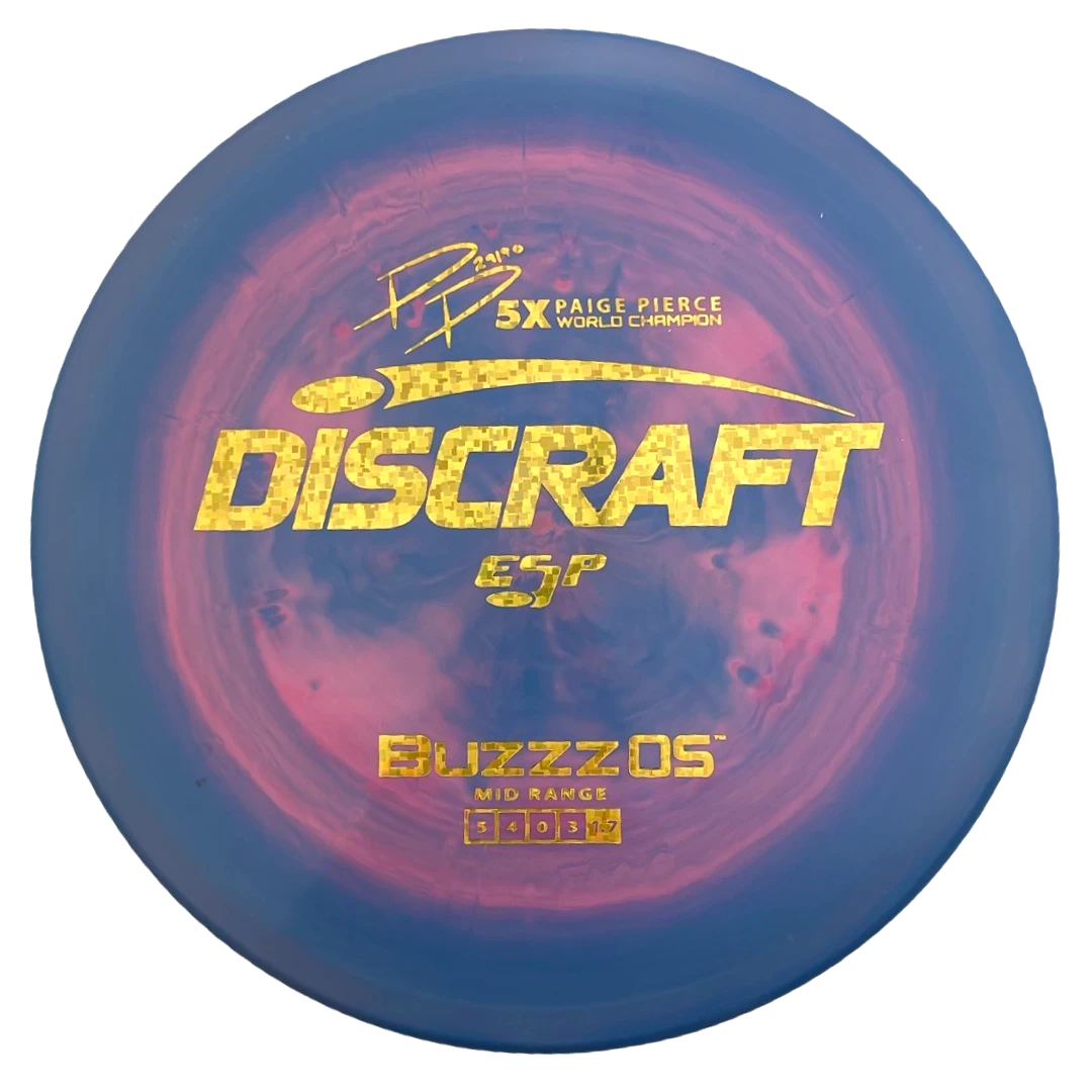 Paige Pierce 5x ESP Buzzz OS – The Buzzz OS is a great feeling disc from Discraft Discs, that is a great overstable compliment to the Buzzz. It is beadless and has a feel that is somewhat similar to the other Buzzz molds but has much more stability. It is perfect for forehand and headwind approaches that need to hyzer but do not need to go as far as a Raptor or Machete. At the 2023 OTB Open Paige Pierce was throwing the Buzzz OS all over the course, attacking the green off the tee and on second shots on Par4’s. She used it whenever she needed an approach shot to hyzer. The Buzzz OS is a disc that will give you pinpoint accuracy and distance control. If you want a beefy Buzzz then try a Paige Pierce 5x ESP Buzzz OS today!