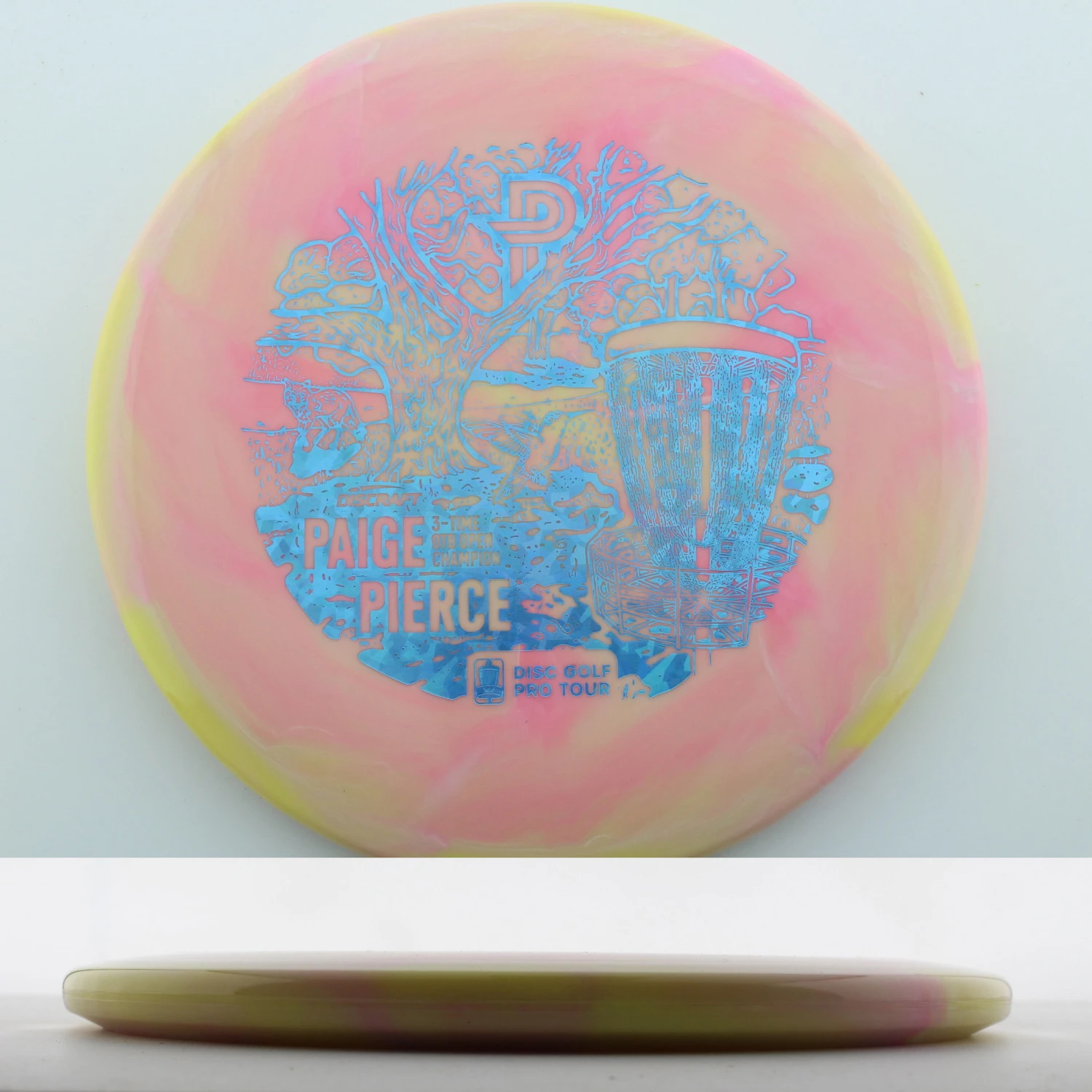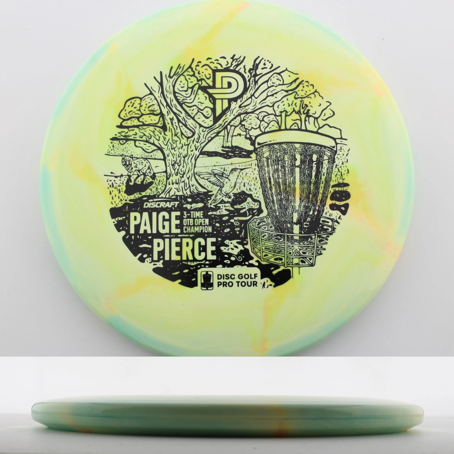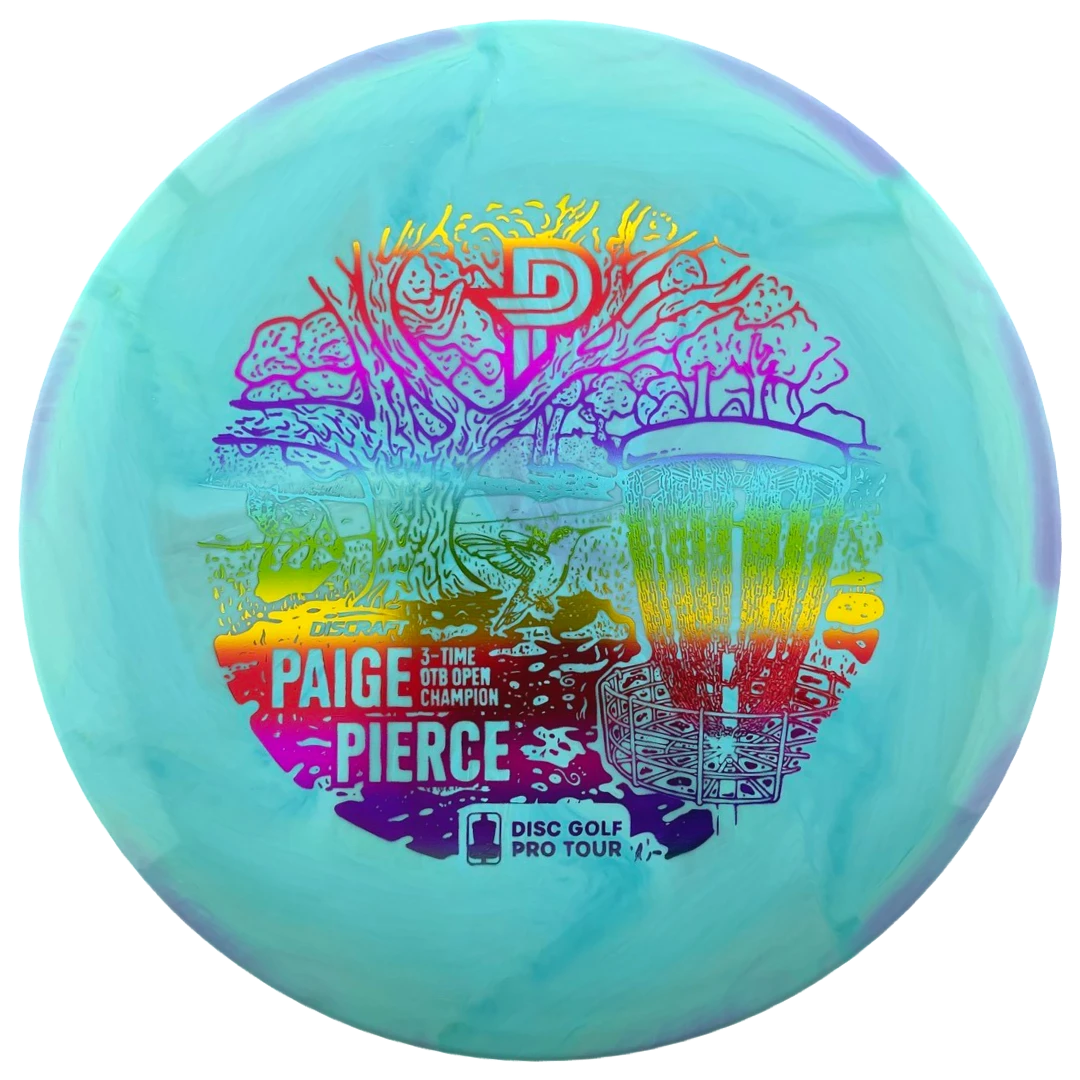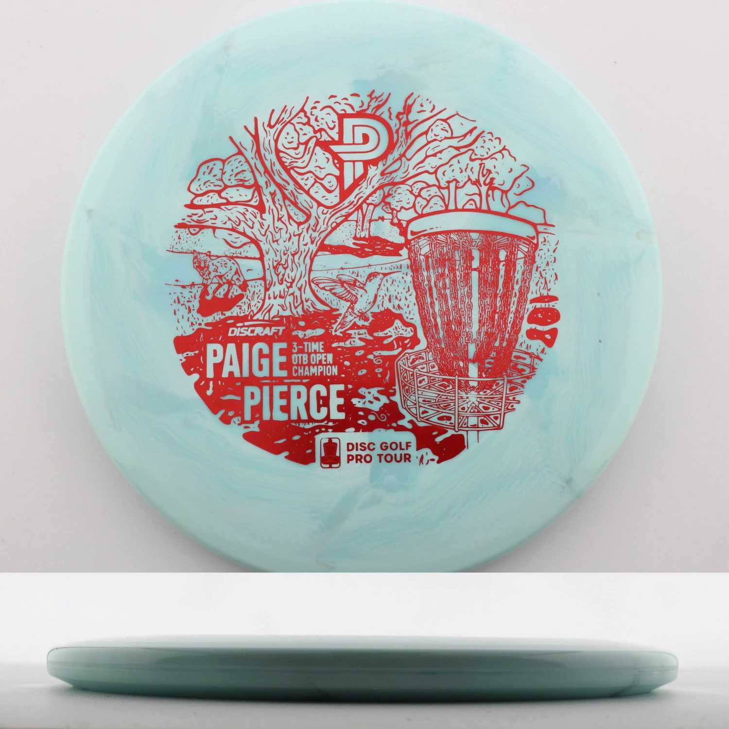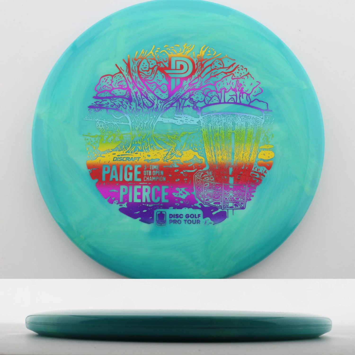 Paige Pierce Swirly ESP Sol – Paige Pierce The Sol is a flippy midrange/putter from Discraft Discs that has a really unique feel. Released as an Ace Race disc in 2018, these discs are great beginners discs and are starting to be released in new plastics all the time. The under stability makes them great for really straight and turnover approaches. The Sol is a super glidey, slow midrange that can be useful for all players. Great for those touchy approach shots that need to stay straight and get a ton of glide before sitting down close to the basket. The mold has a shallow rim that is perfect for fan grips and players with smaller hands. It is a smaller diameter midrange than a Buzzz or Comet so it has a different feel and flight than either of those molds. Grab a 3x OTB Open Champion Paige Pierce Swirly ESP Sol today!