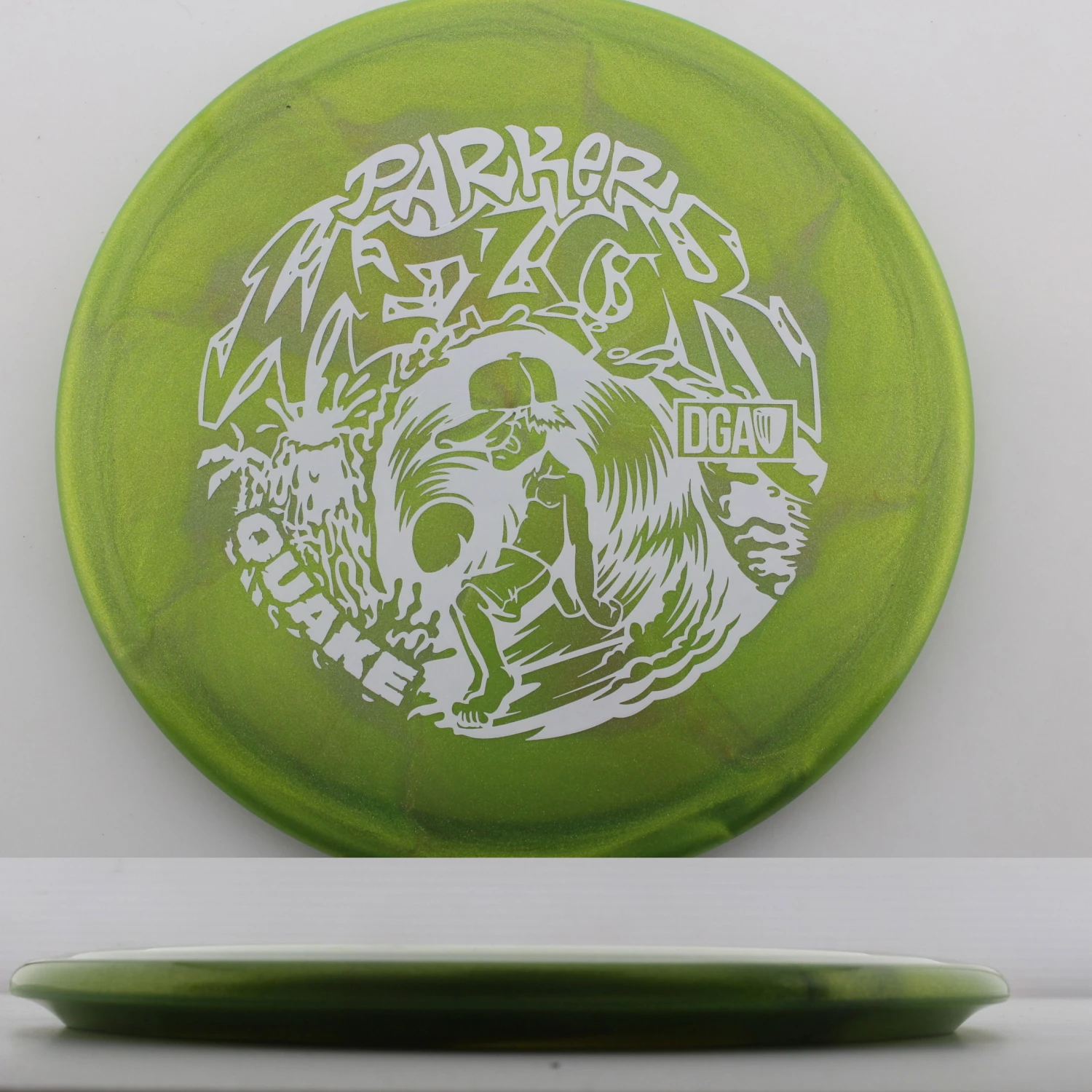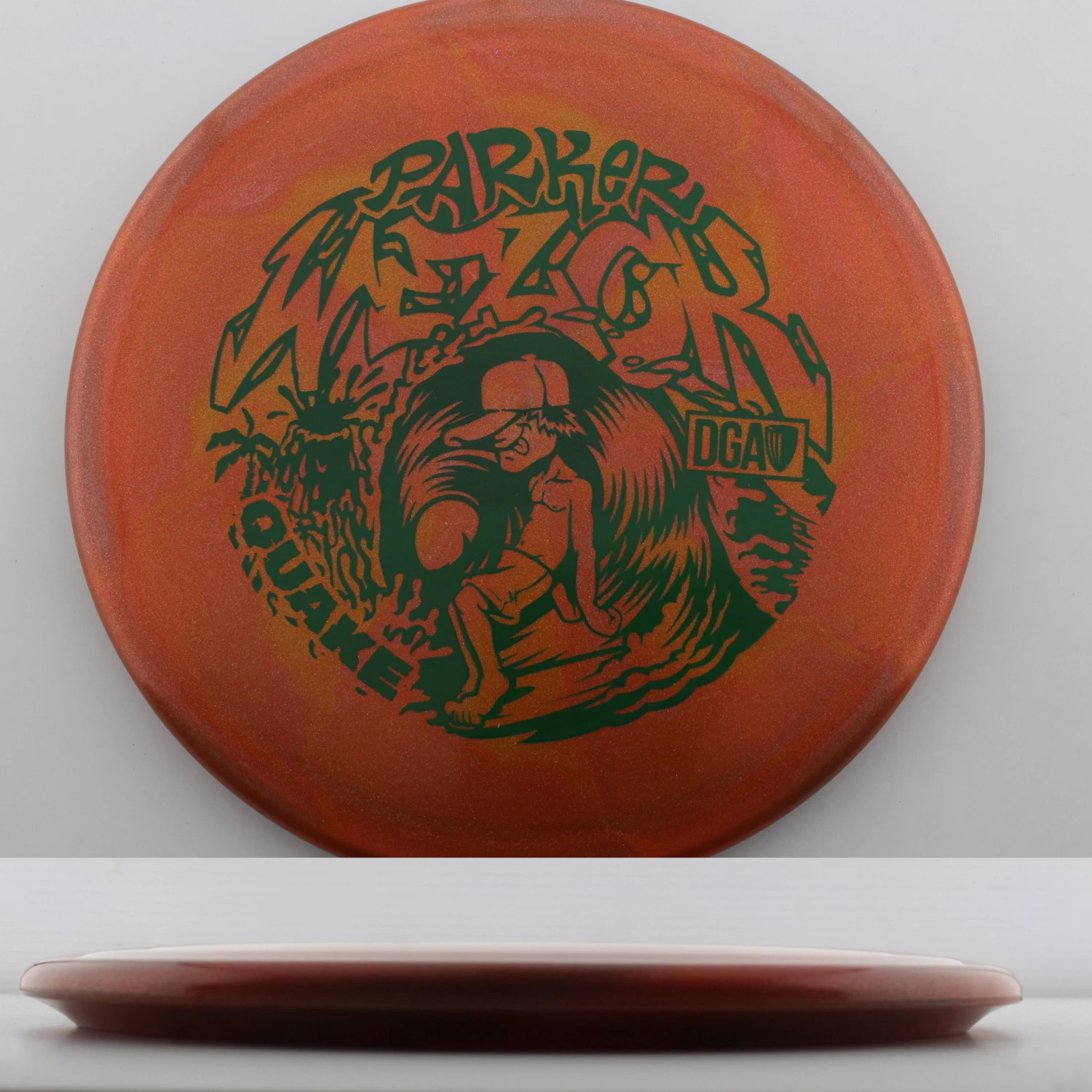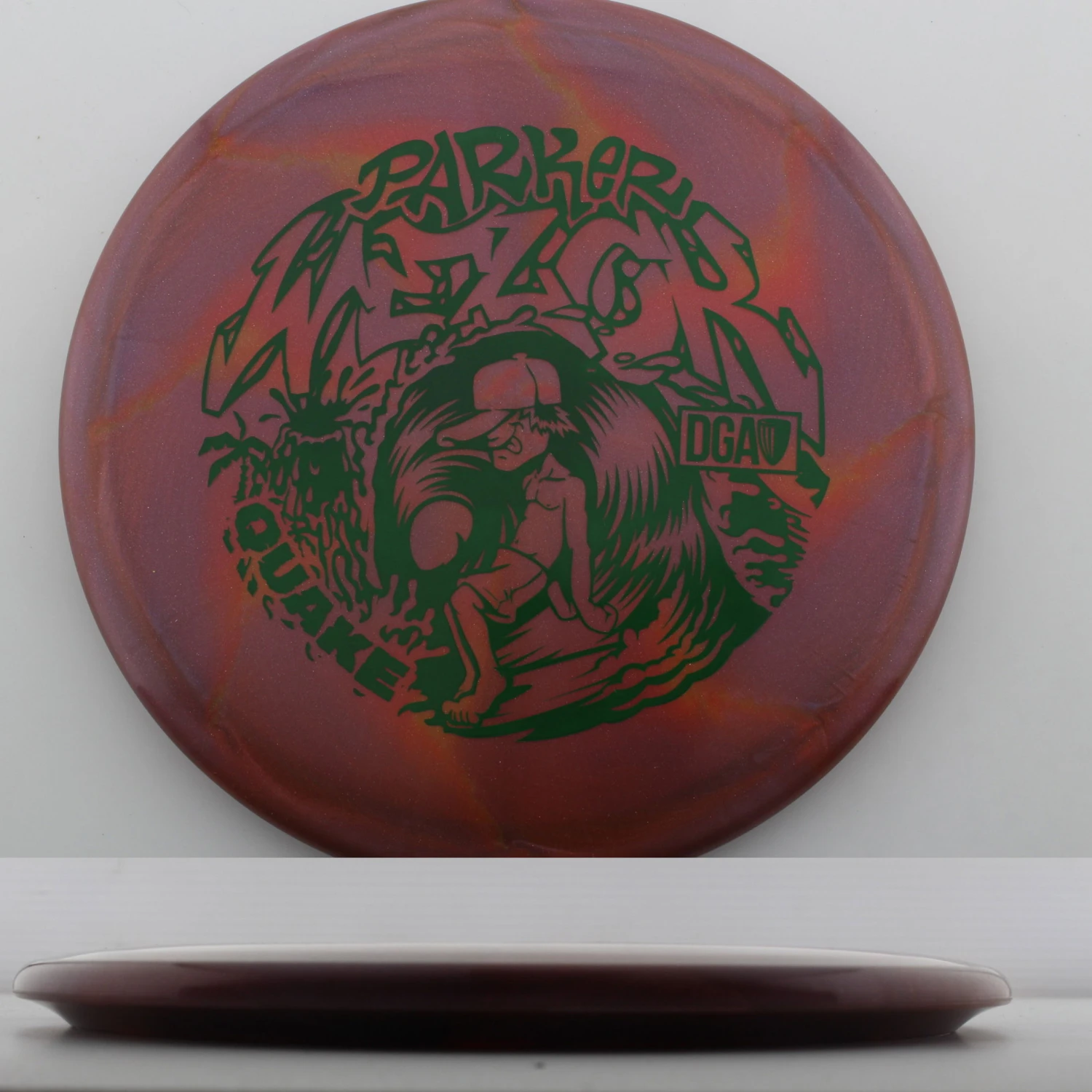 Parker Welck Tour Series Swirl Quake – The Quake is an overstable monster that is perfect for those approaches that need to hyper. It is effectively a longer Breaker that has a touch more stability due to its speed. This run for Parker features a great feeling and looking Tour Series Swirl plastic. This years run is very flat, maybe even slightly puddle topped and will be great for forehand approaches. Help support Parker on tour with the DGA Parker Welck Tour Series Swirl Quake.
