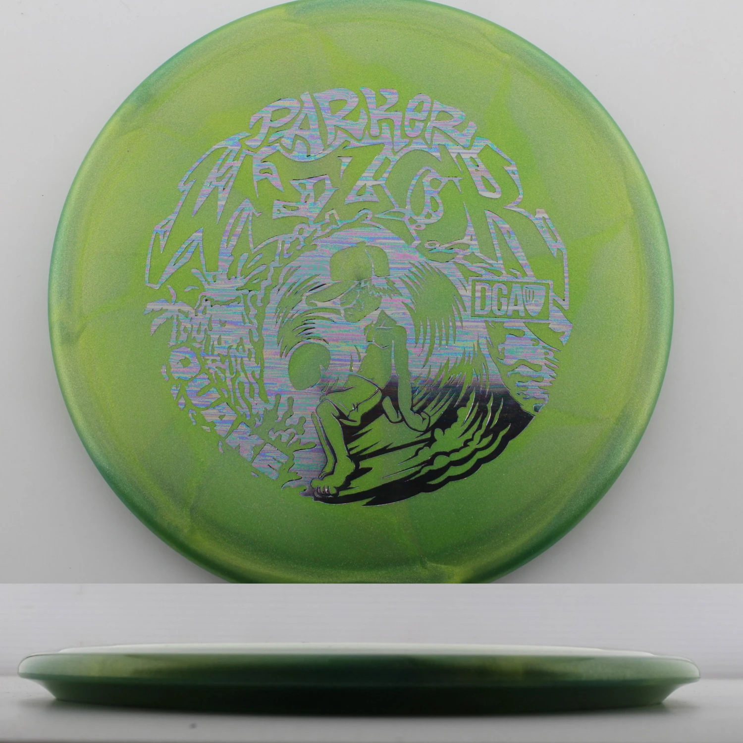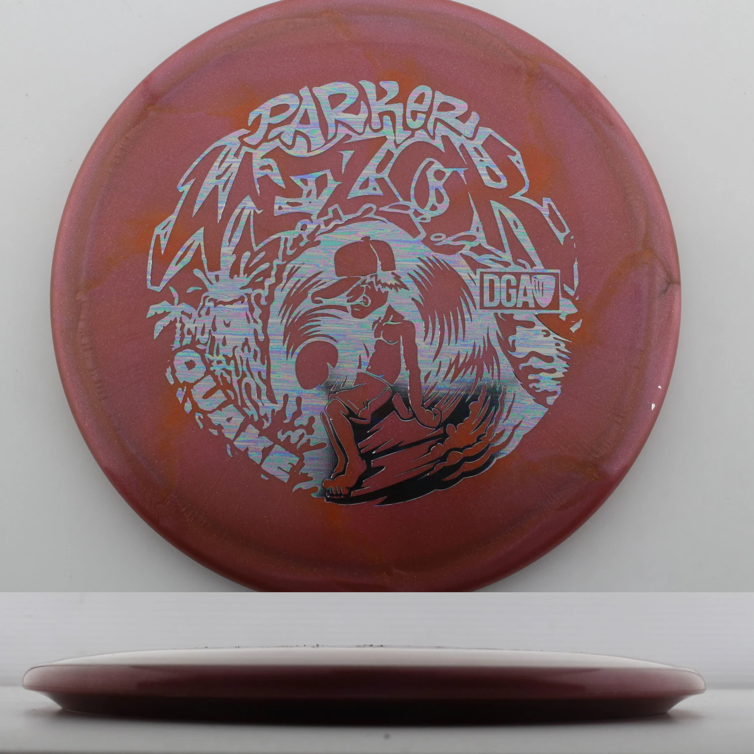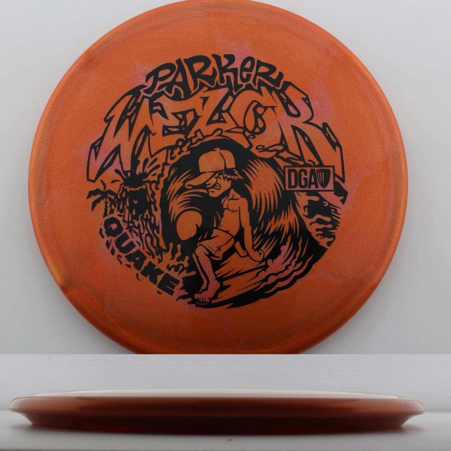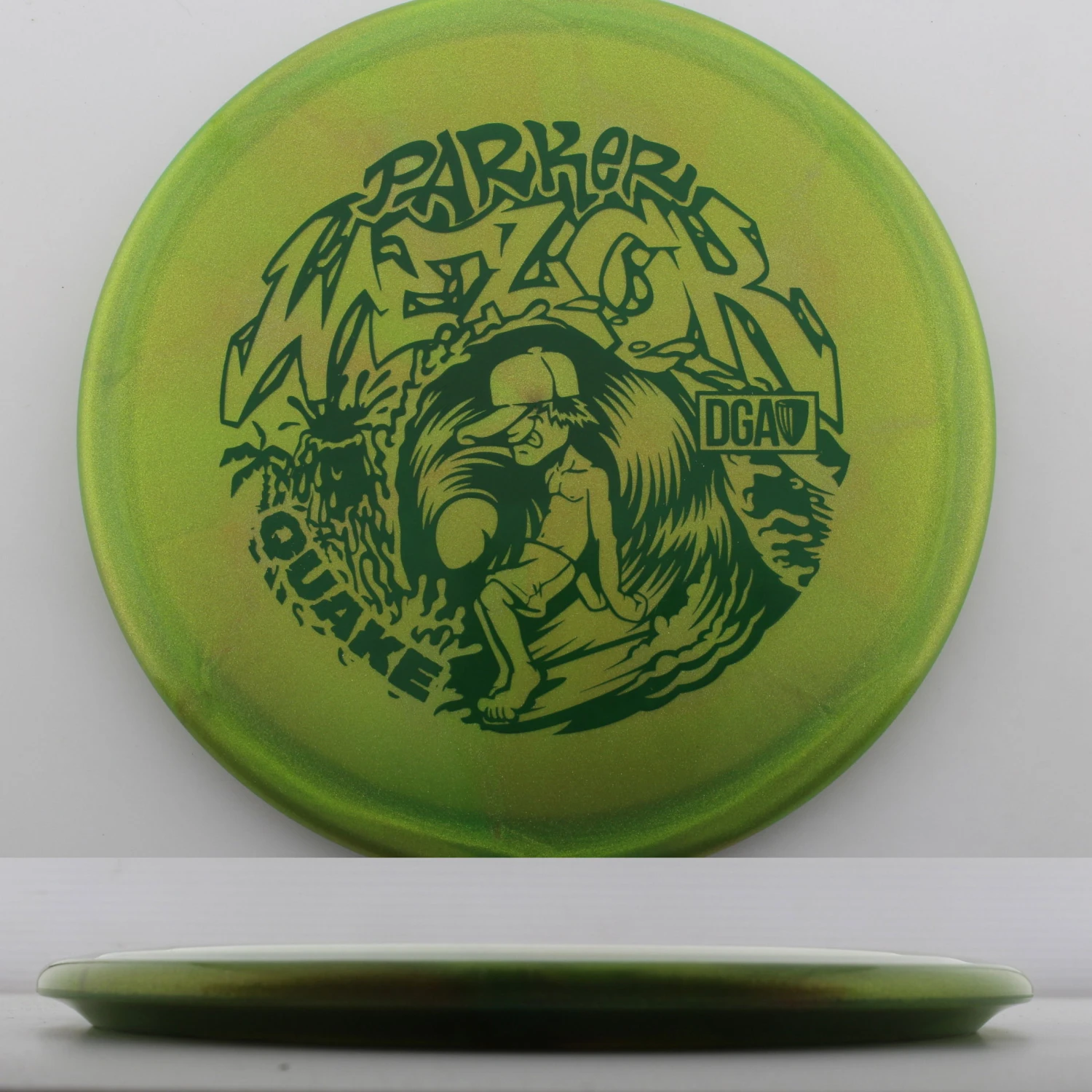 Parker Welck Tour Series Swirl Quake – The Quake is an overstable monster that is perfect for those approaches that need to hyper. It is effectively a longer Breaker that has a touch more stability due to its speed. This run for Parker features a great feeling and looking Tour Series Swirl plastic. This years run is very flat, maybe even slightly puddle topped and will be great for forehand approaches. Help support Parker on tour with the DGA Parker Welck Tour Series Swirl Quake.